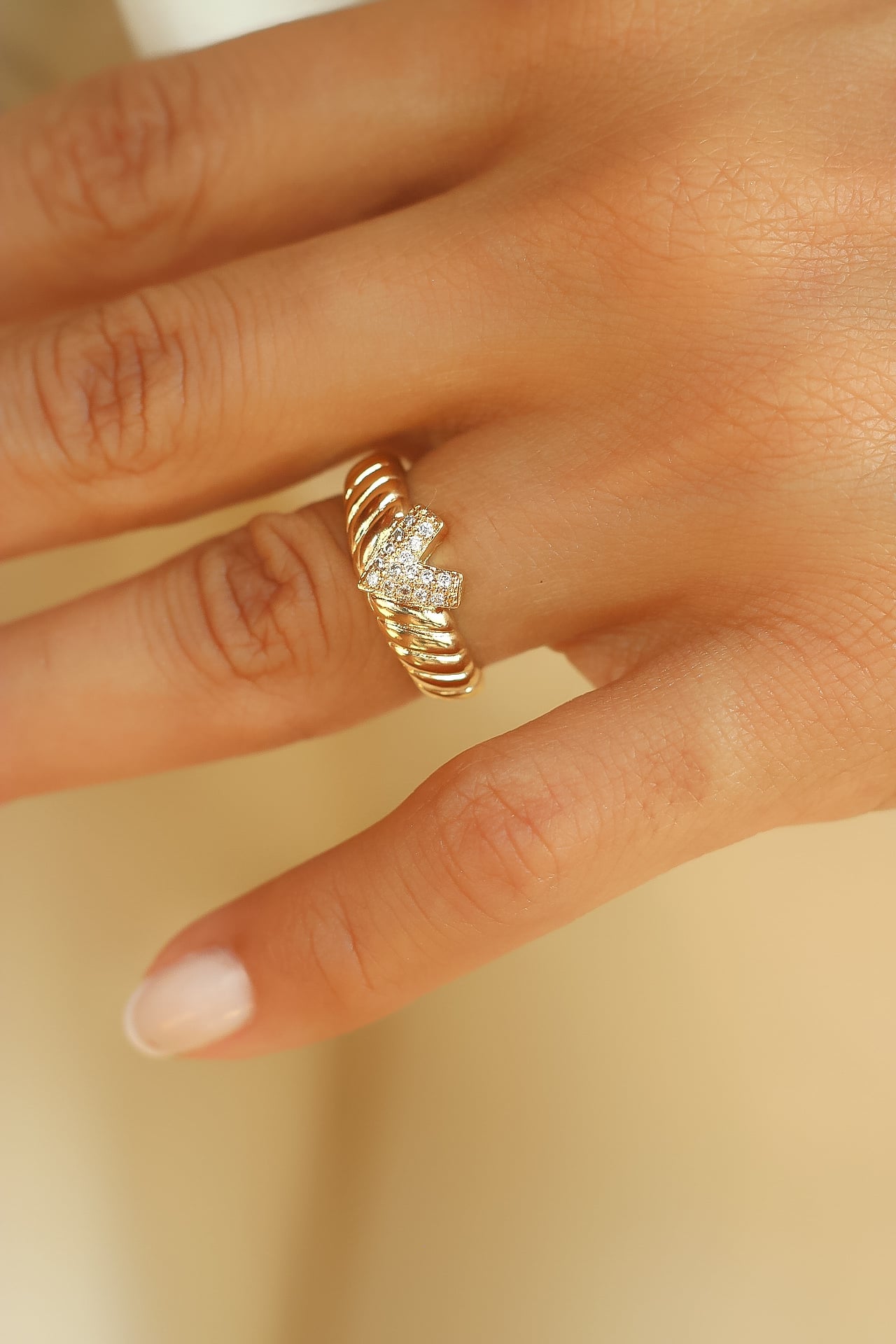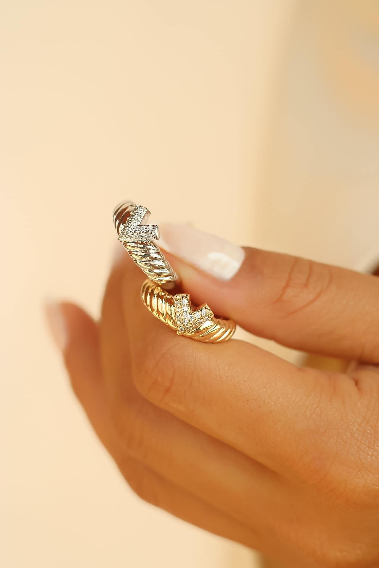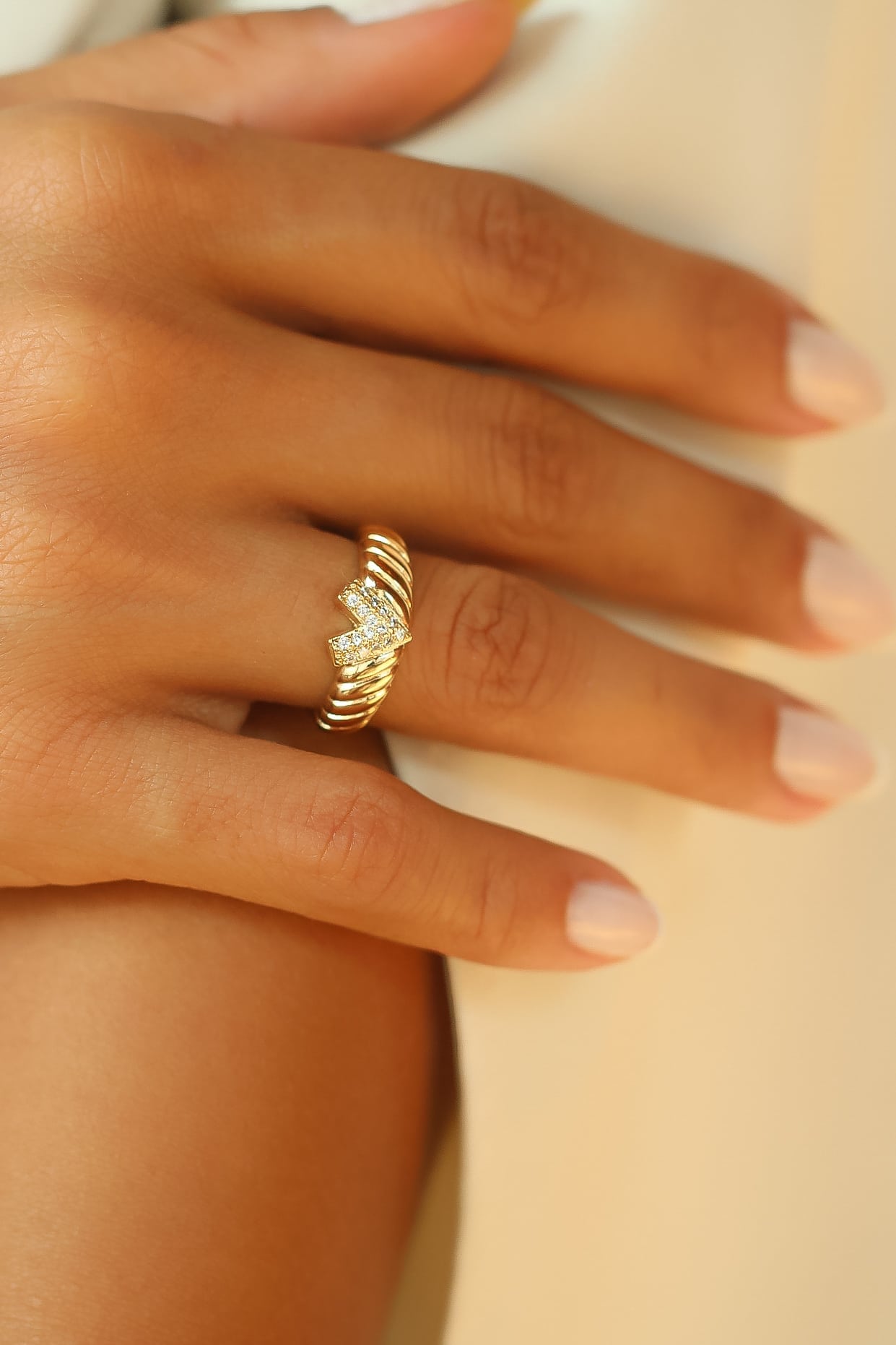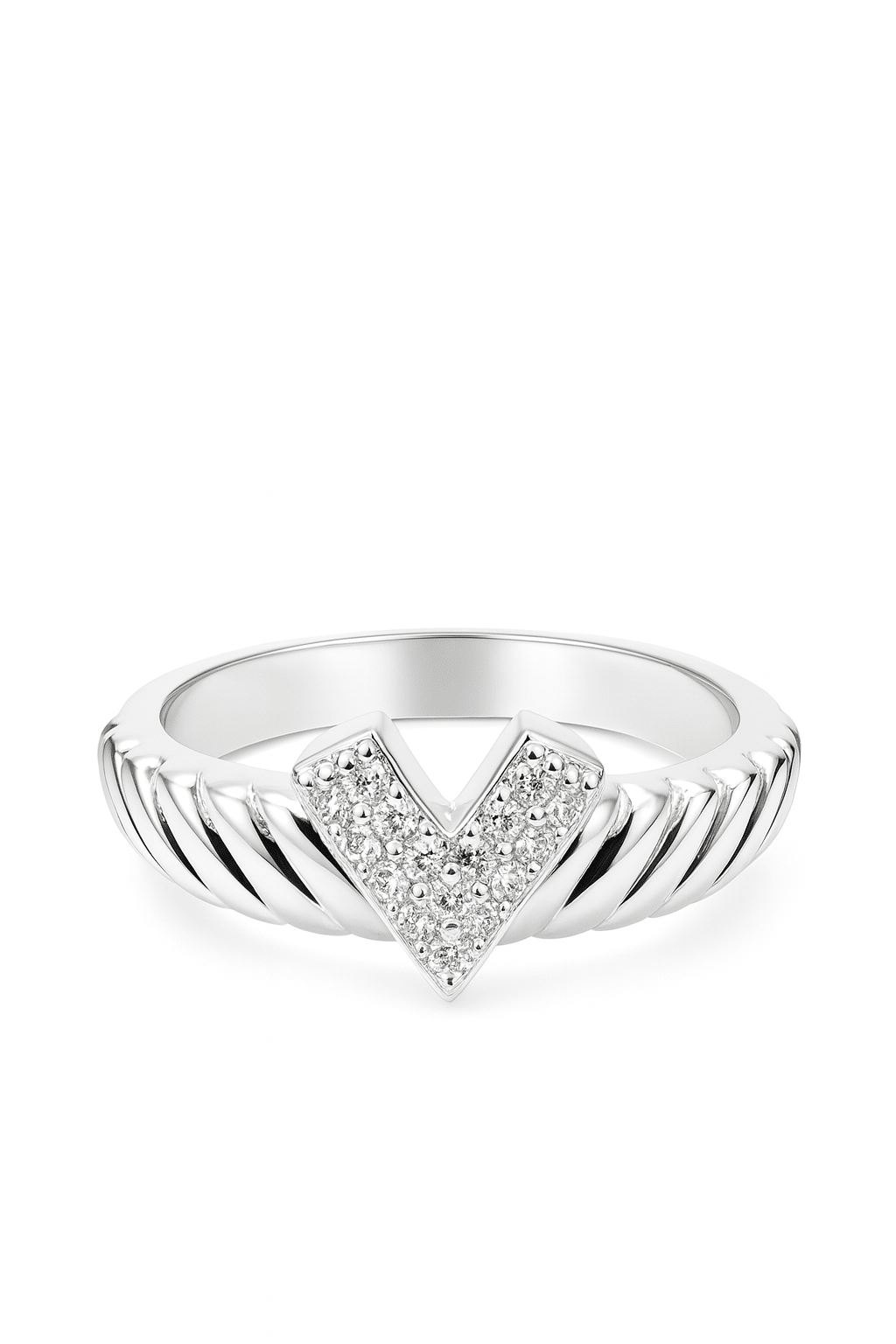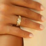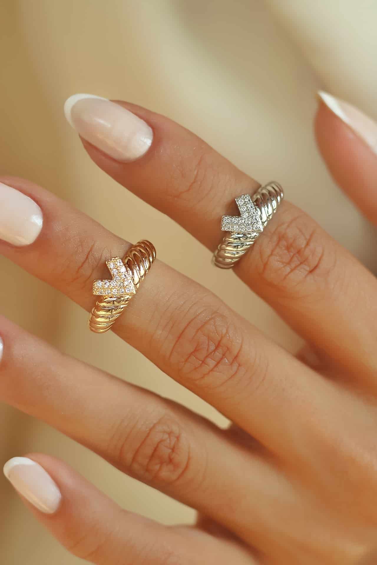 ANEL ZIRCONIA COM DUAS FAIXAS LISAS E DUAS CRAVEJADAS CRUZADAS