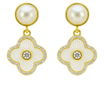 BRINCO PEROLA FLOR TODA CRAVEJADA COM PEROLA PENDURADA