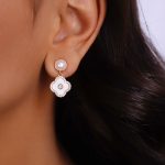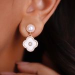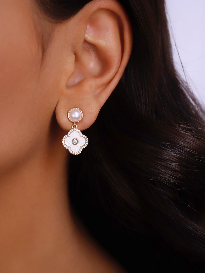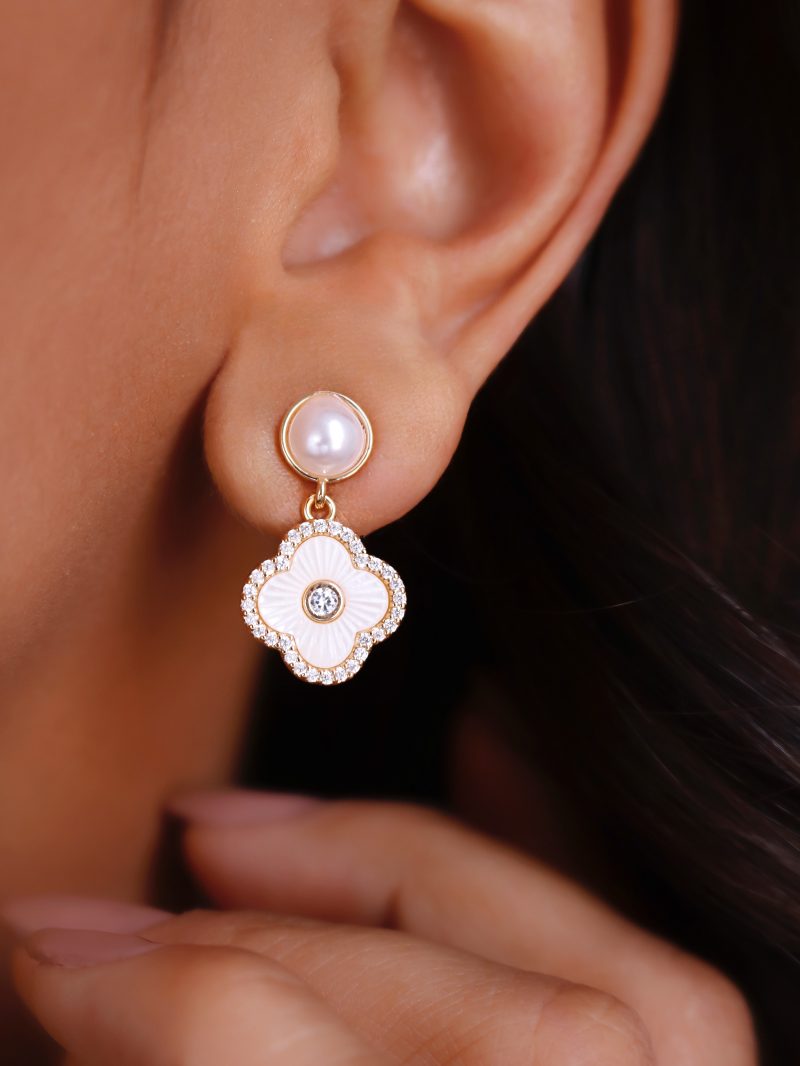 BRINCO PEROLA FLOR TODA CRAVEJADA COM PEROLA PENDURADA