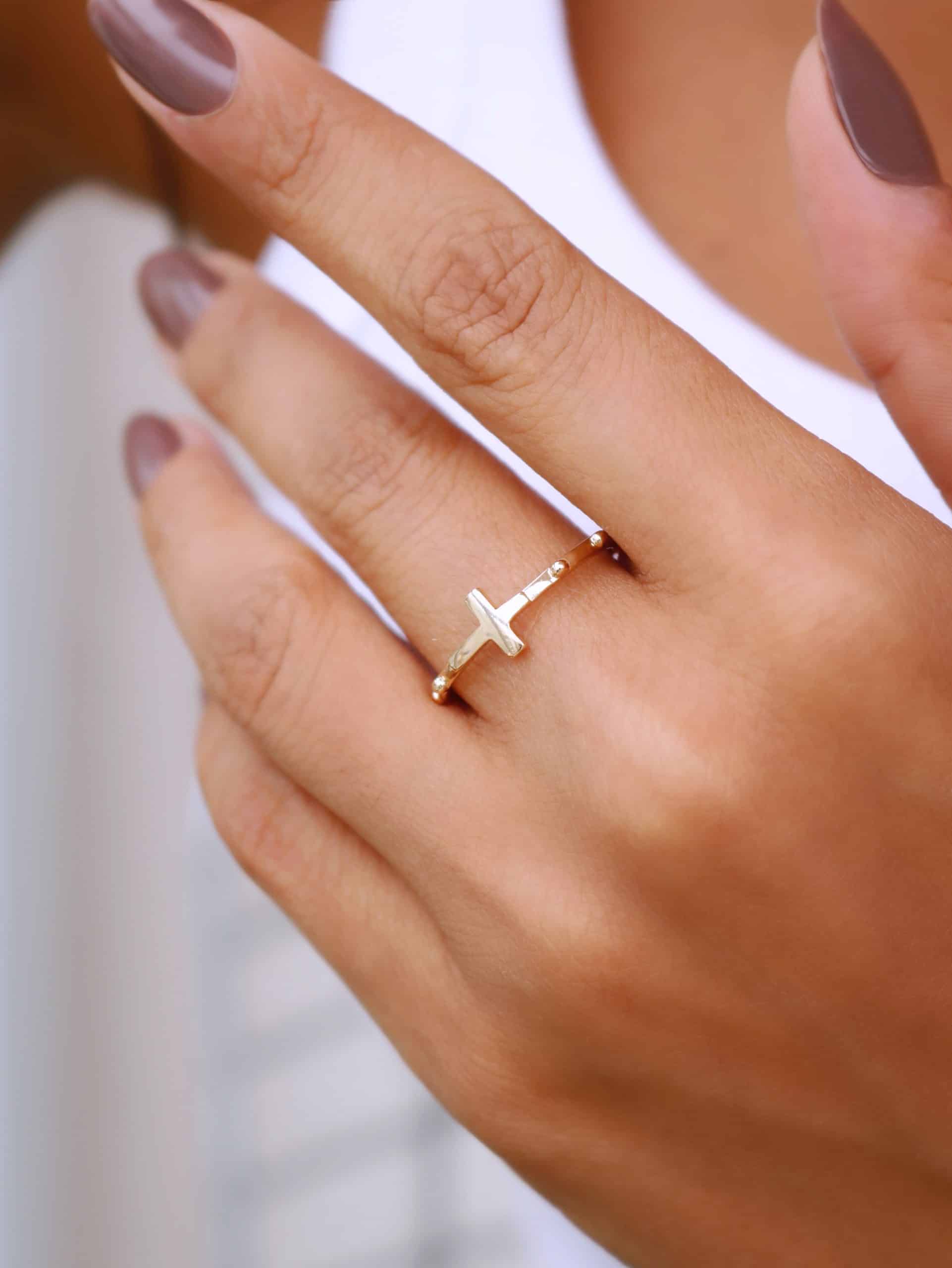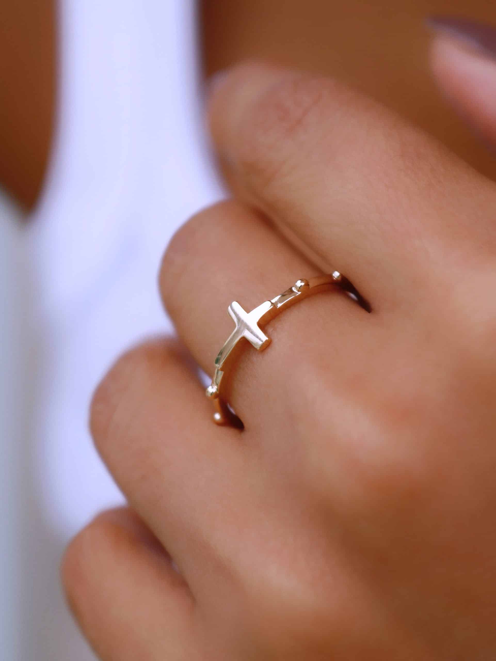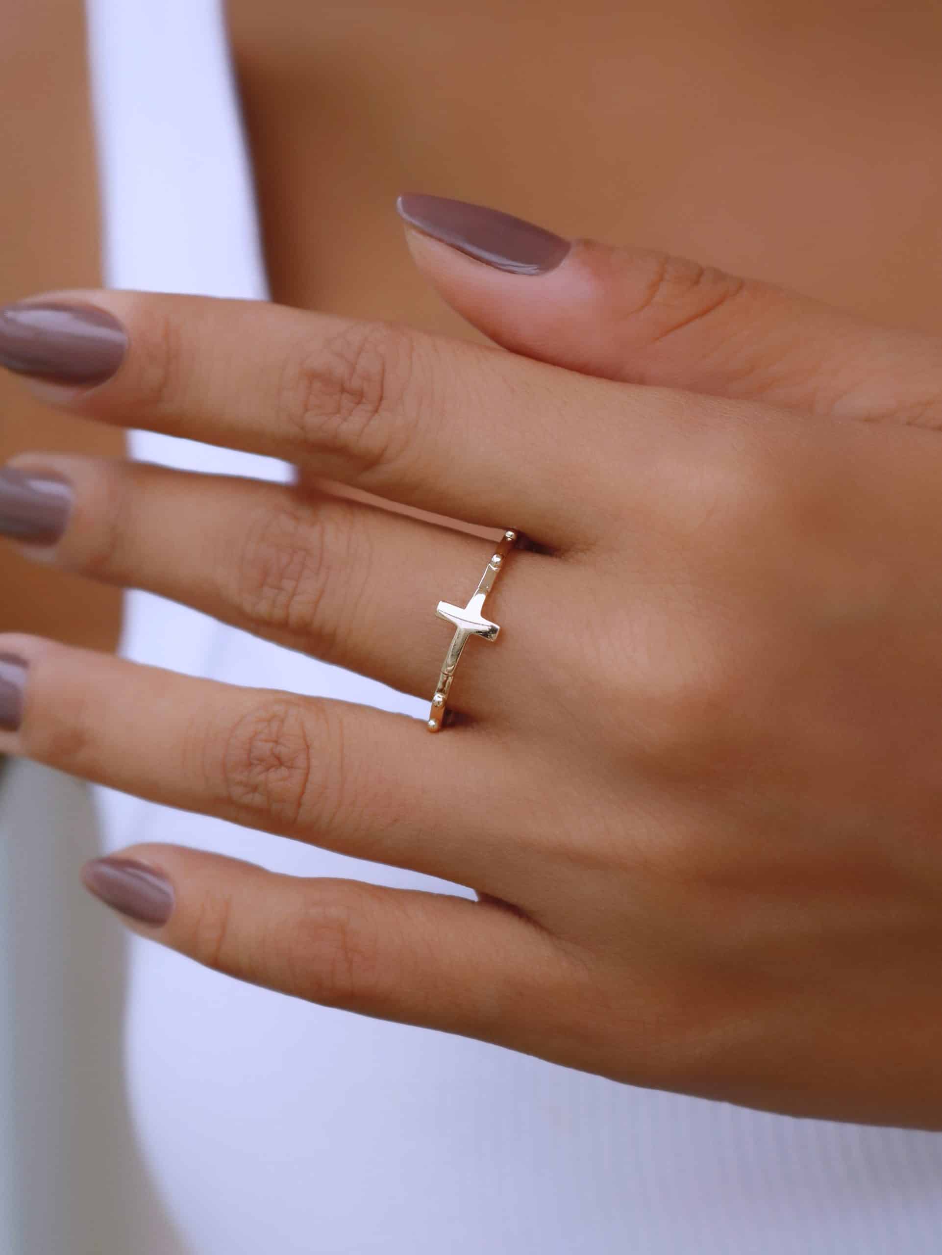 ANEL LISO CRUZ FINA COM BOLINHAS