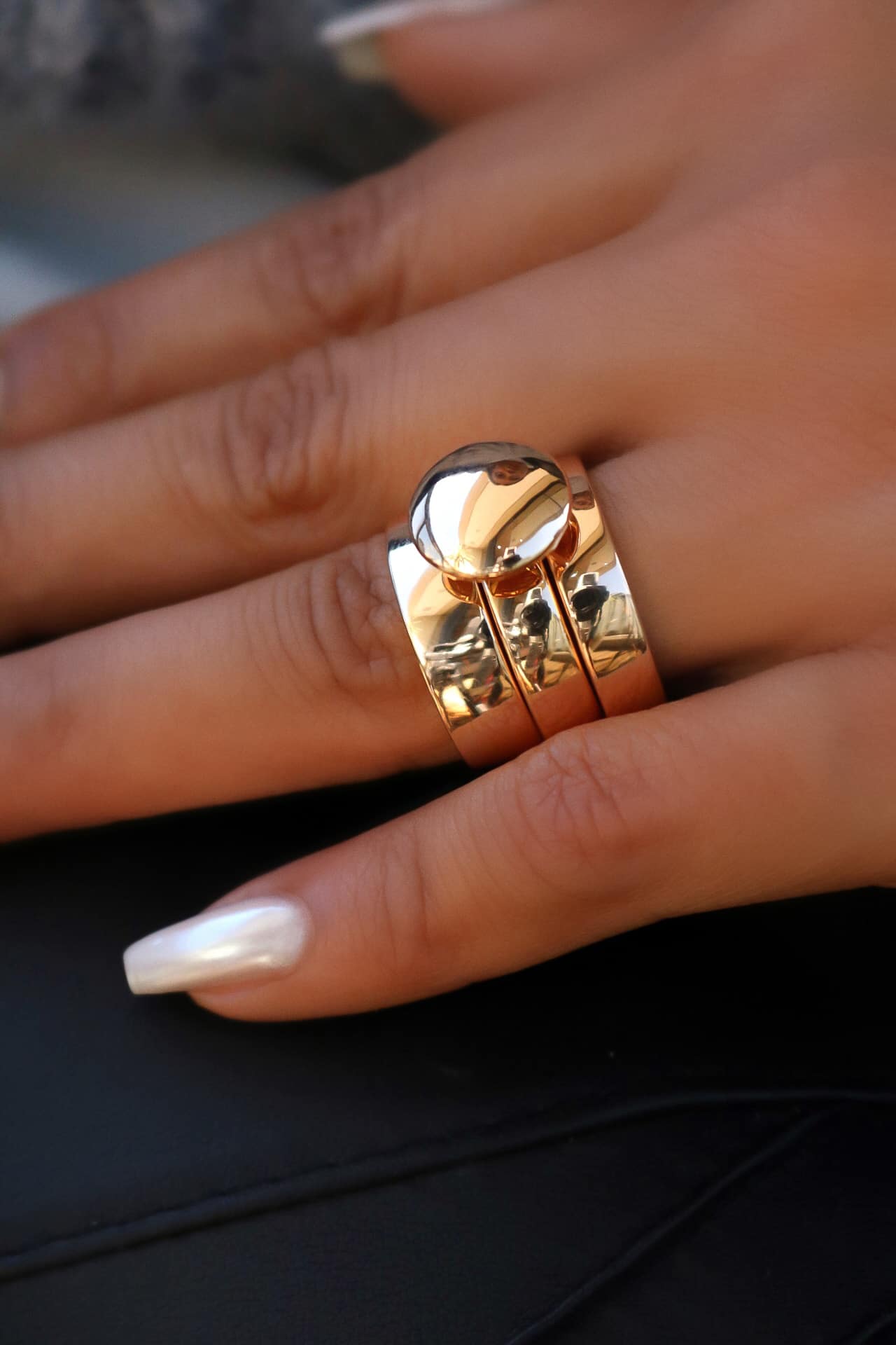ANEL ZIRCONIA COM DOIS ELOS GRANDES CRAVEJADO
