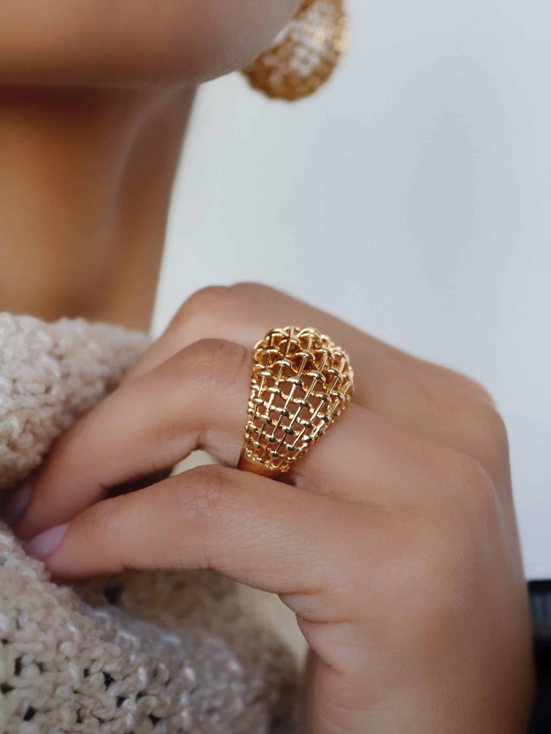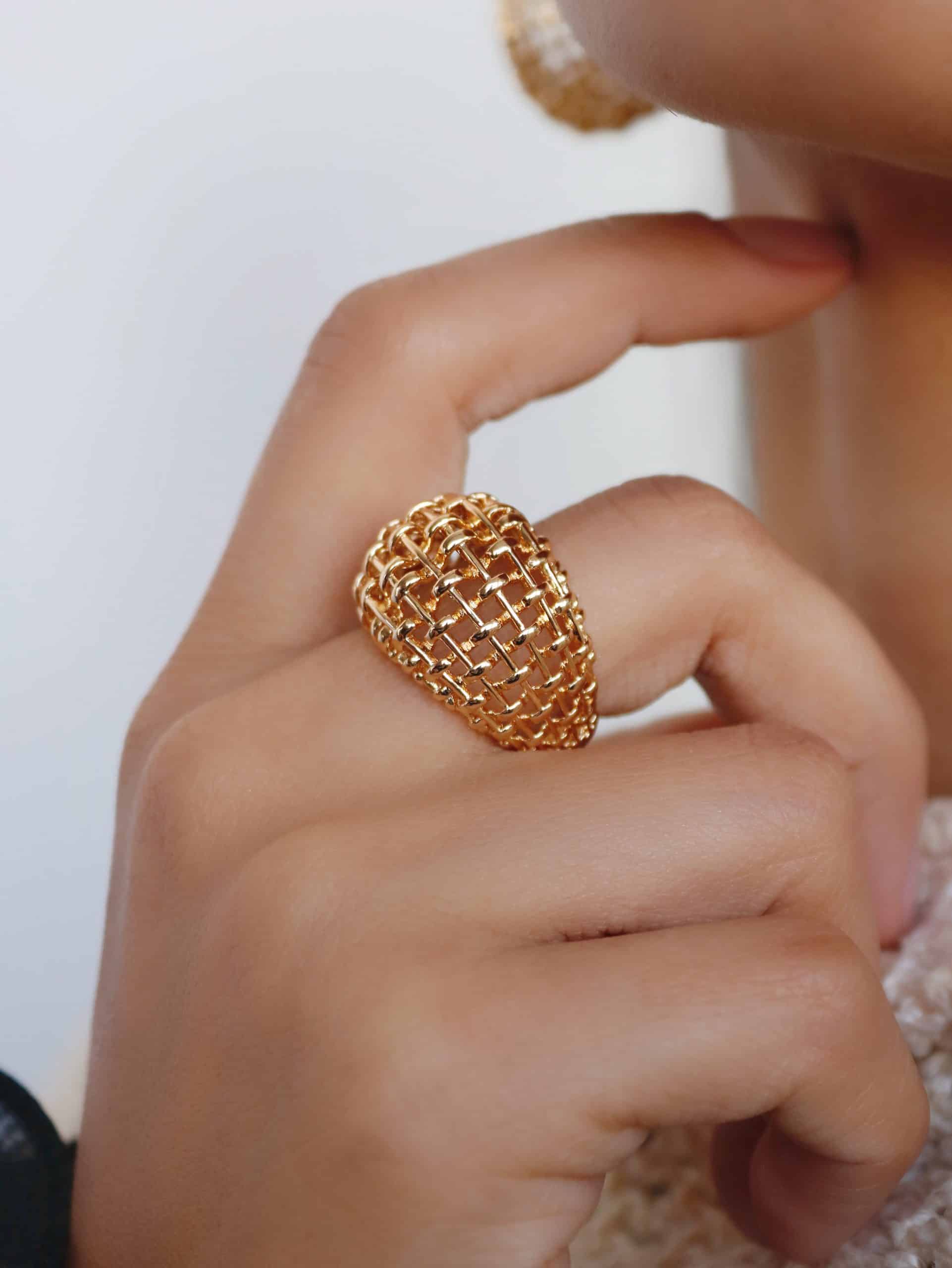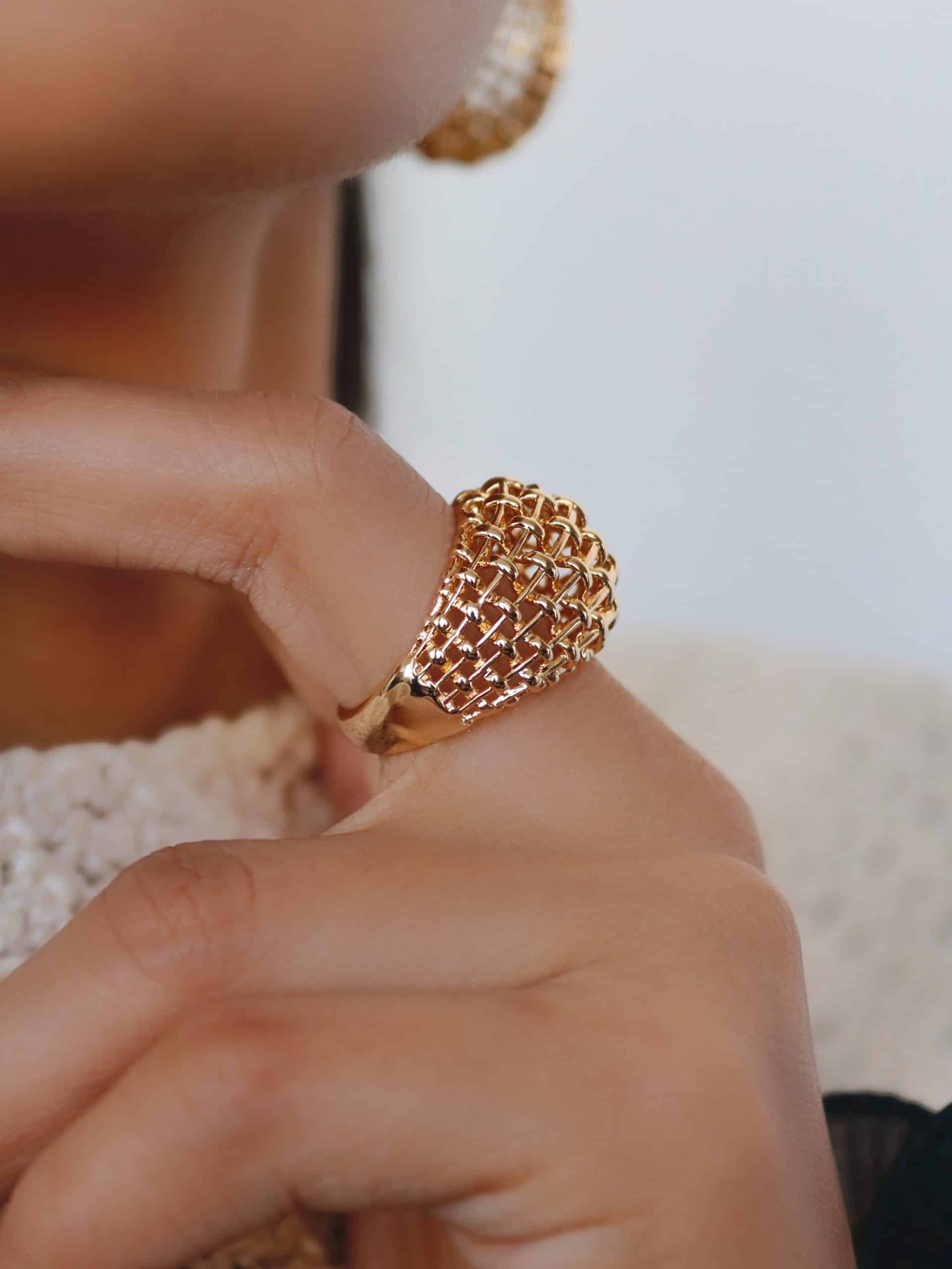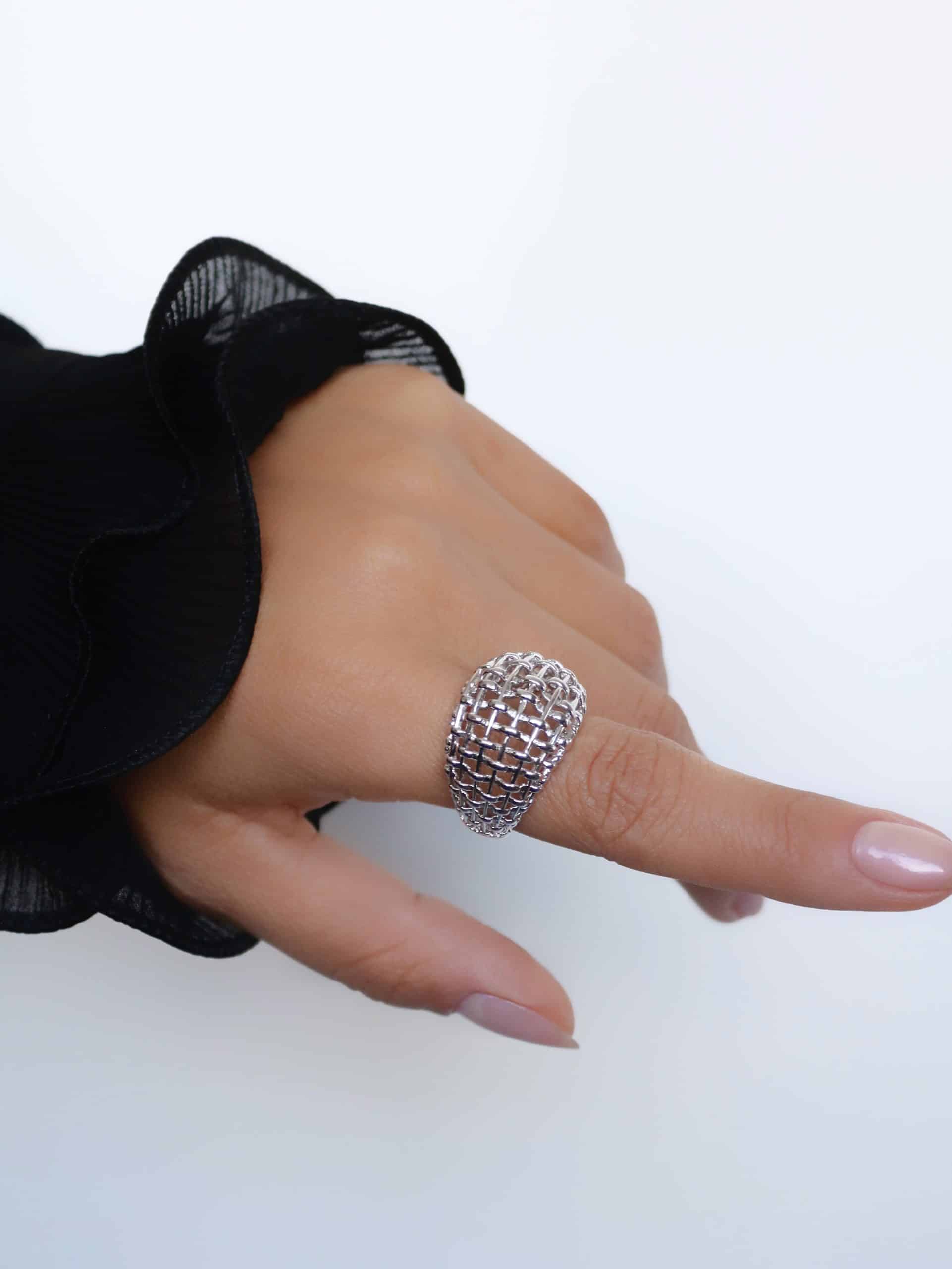 ANEL ZIRCONIA COM DUAS FAIXAS CRAVEJADAS E VAZADA NO MEIO COM BOLINHA