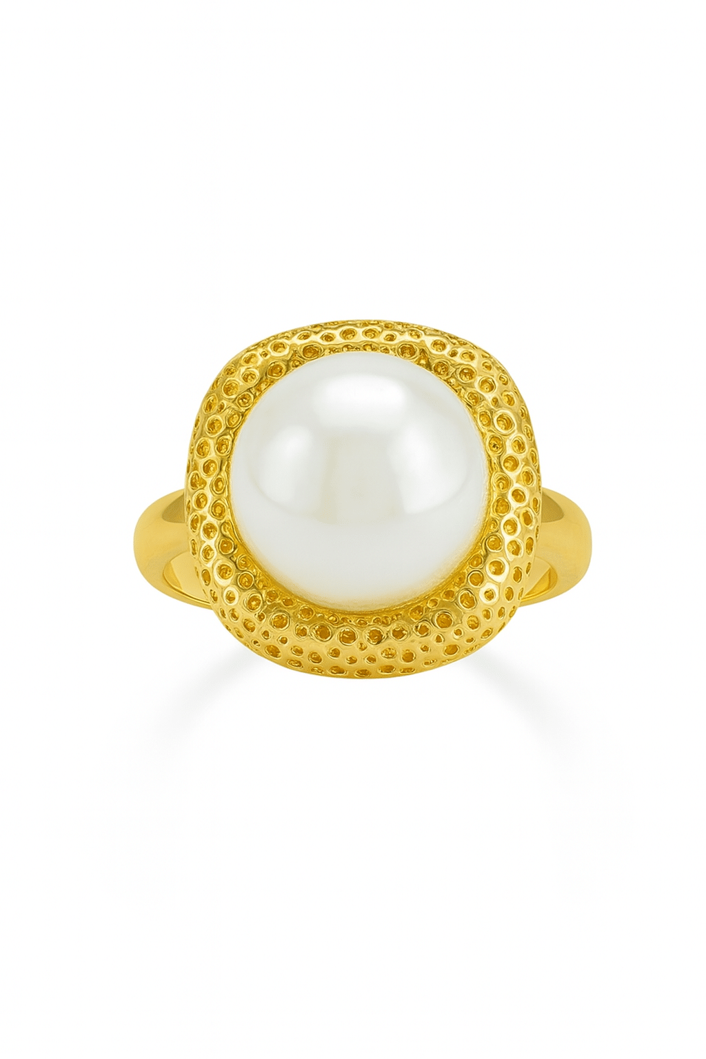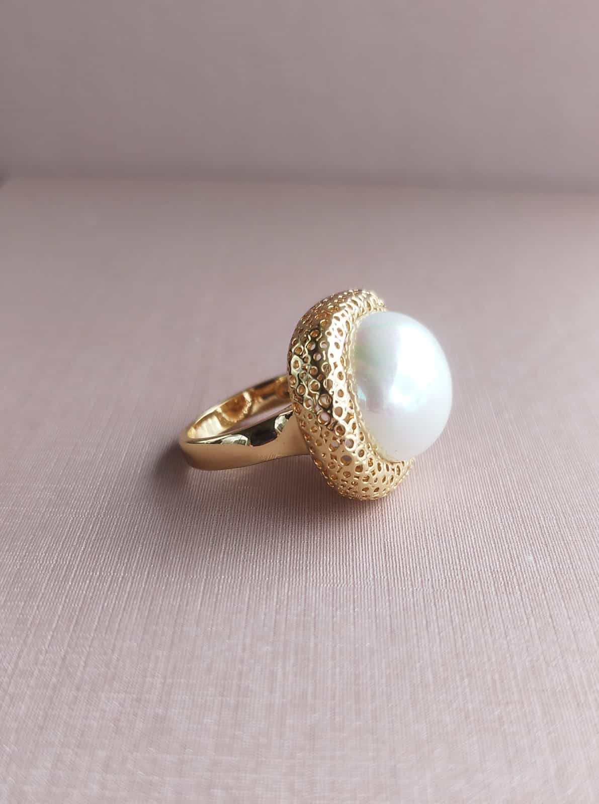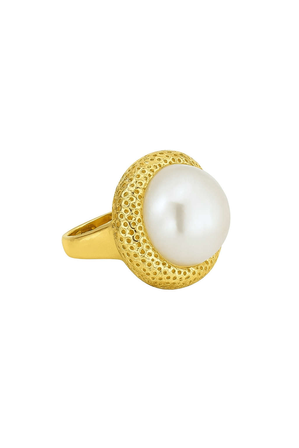 ANEL PEROLA ZIRCONIA COM FOLHAS DE NAVETES