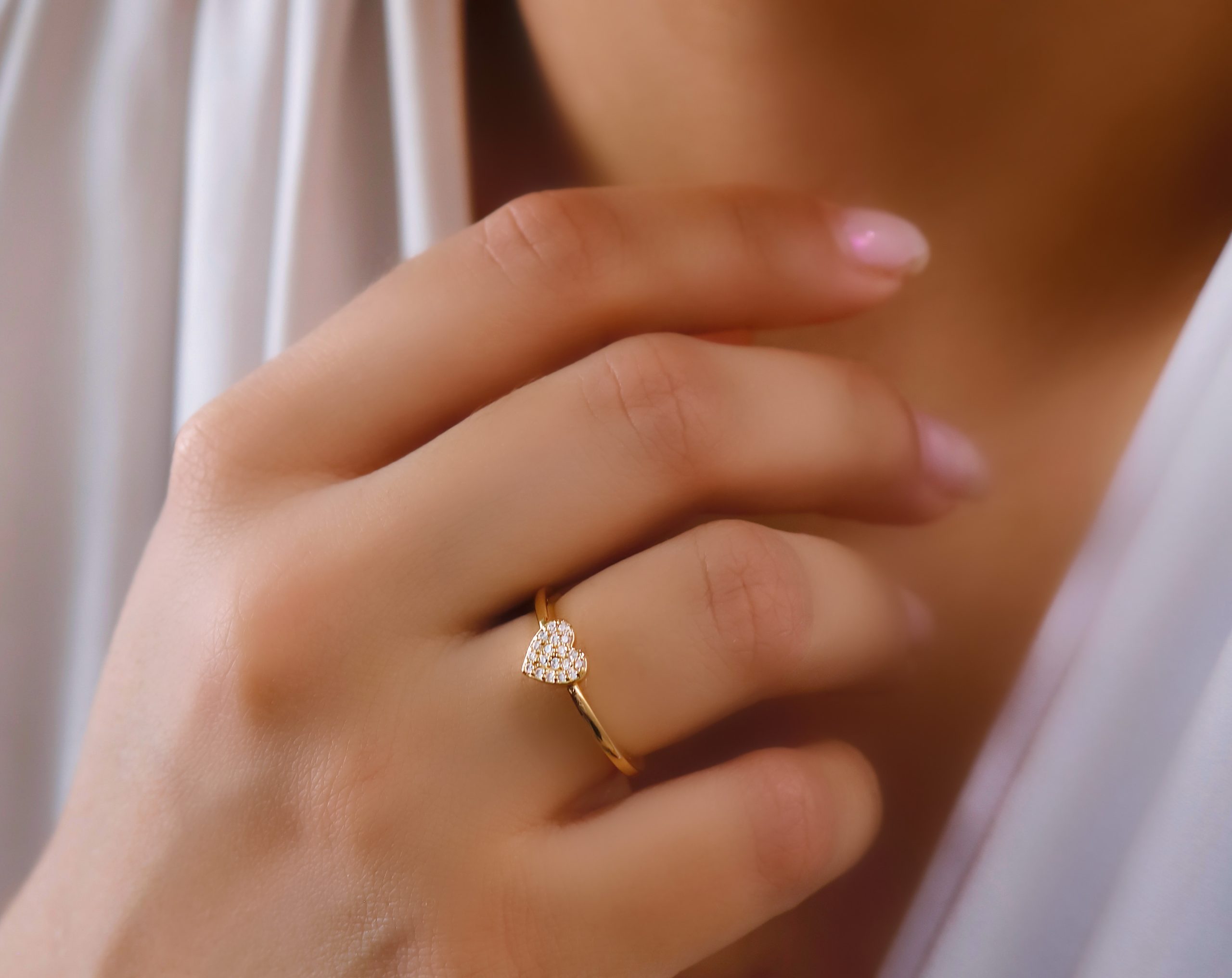 ANEL ZIRCONIA ALIANCA COM CORACAO CRAVEJADO NO MEIO