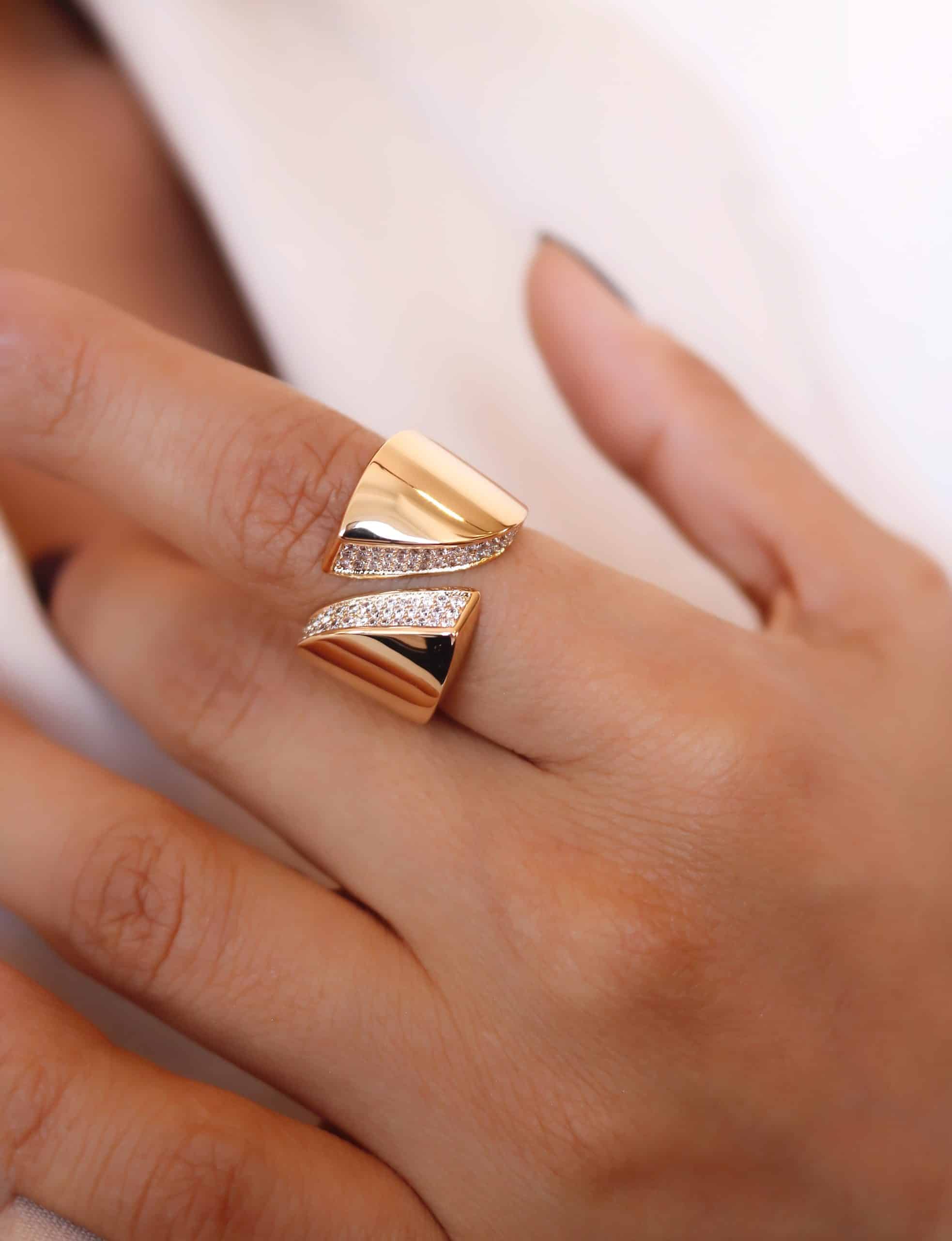 ANEL ZIRCONIA COM DUAS FAIXAS CRAVEJADAS AJUSTAVEL