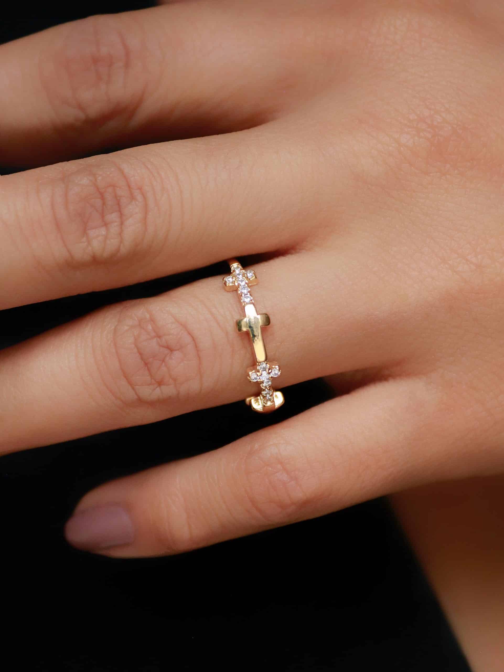 ANEL ZIRCONIA COM TRES CRUZ CRAVEJADAS E DUAS LISAS