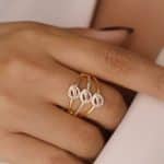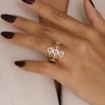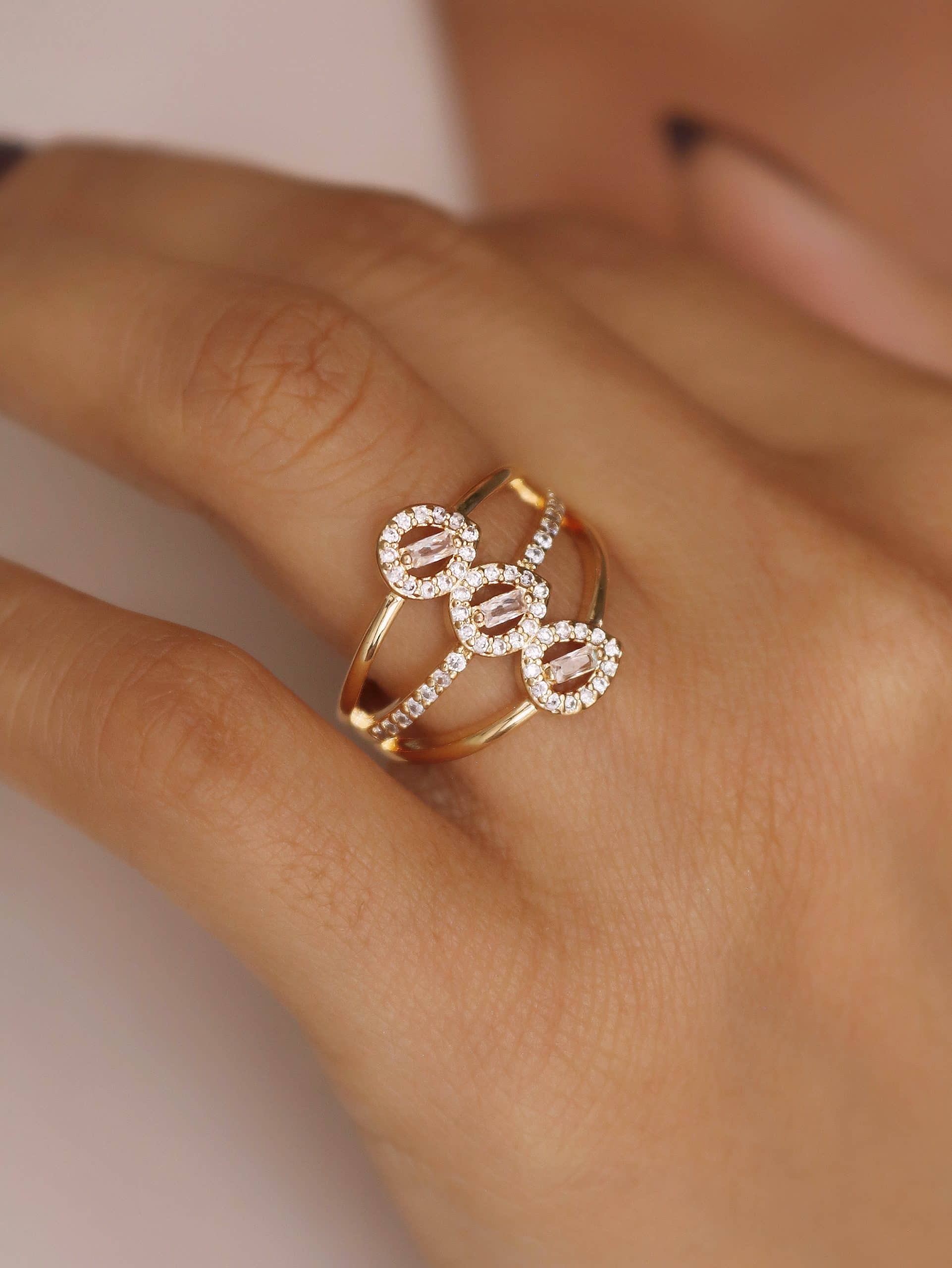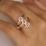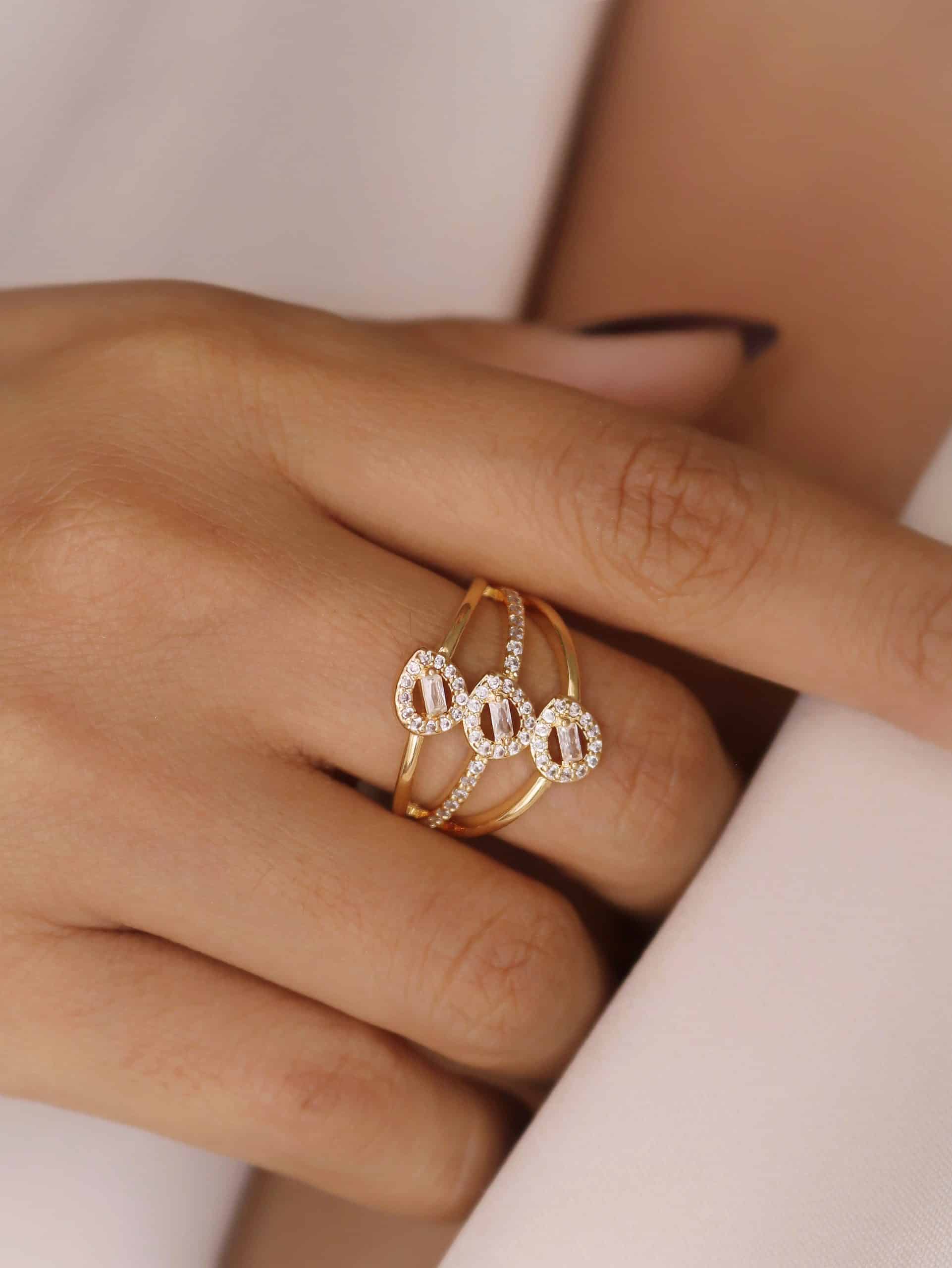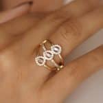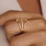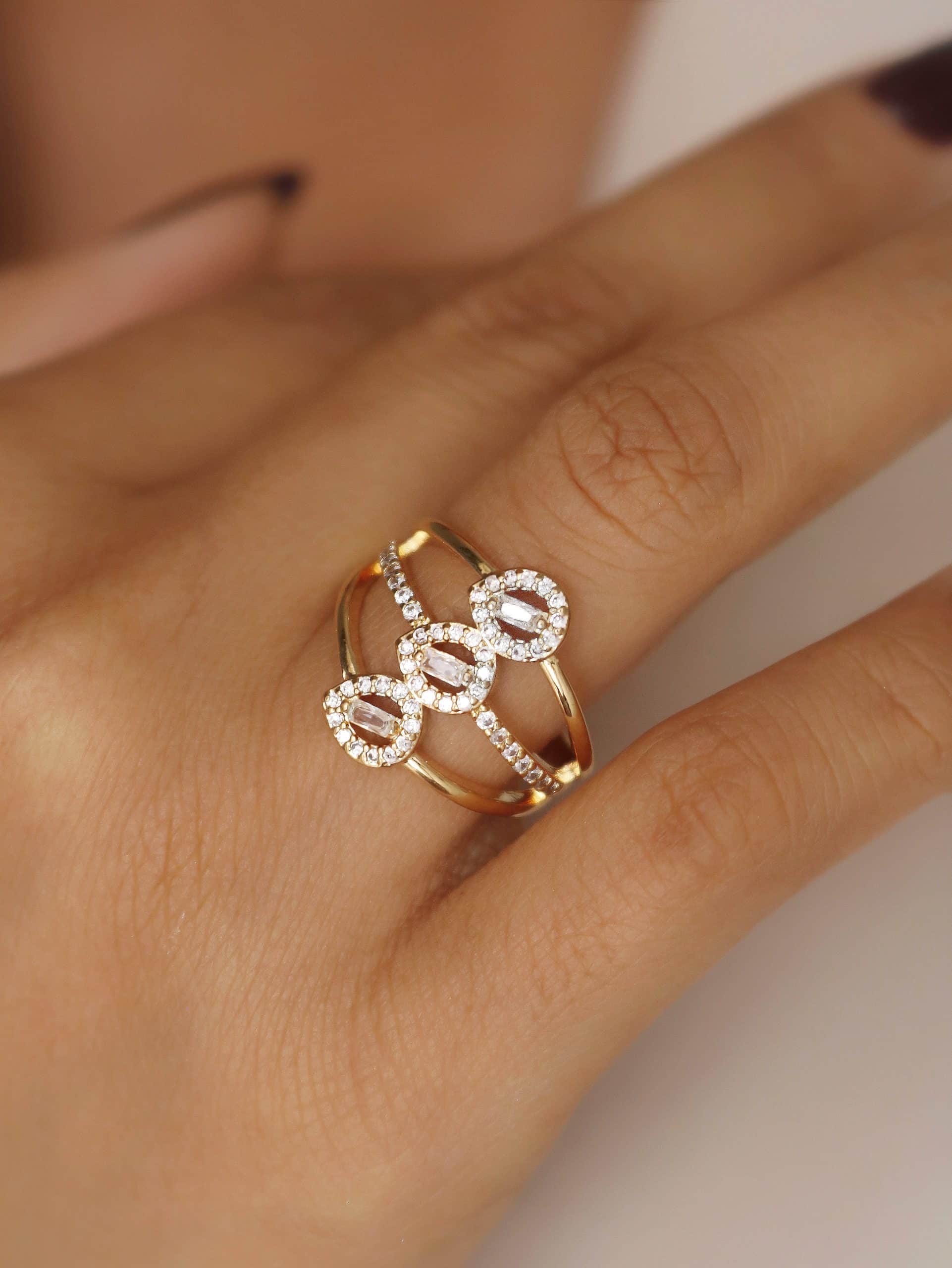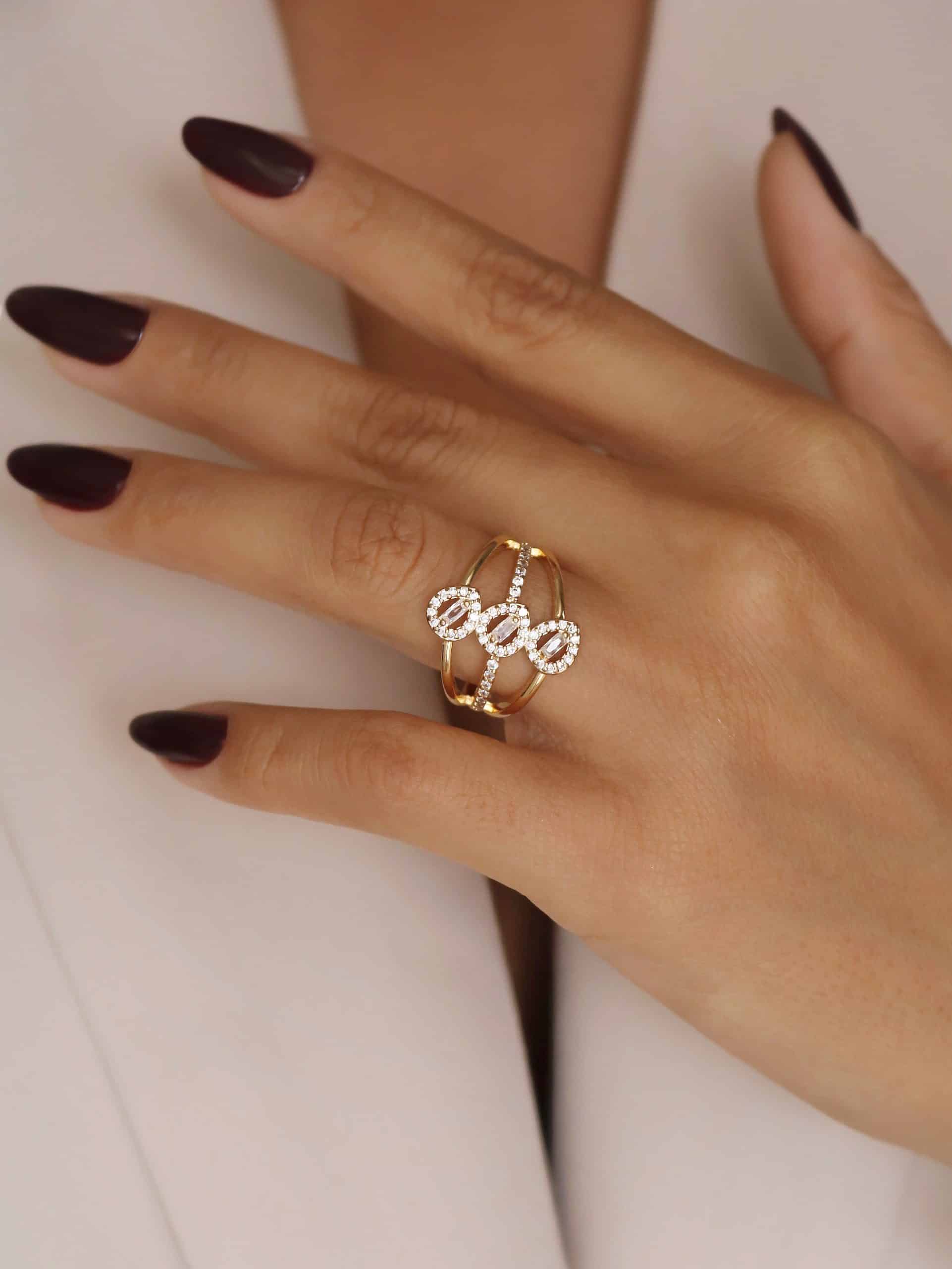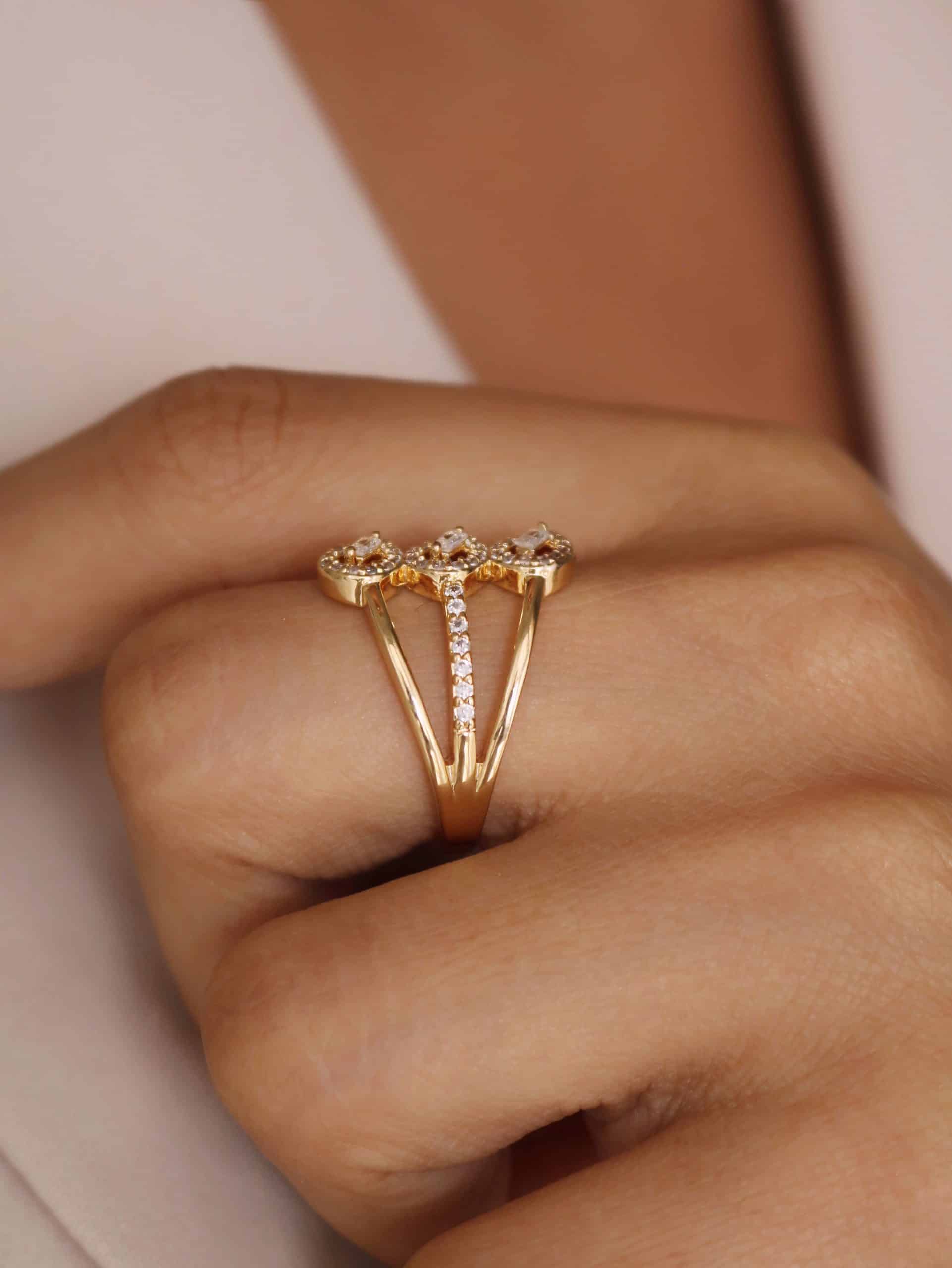 ANEL ZIRCONIA FORMATO X COM UMA FAIXA COM CINCO PONTO DE LUZ E A OUTRA TODA CRAVEJADA