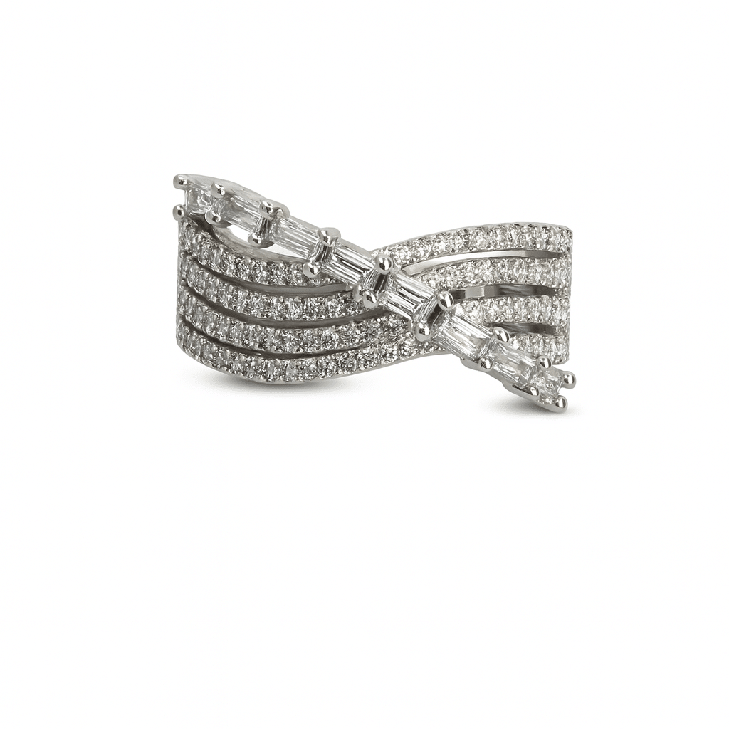 ANEL ZIRCONIA COM UMA FAIXA DE ZIRC BAGUETE CRUZADA