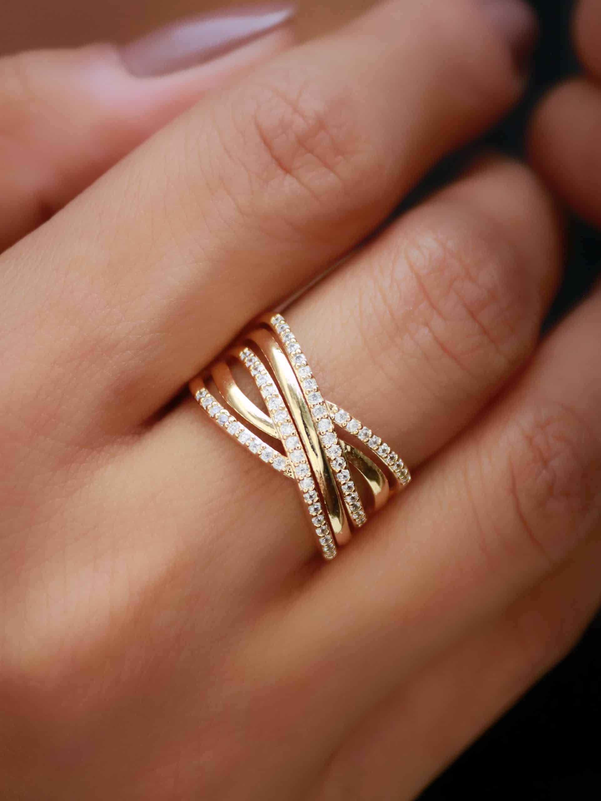 ANEL ZIRCONIA APARADOR COM QUATRO FAIXAS DE ZIRCONIAS