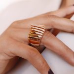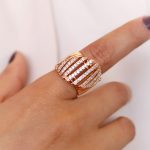 ANEL ZIRCONIA COM VARIAS FAIXAS LISAS E CRAVEJADAS ABAULADO