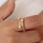 ANEL ZIRCONIA COM LOSANGOS LISOS E CRAVEJADOS PEQUENOS