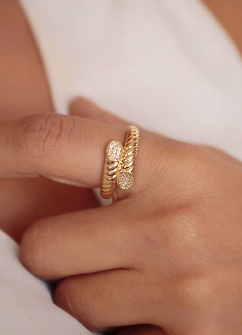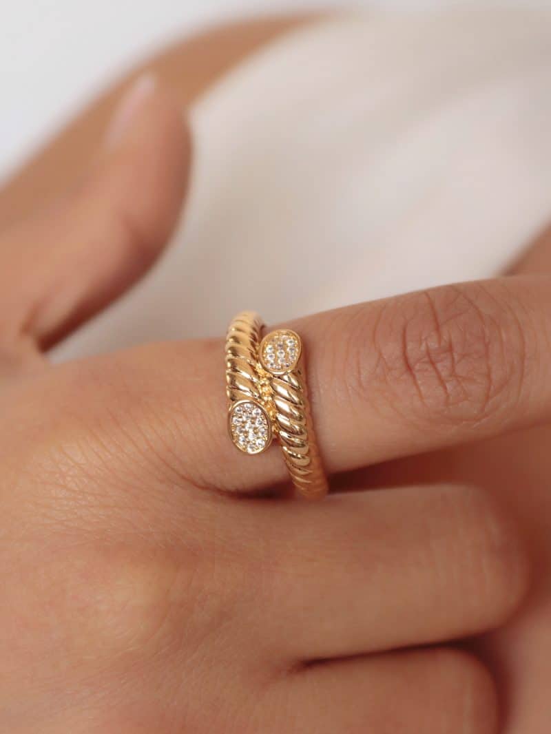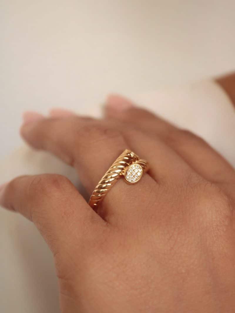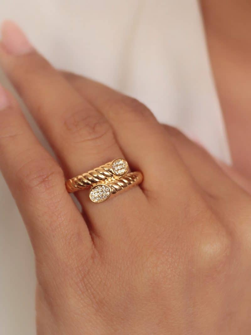 ANEL ZIRCONIA COM LOSANGOS LISOS E CRAVEJADOS PEQUENOS