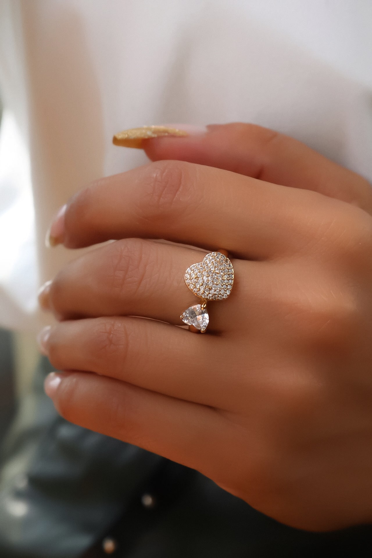 ANEL ZIRCONIA TRIO APARADOR COM CORACAO E ZIRCONIA
