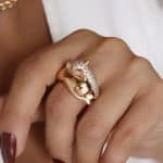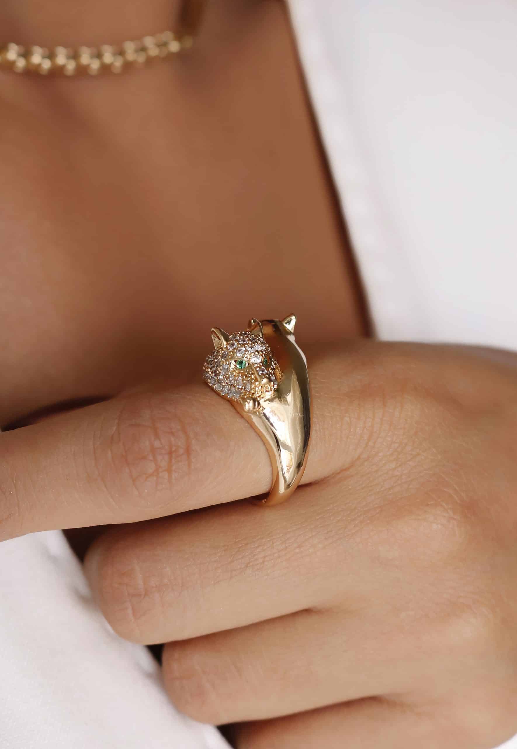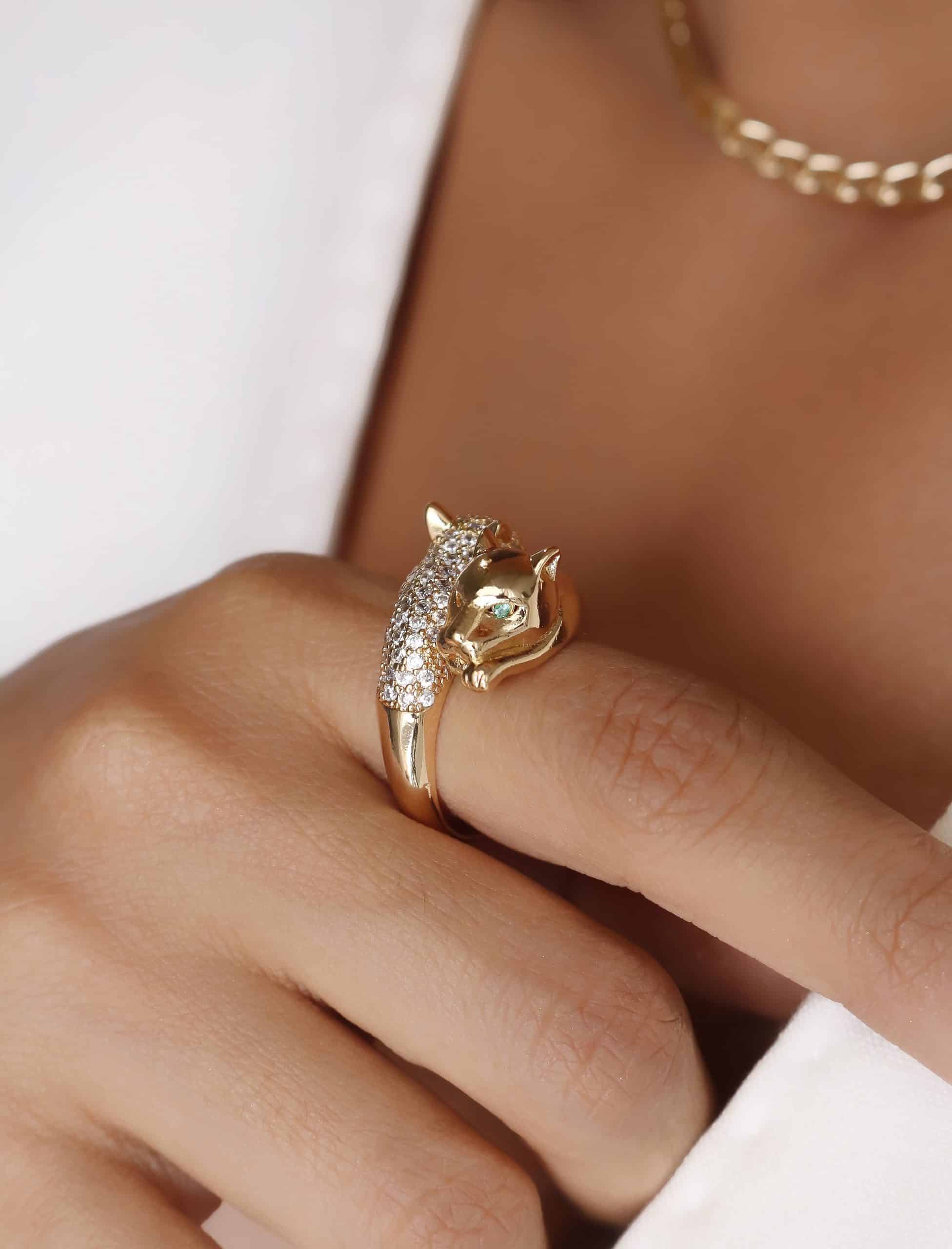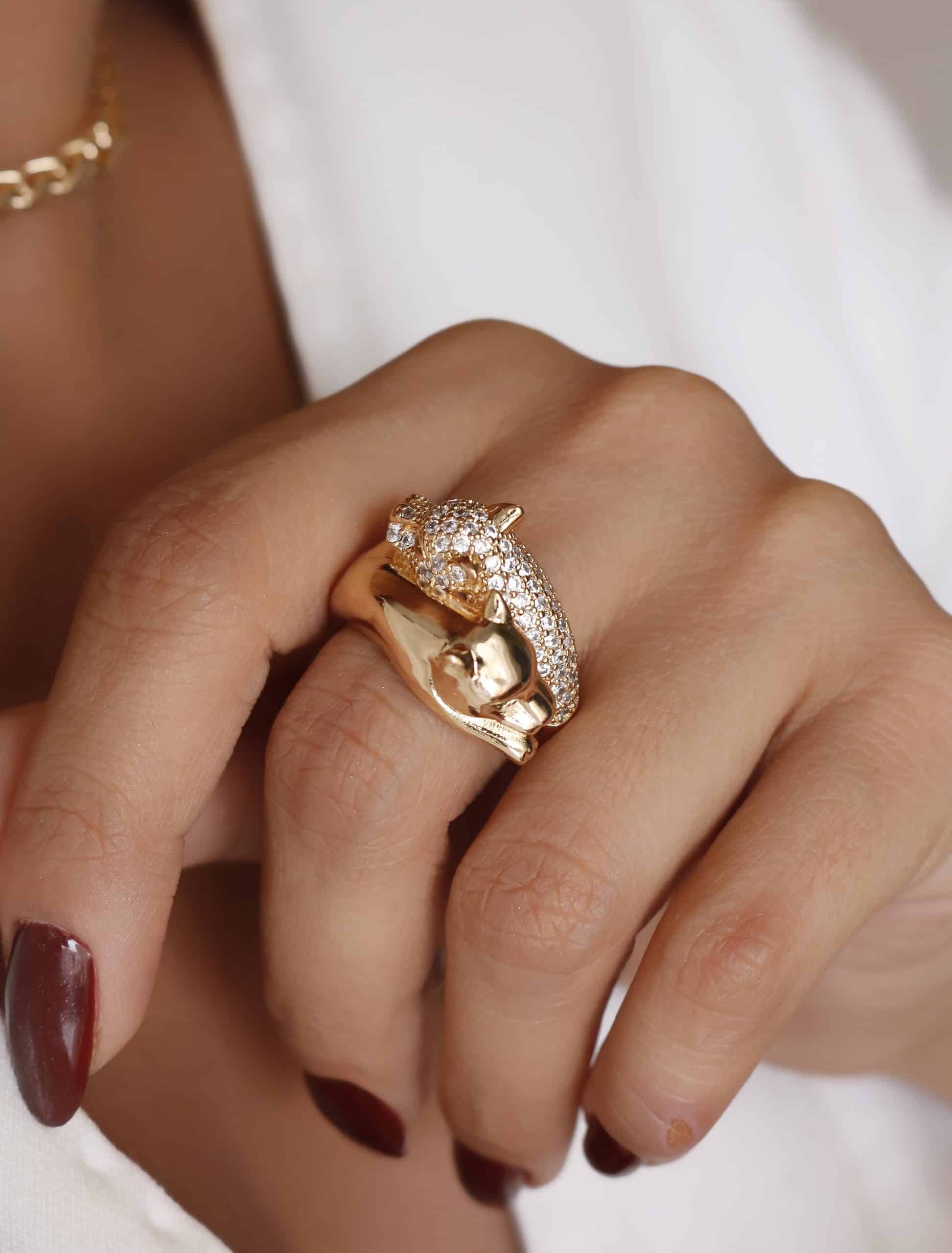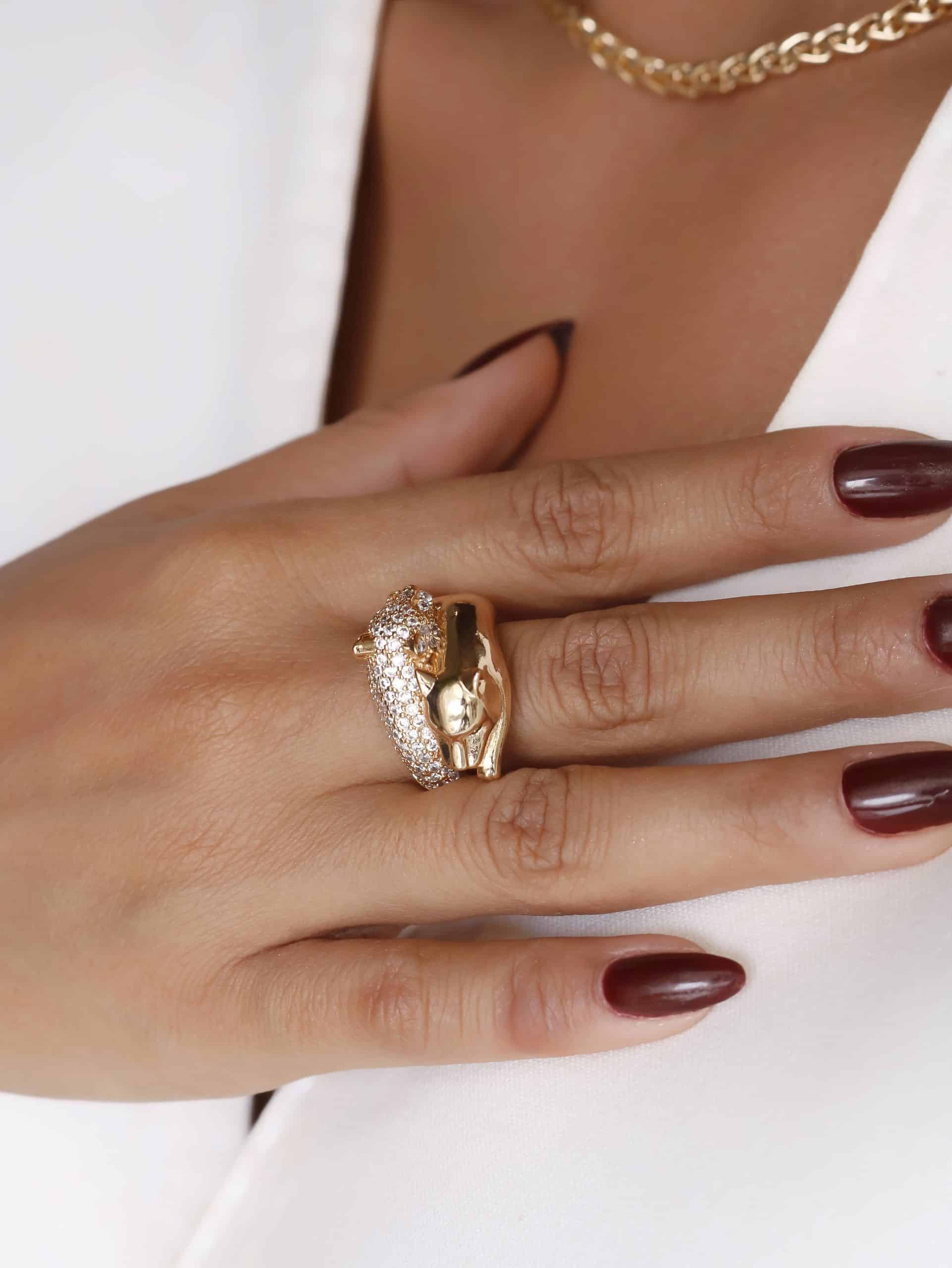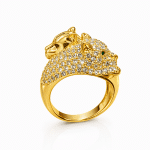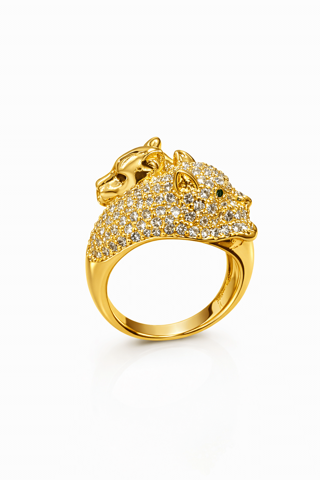 ANEL ZIRCONIA DUAS PANTERAS CRAVEJADA E LISA