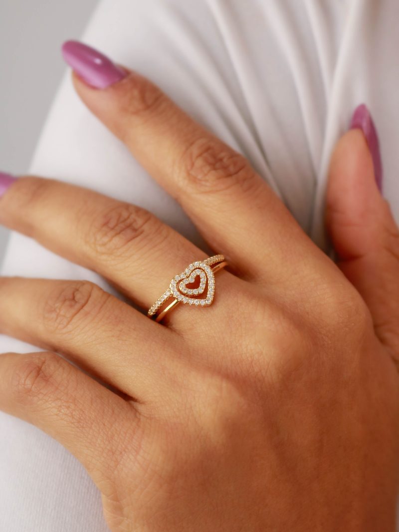 ANEL ZIRCONIA DUPLO CORACAO VAZADO ENCAIXE