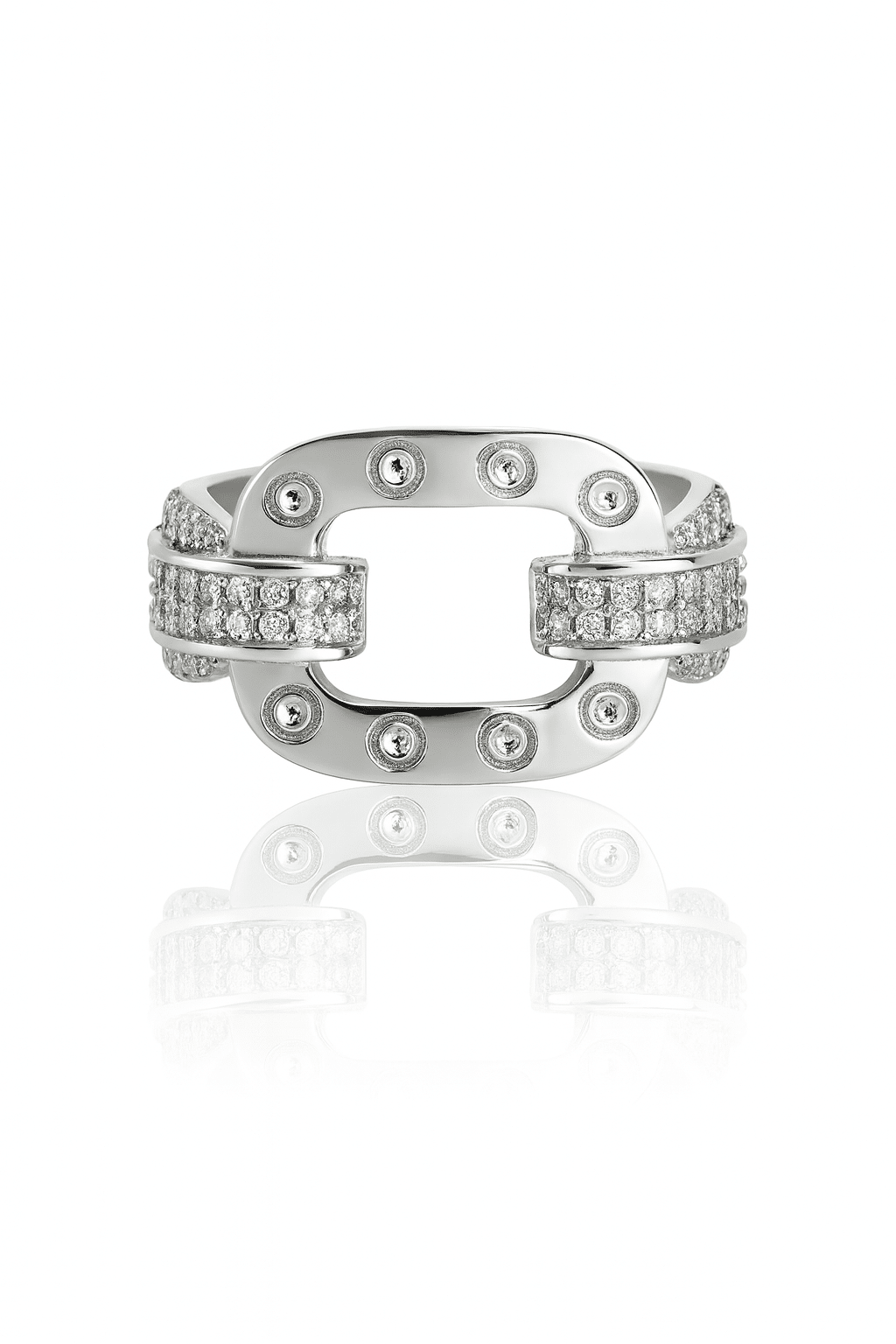 ANEL ZIRCONIA ELOS LISOS COM BOLINHAS E FRENTE CRAVEJADA