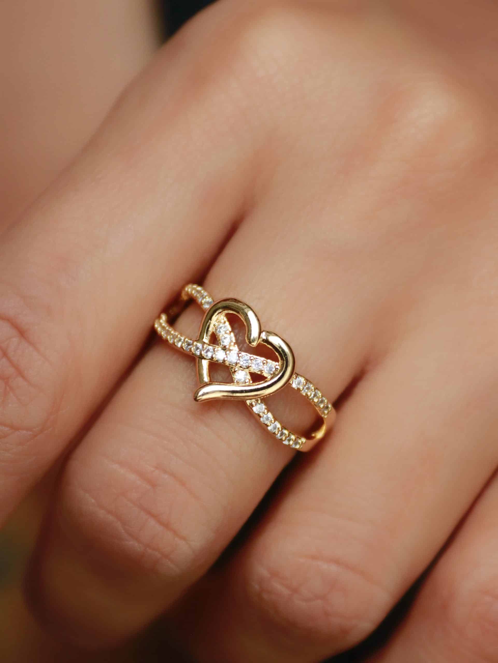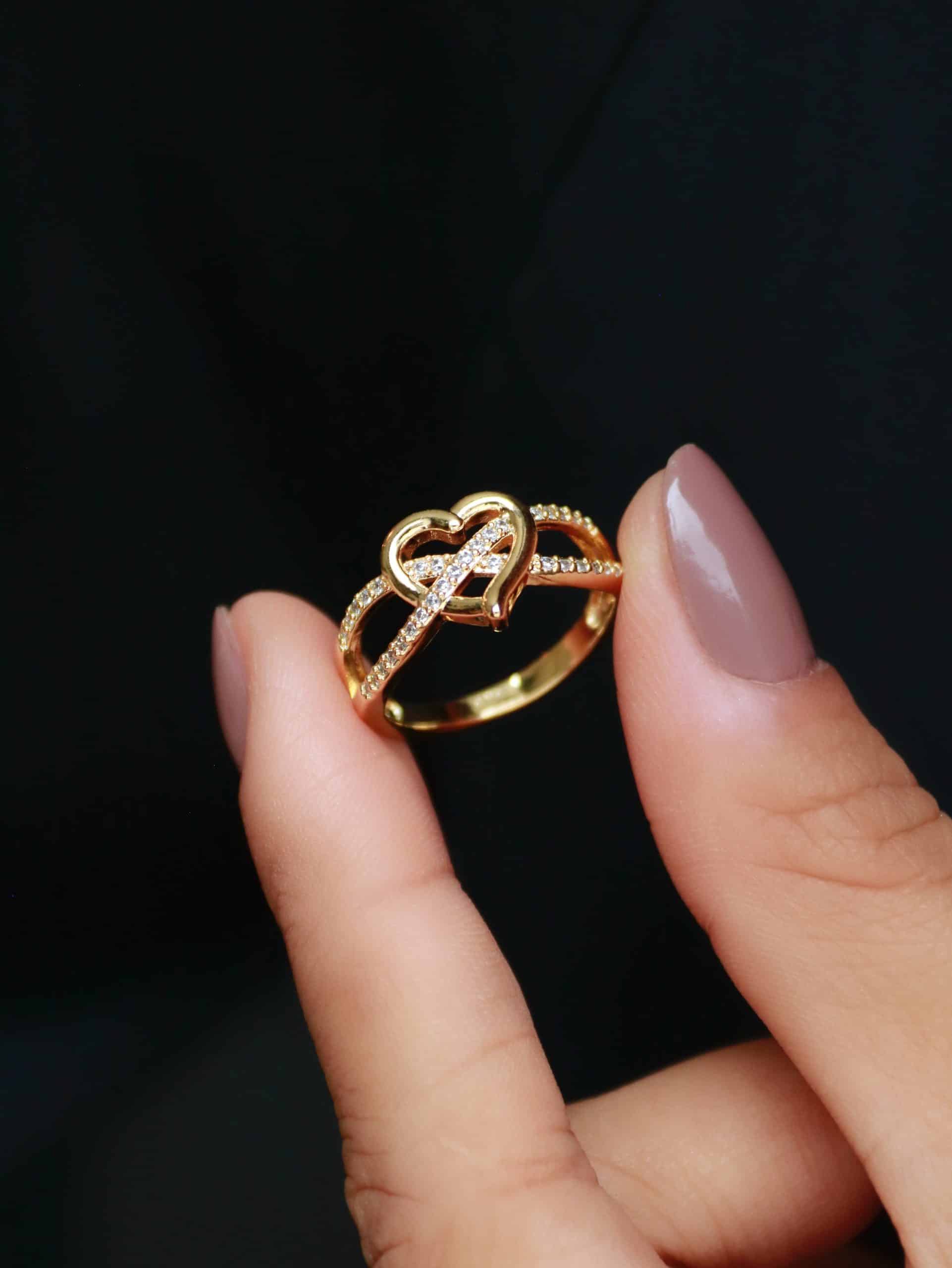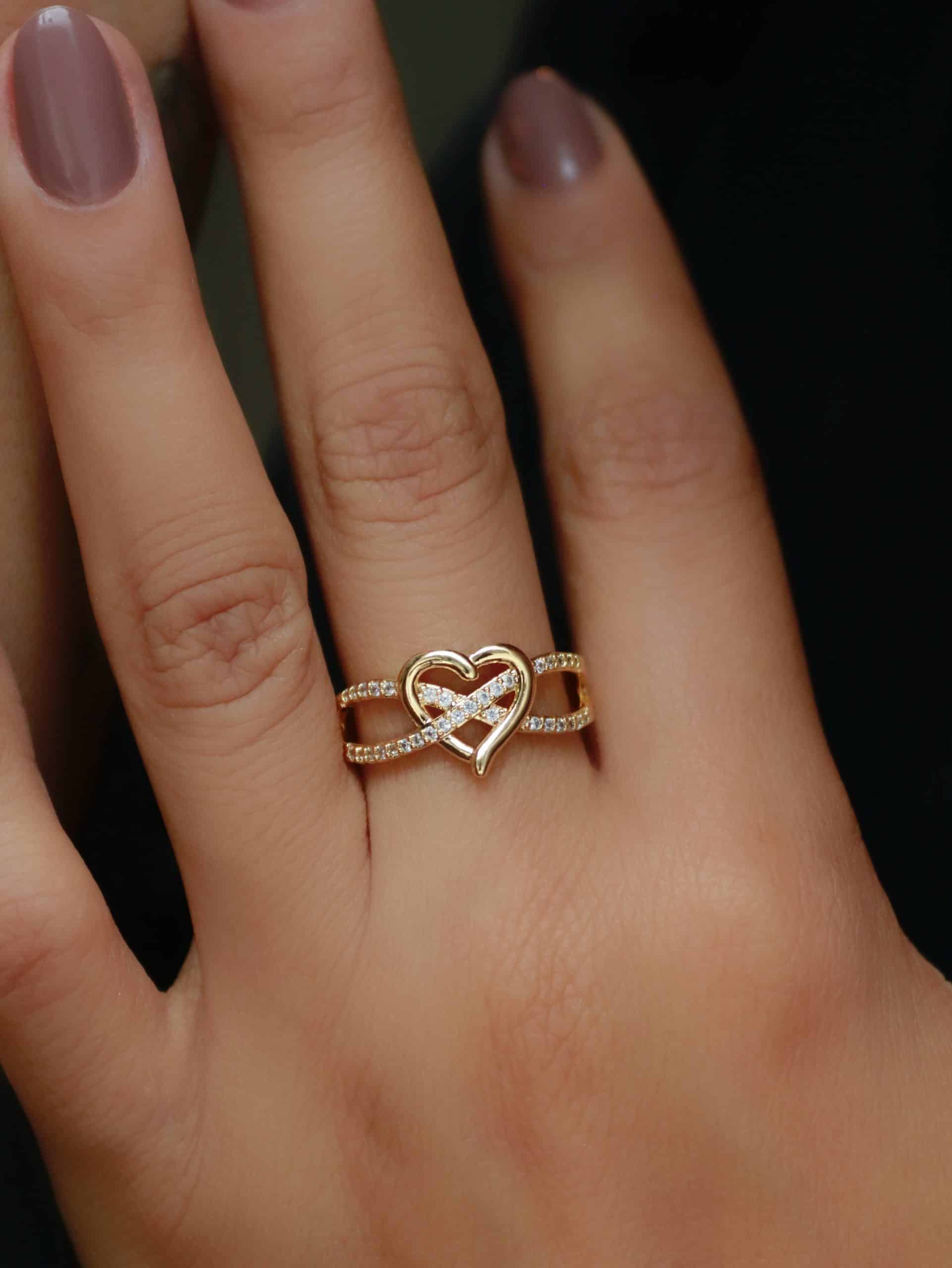 ANEL ZIRCONIA ENTRELACADO COM UM CORACAO LISO NO MEIO