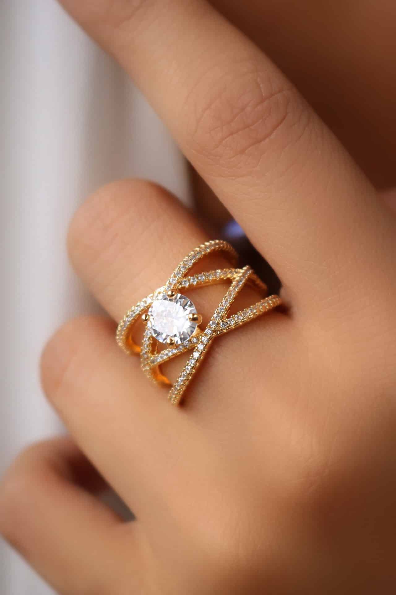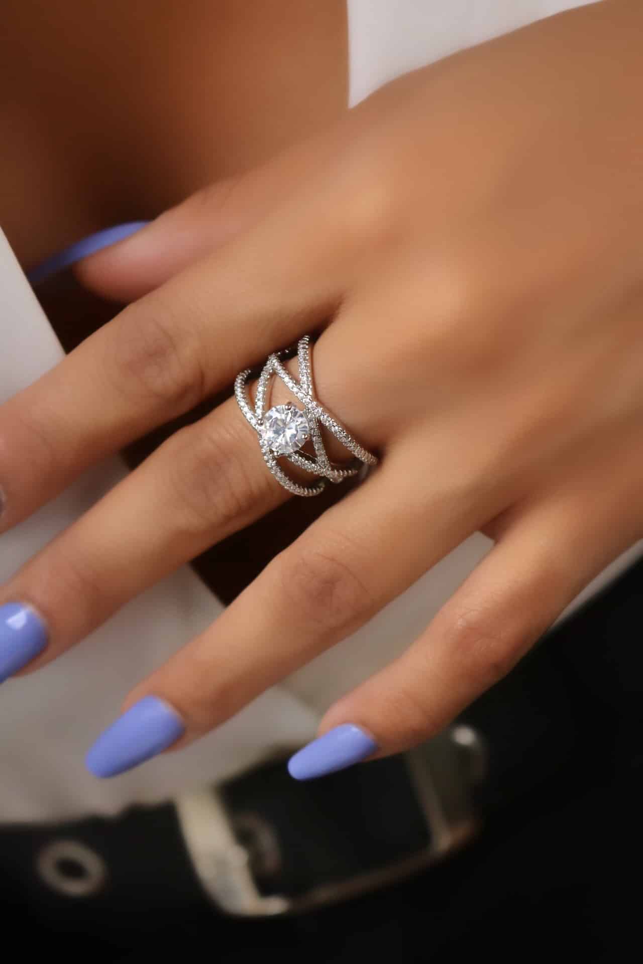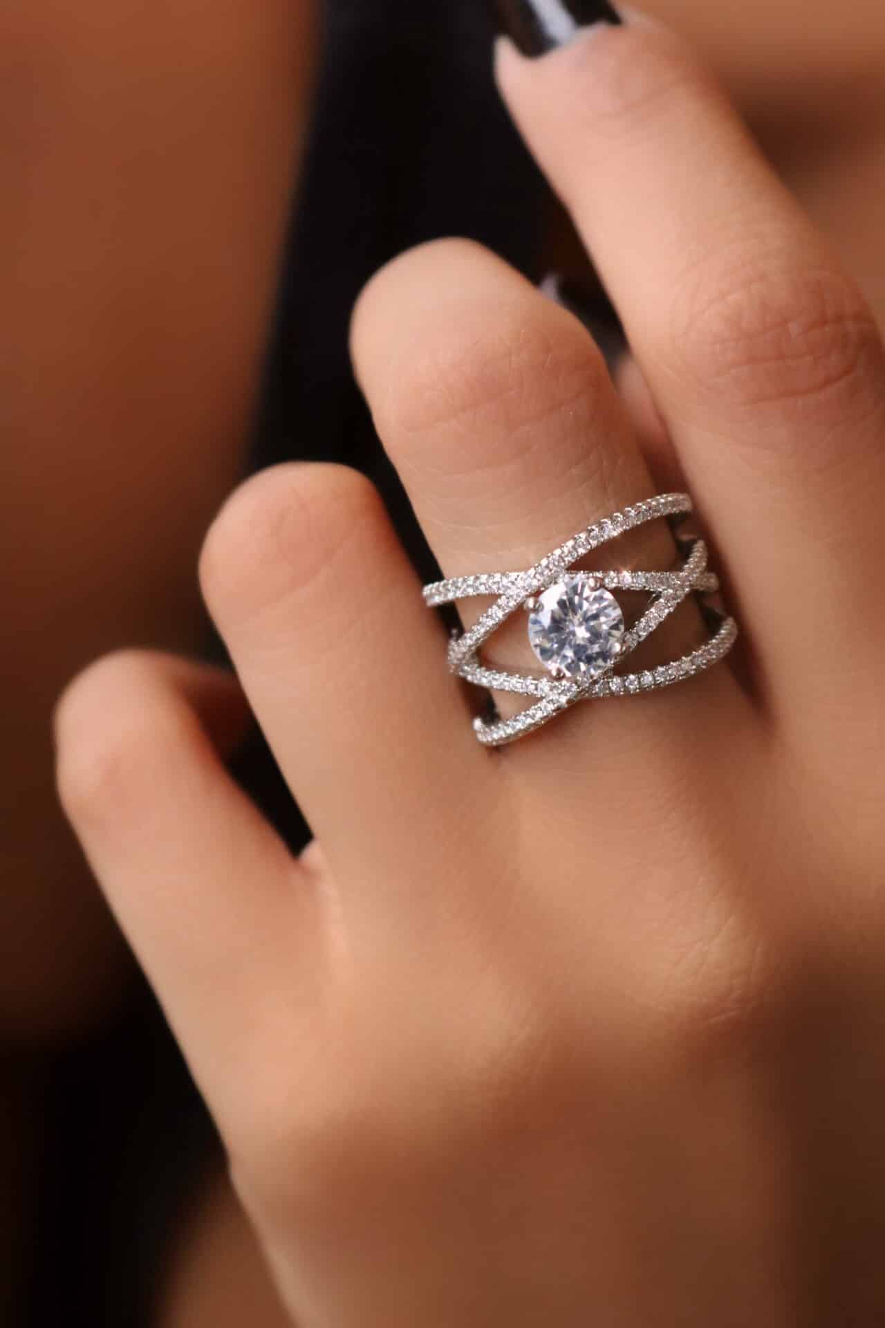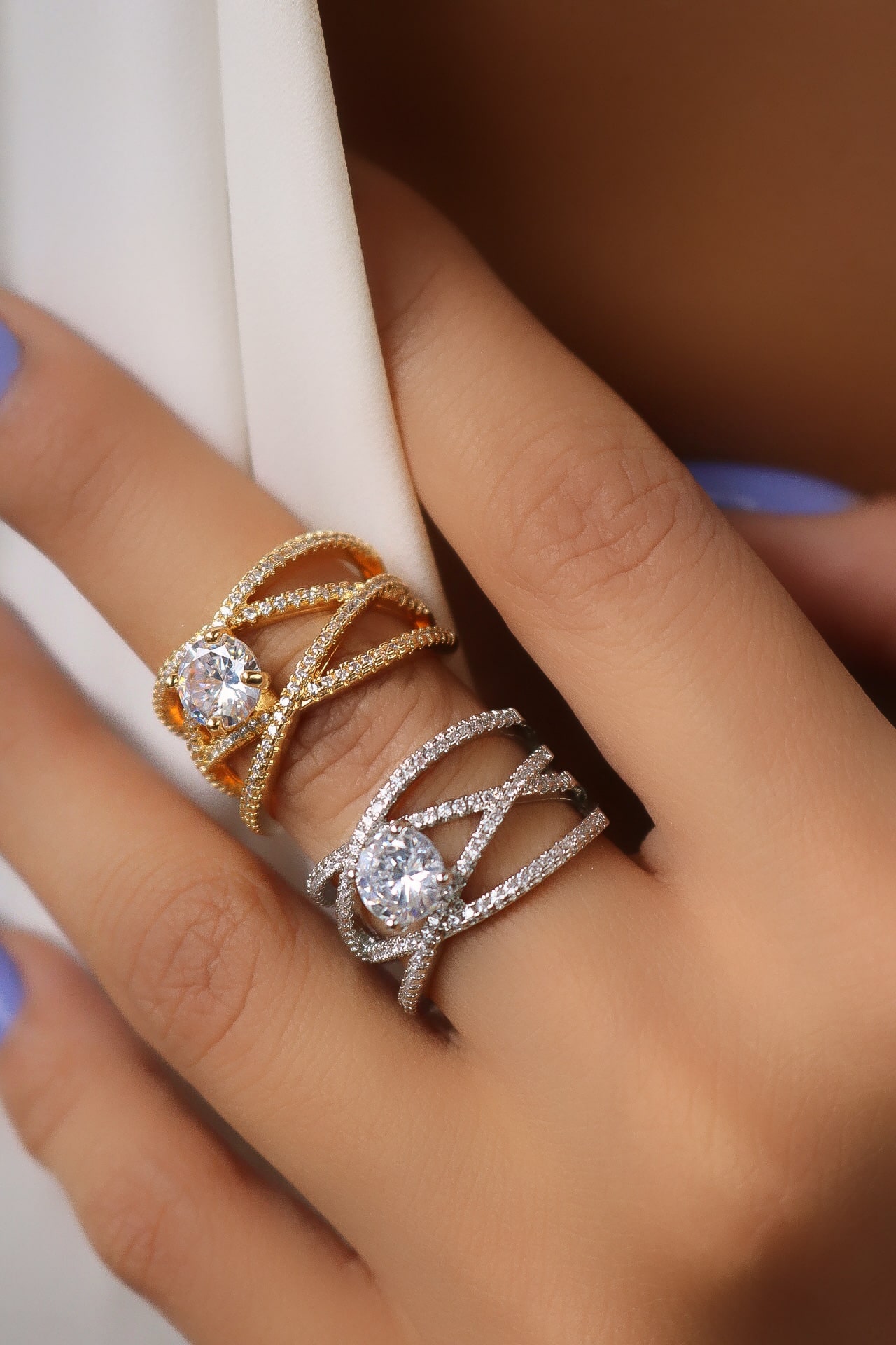 ANEL ZIRCONIA FAIXAS CRUZADAS COM PONTO DE LUZ MEDIO