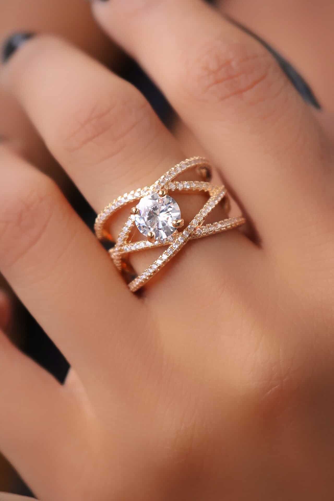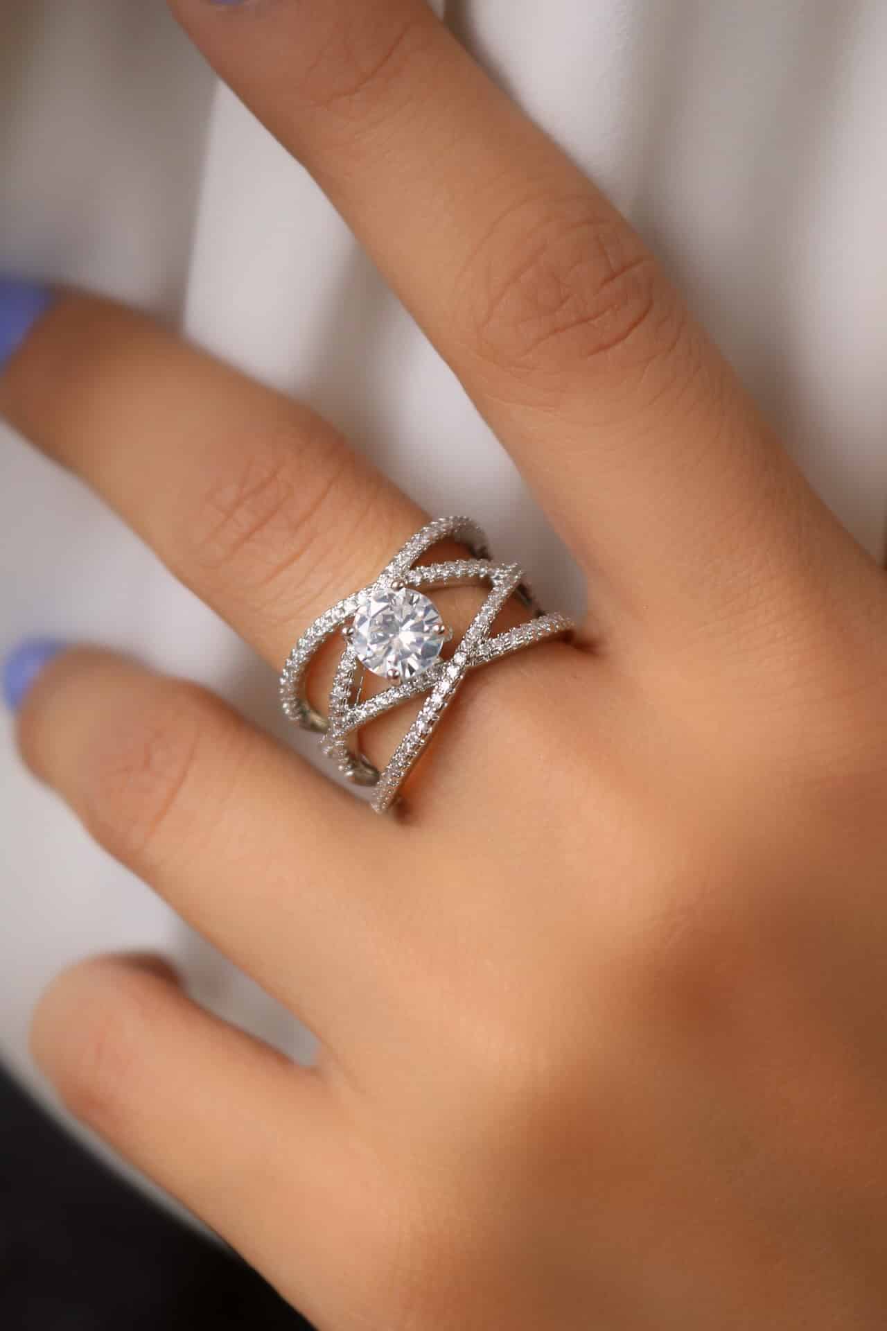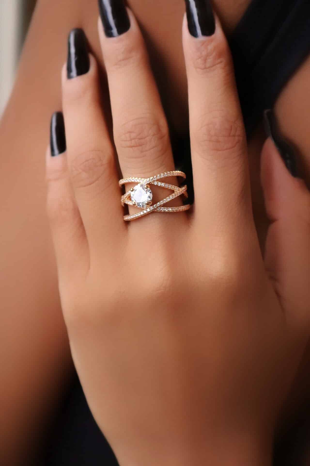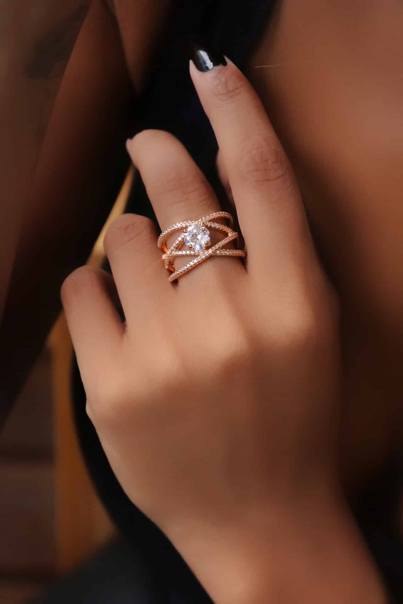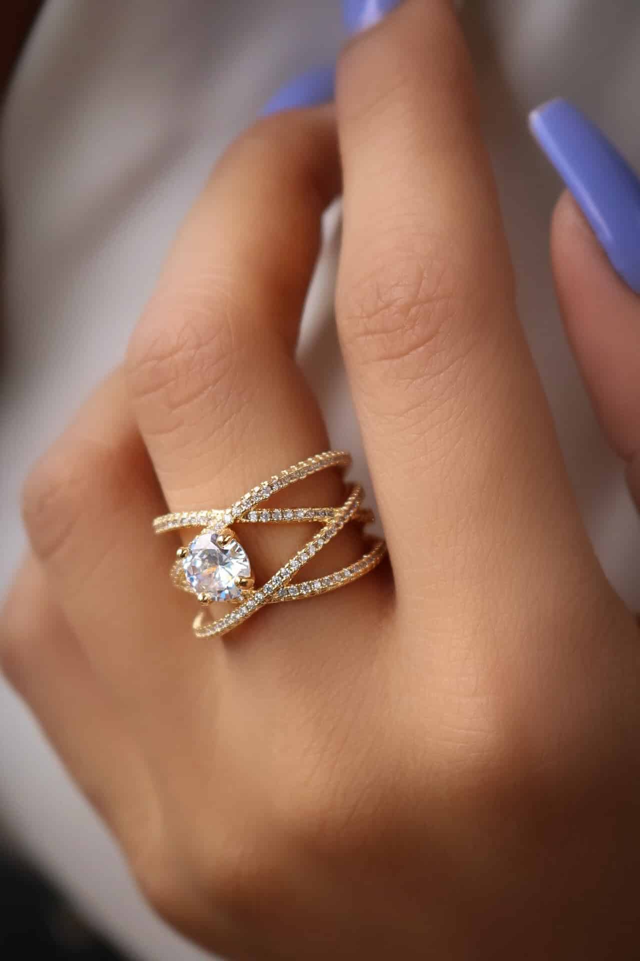 ANEL ZIRCONIA FAIXAS CRUZADAS COM PONTO DE LUZ MEDIO