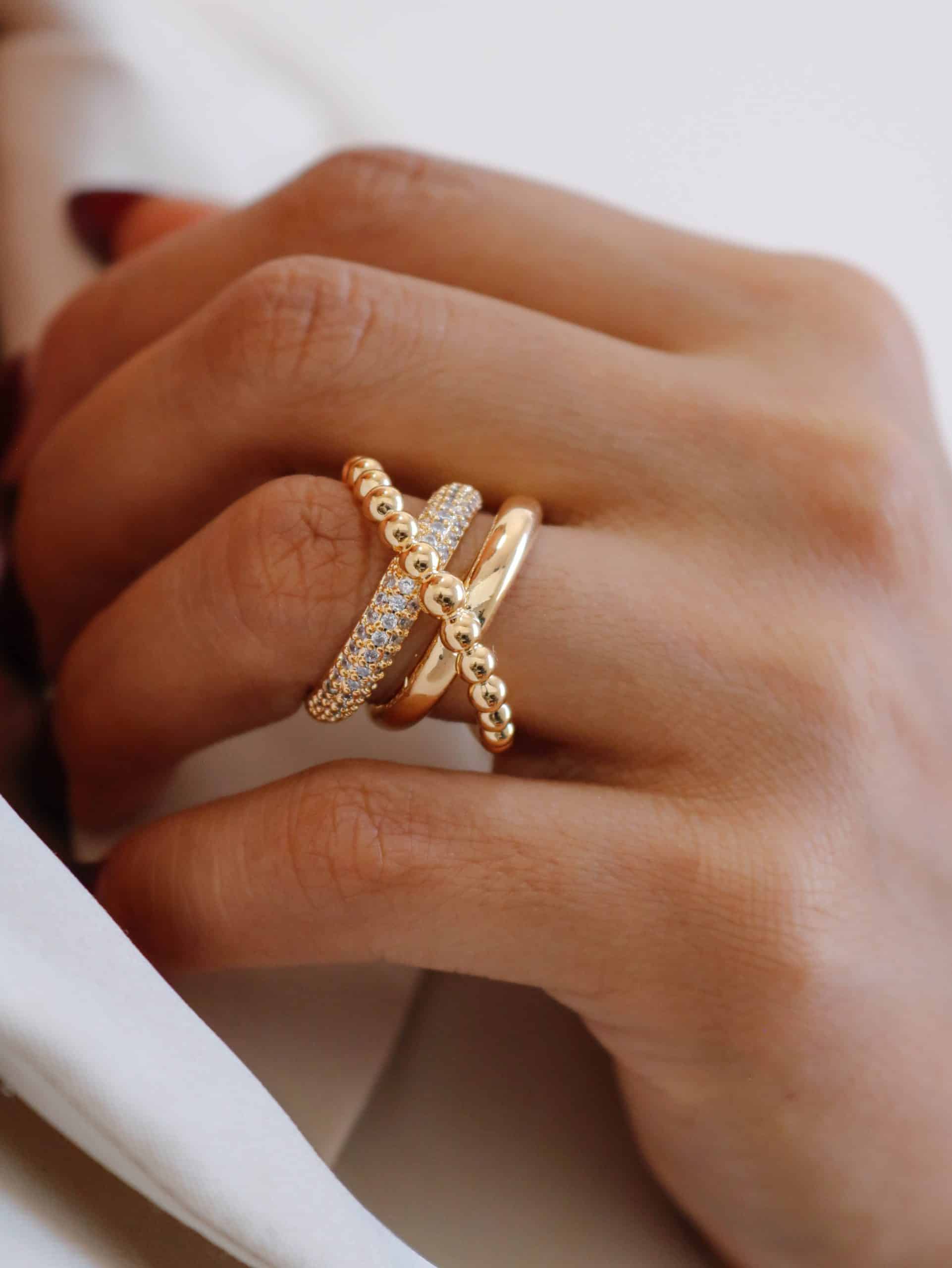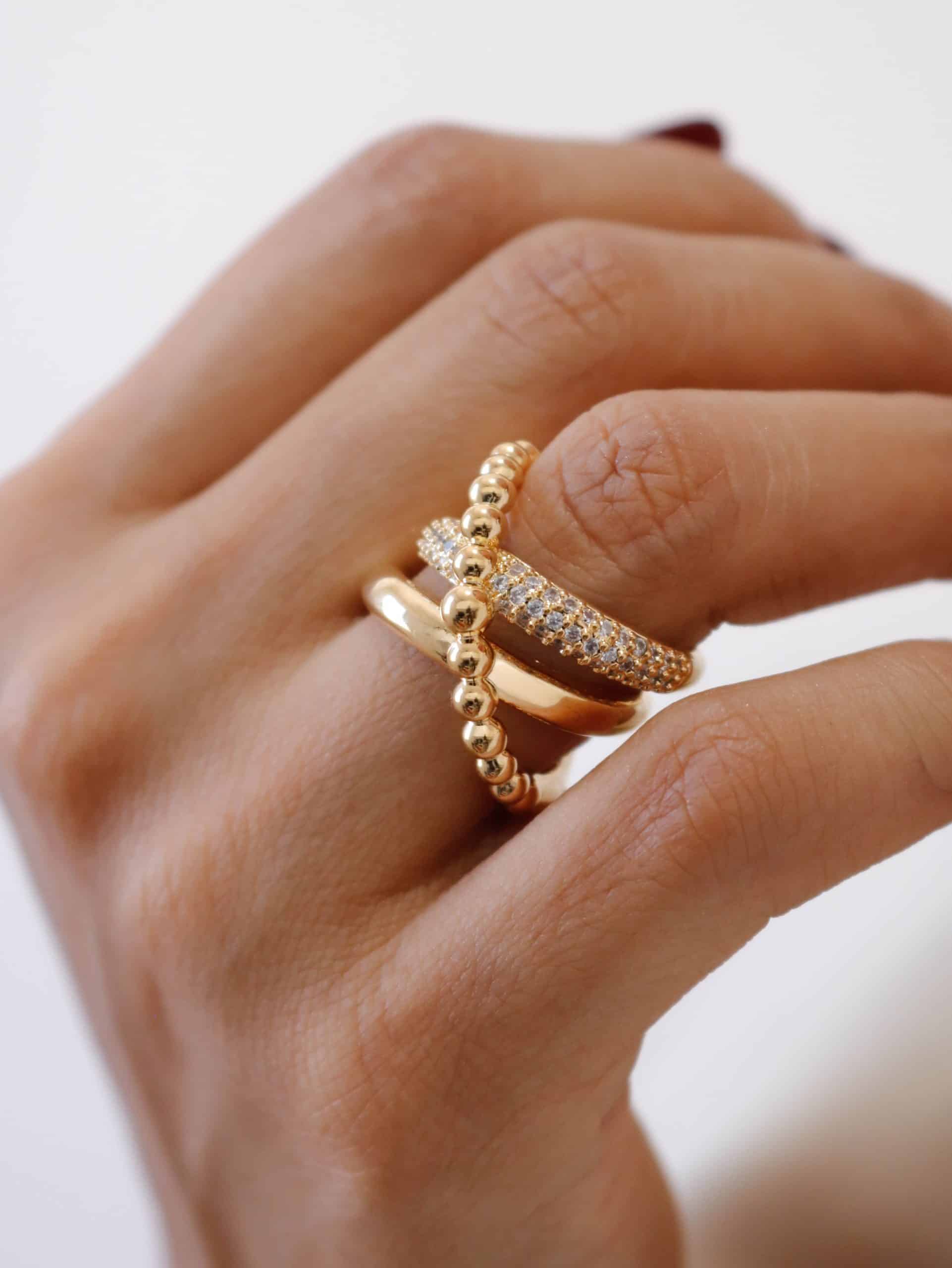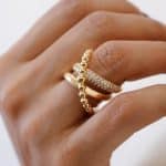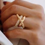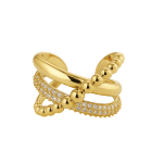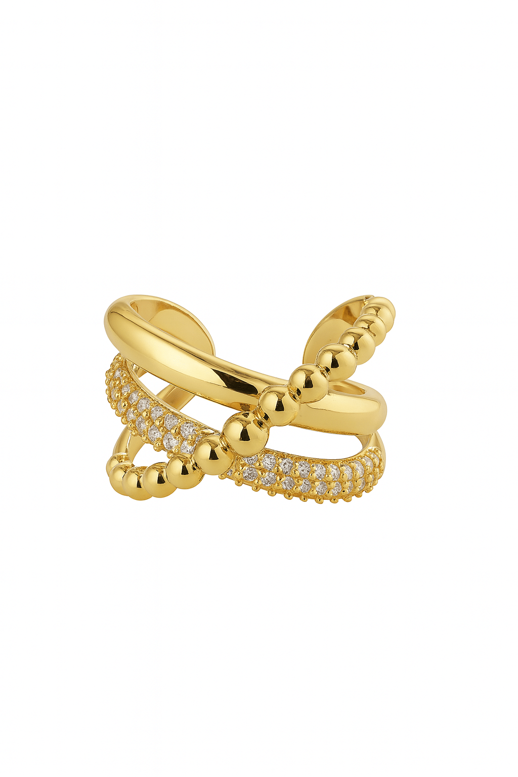 ANEL ZIRCONIA FORMATO X COM FAIXA DE BOLINHAS LISAS E CRAVEJADAS AJUSTAVEL