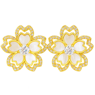 BRINCO MADRE PEROLA FLOR COM PETALAS CRAVEJADAS