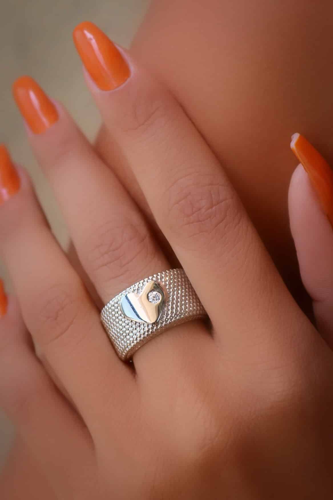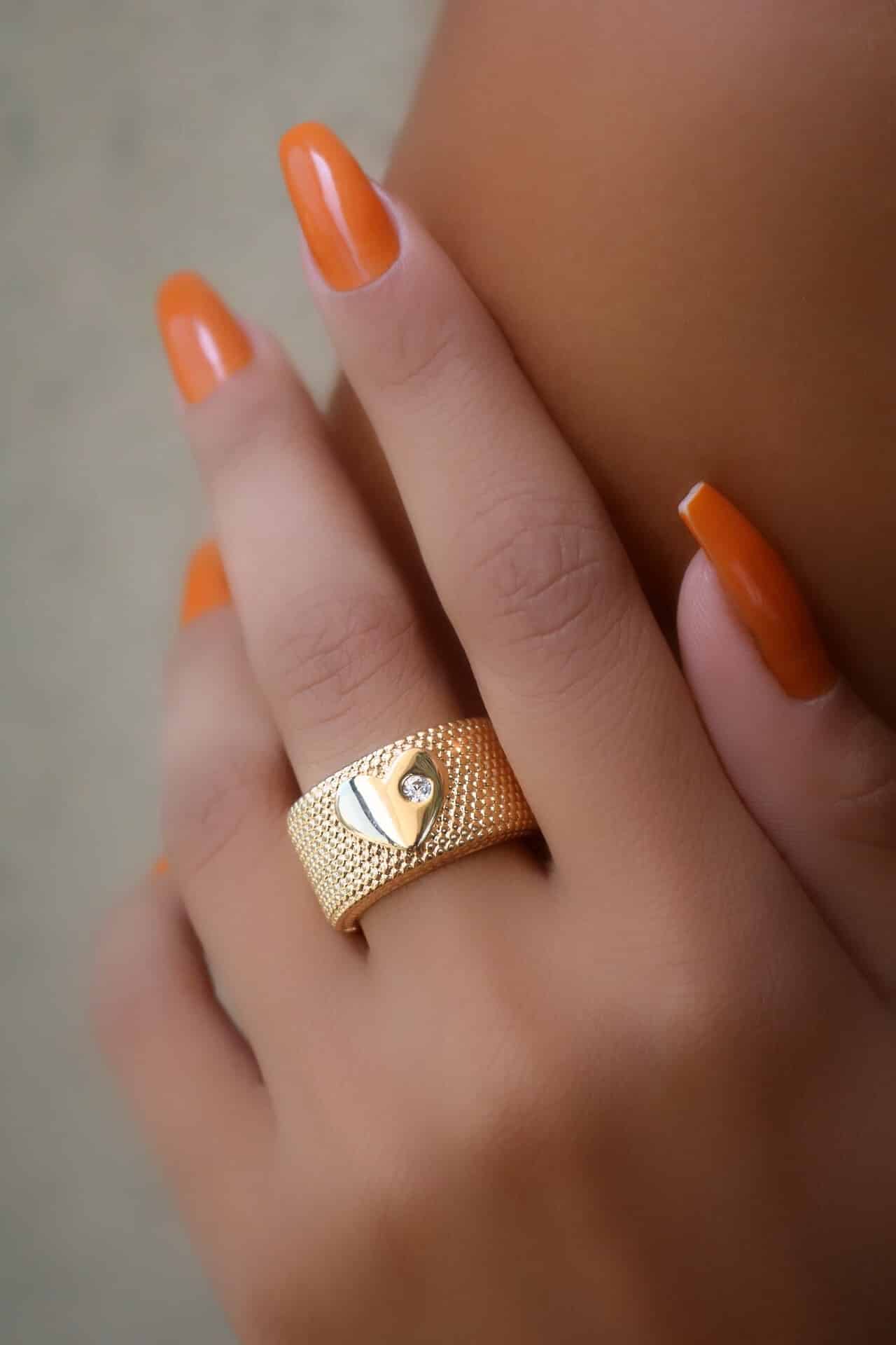 ANEL ZIRCONIA GROSSO COM CORACAO LISO NO MEIO COM UMA ZIRC