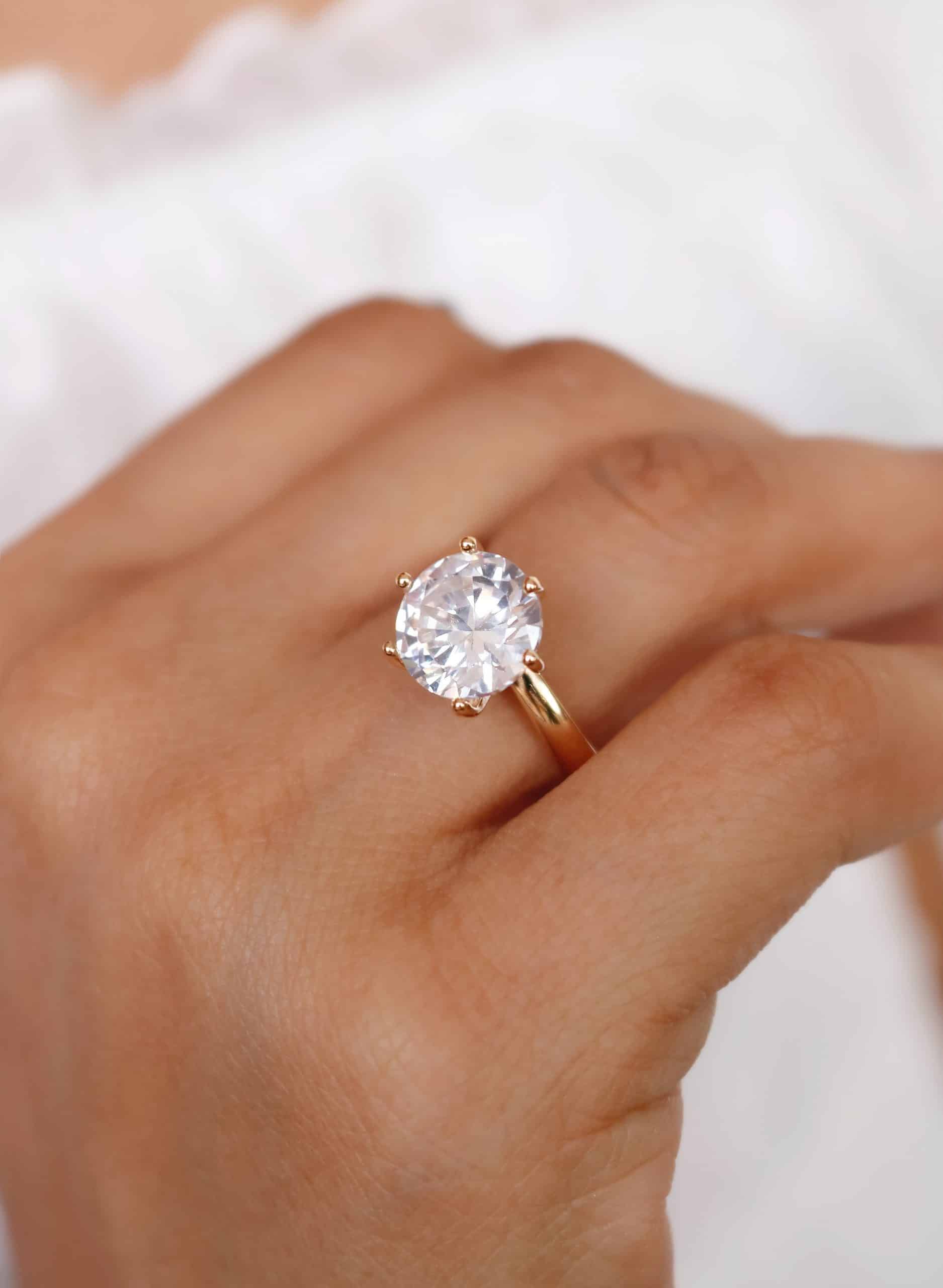 ANEL ZIRCONIA SOLITARIO COM A PEDRA REDONDA COM QUATRO GARRAS QUADRADAS