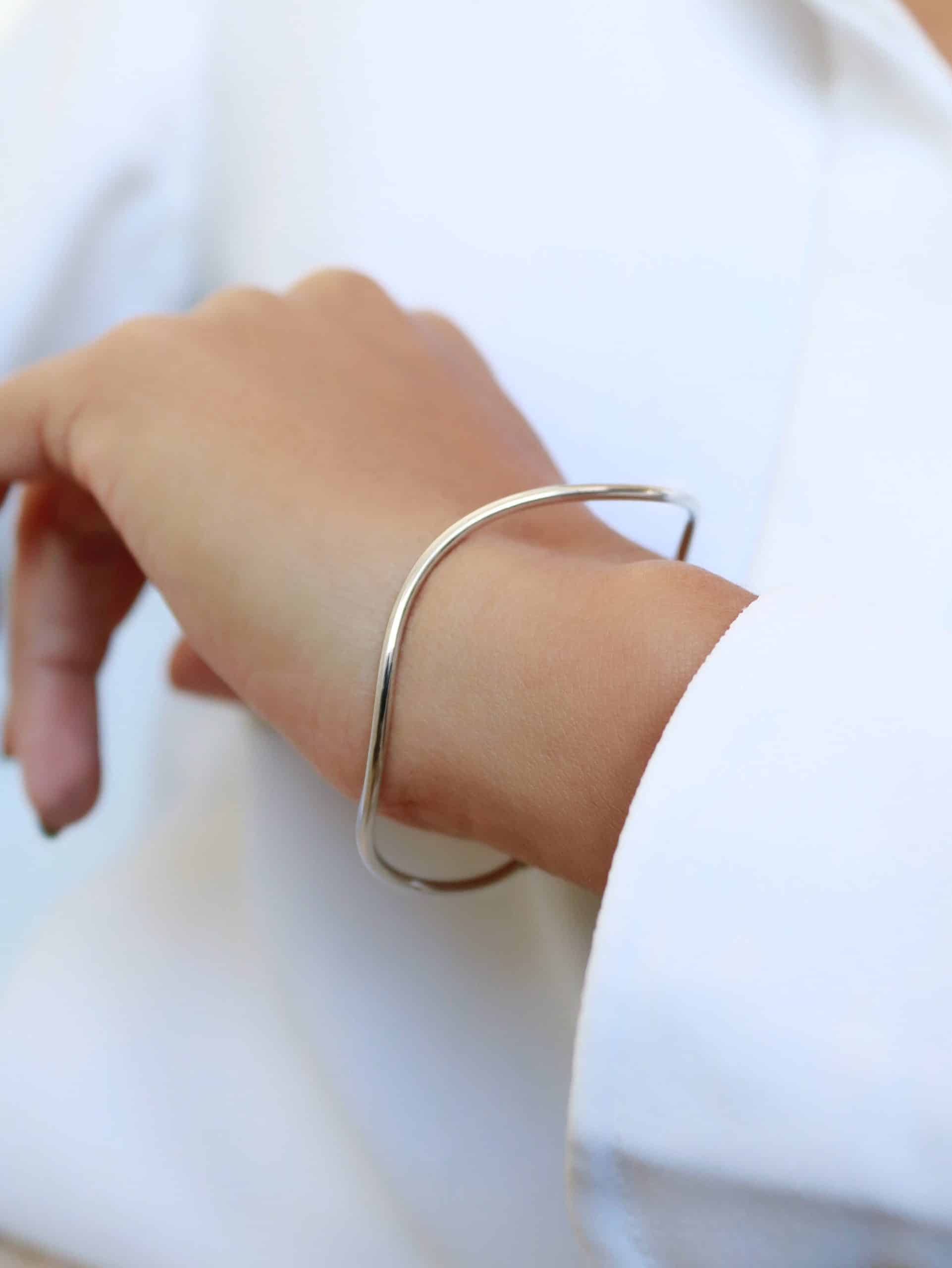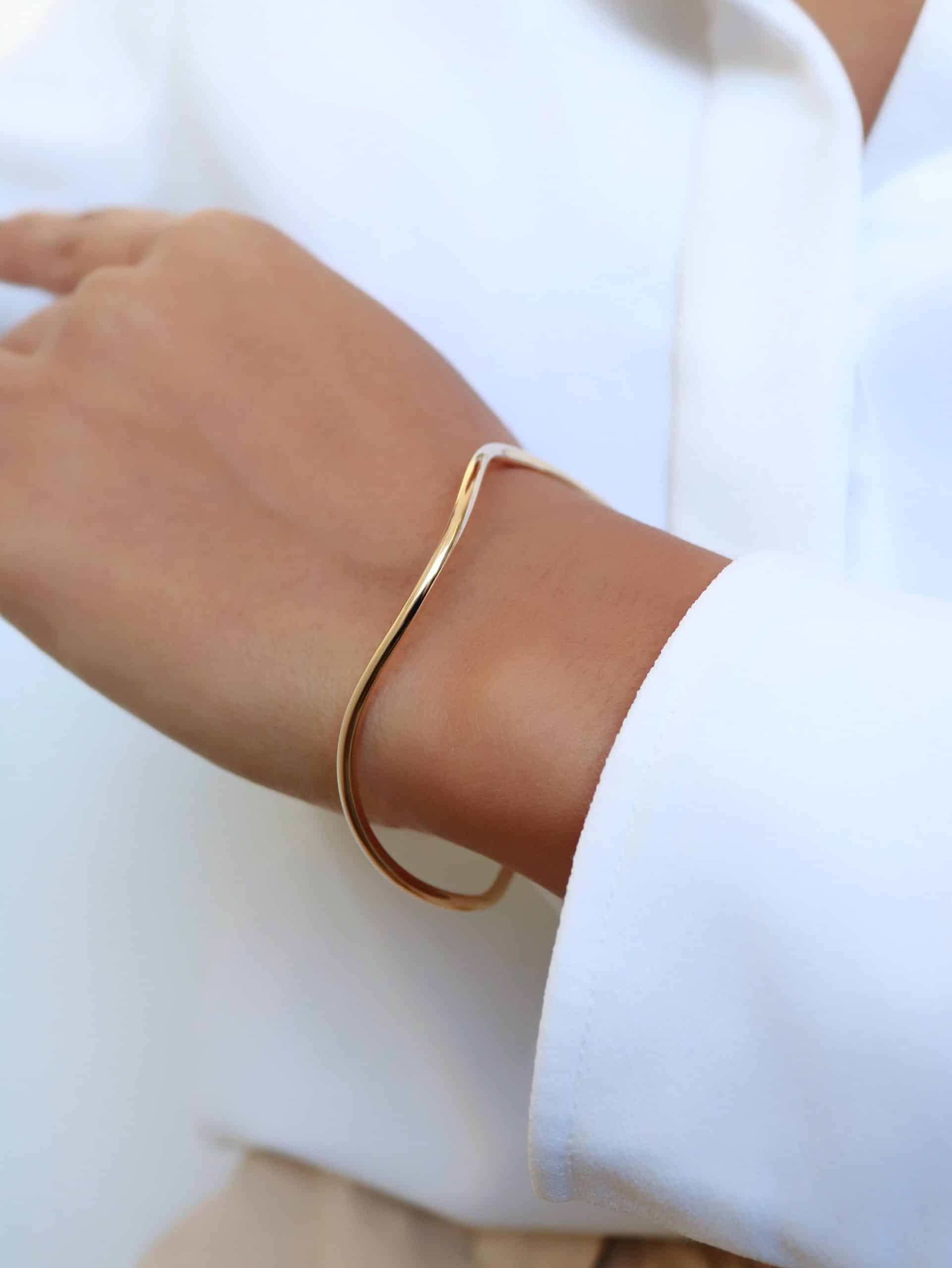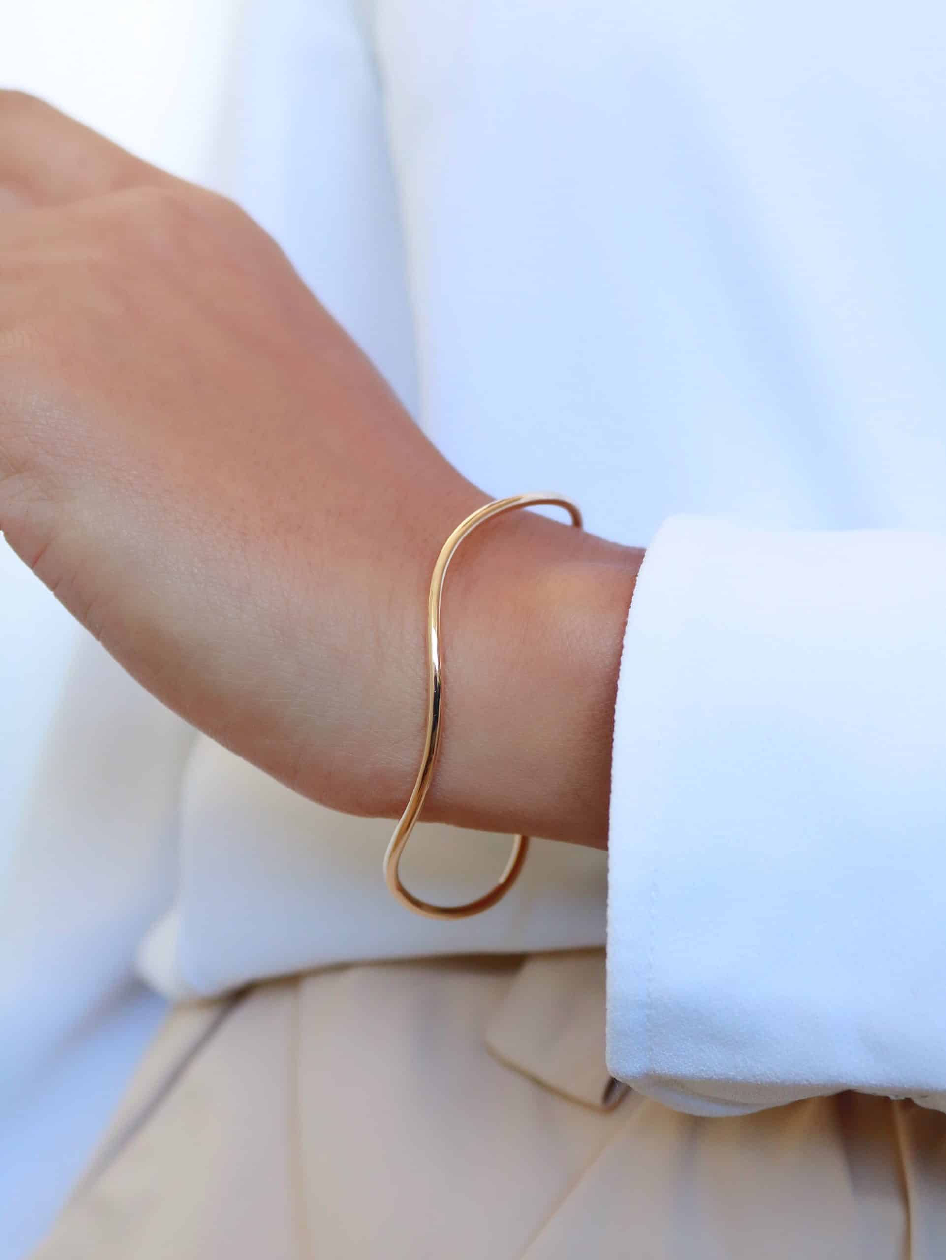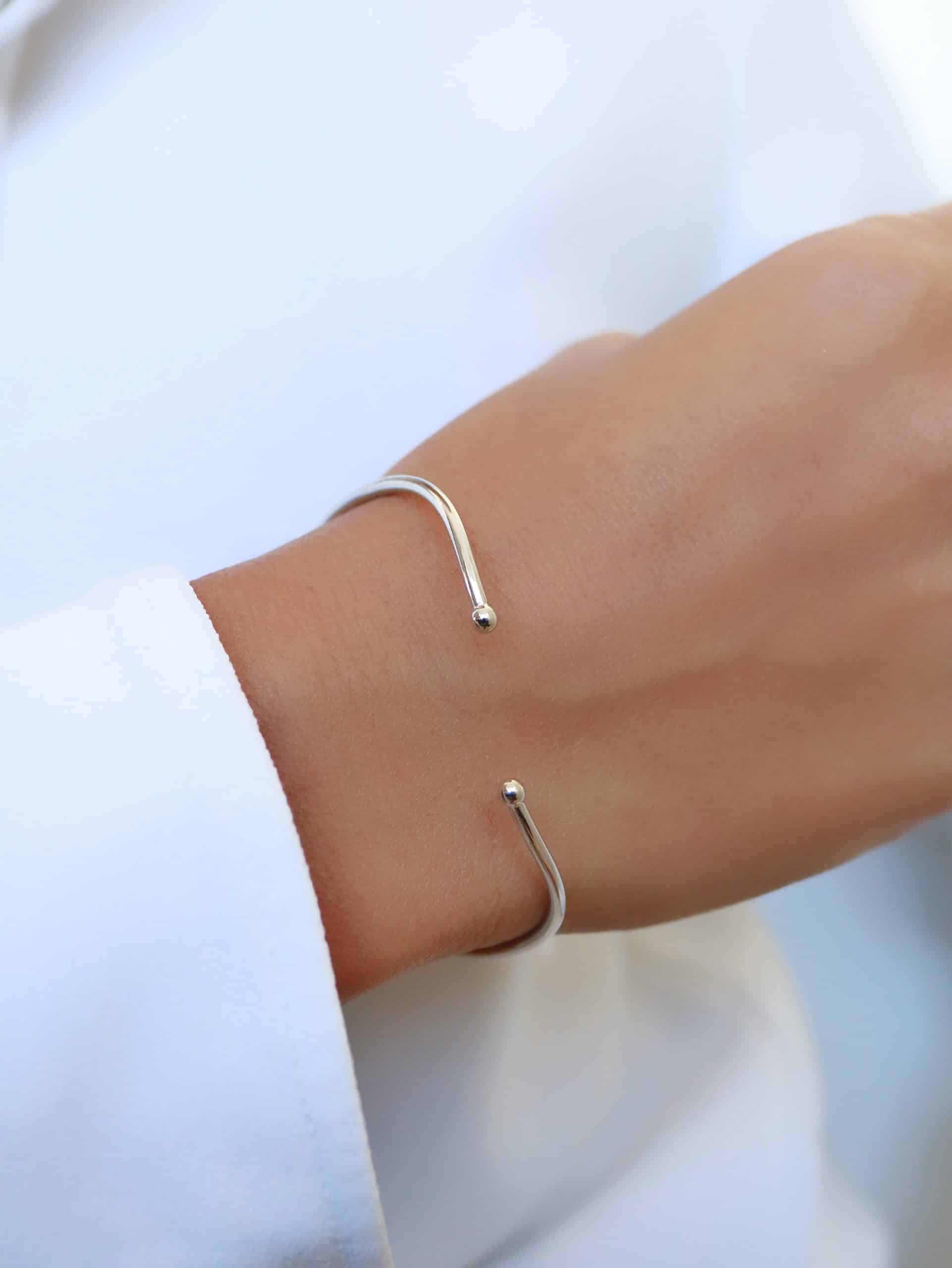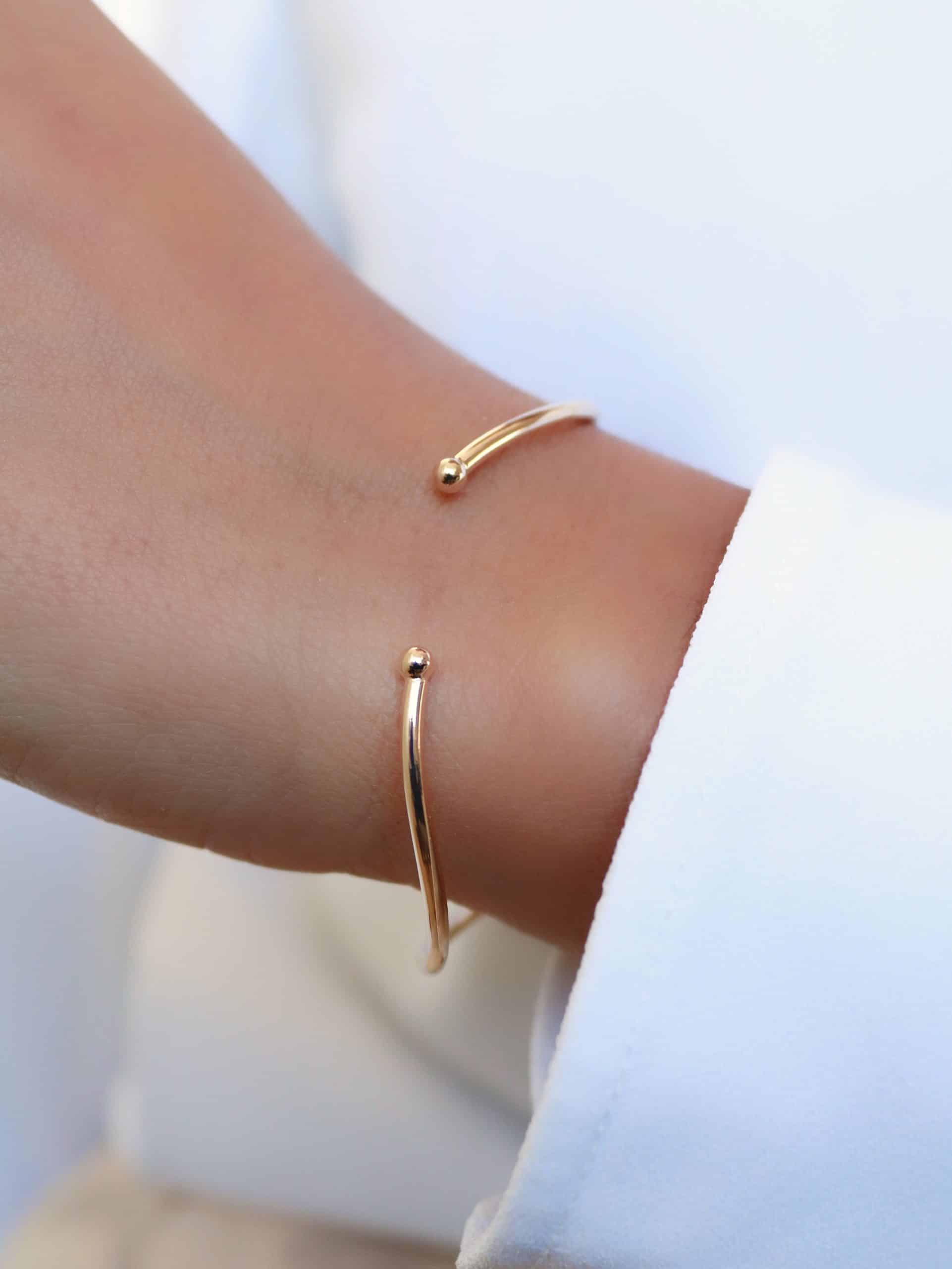 BRACELETE LISO ONDULADO ABERTO COM BOLINHA MAIOR NAS PONTAS 0.1 MM
