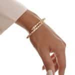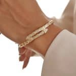 BRACELETE LISO METADE ARO E MATADE ELO COM LUA SOL E ESTRELA PENDURADOS