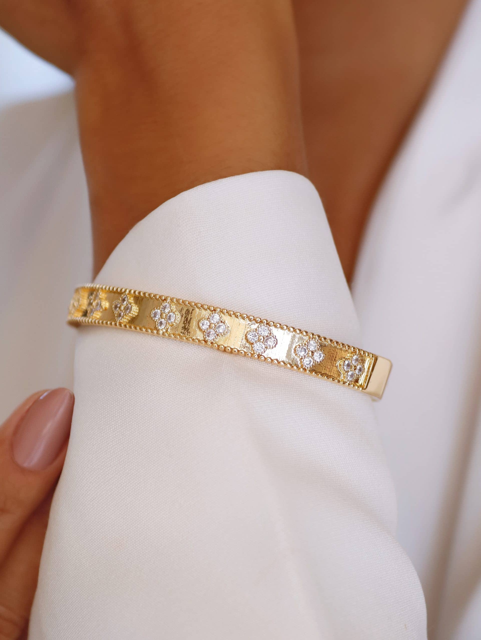 BRACELETE ZIRCONIA COM NOVE FLORES CRAVEJADAS PEQUENAS 7.5 MM