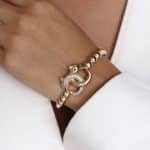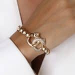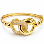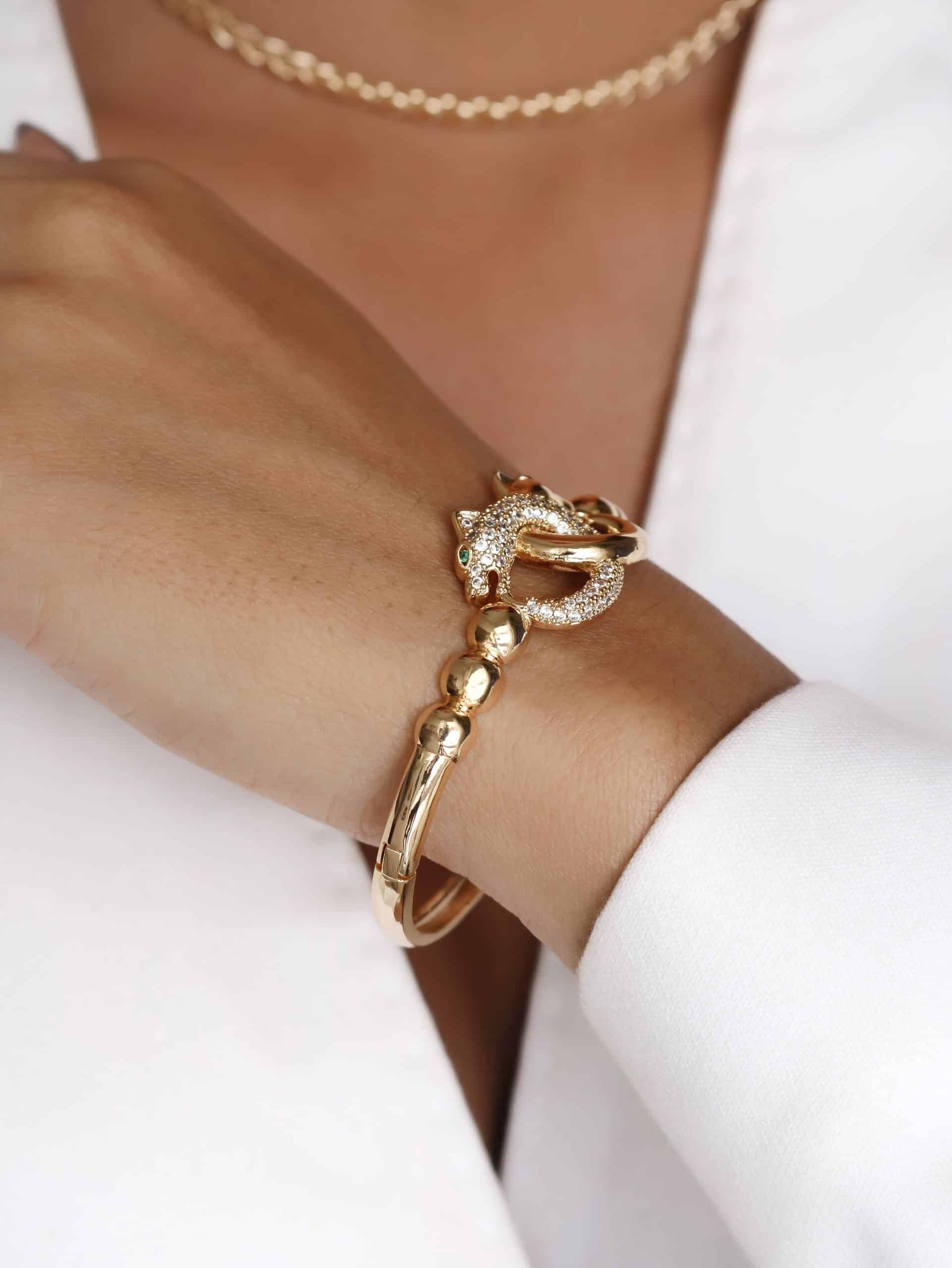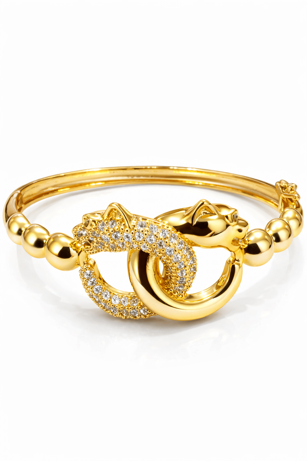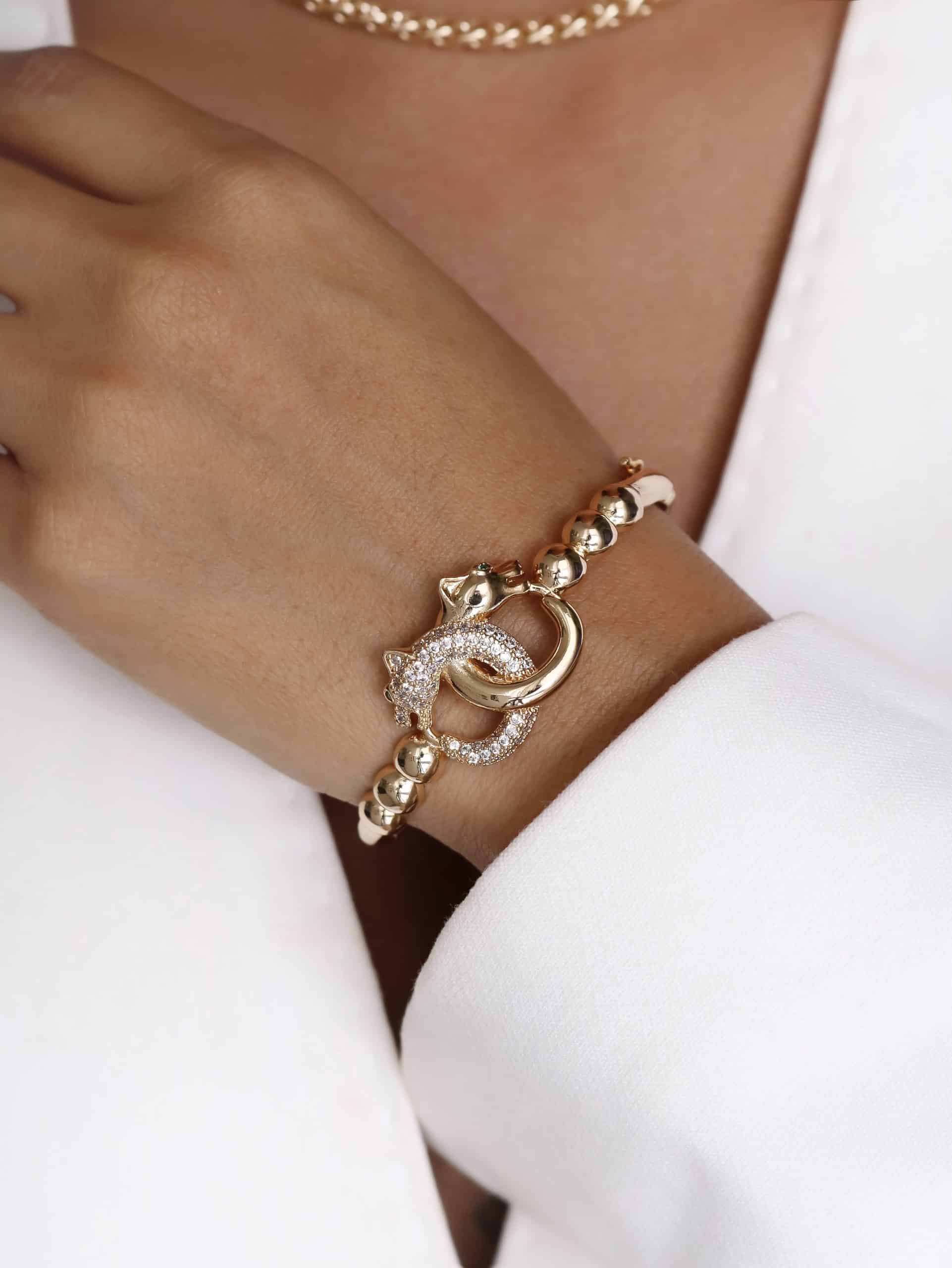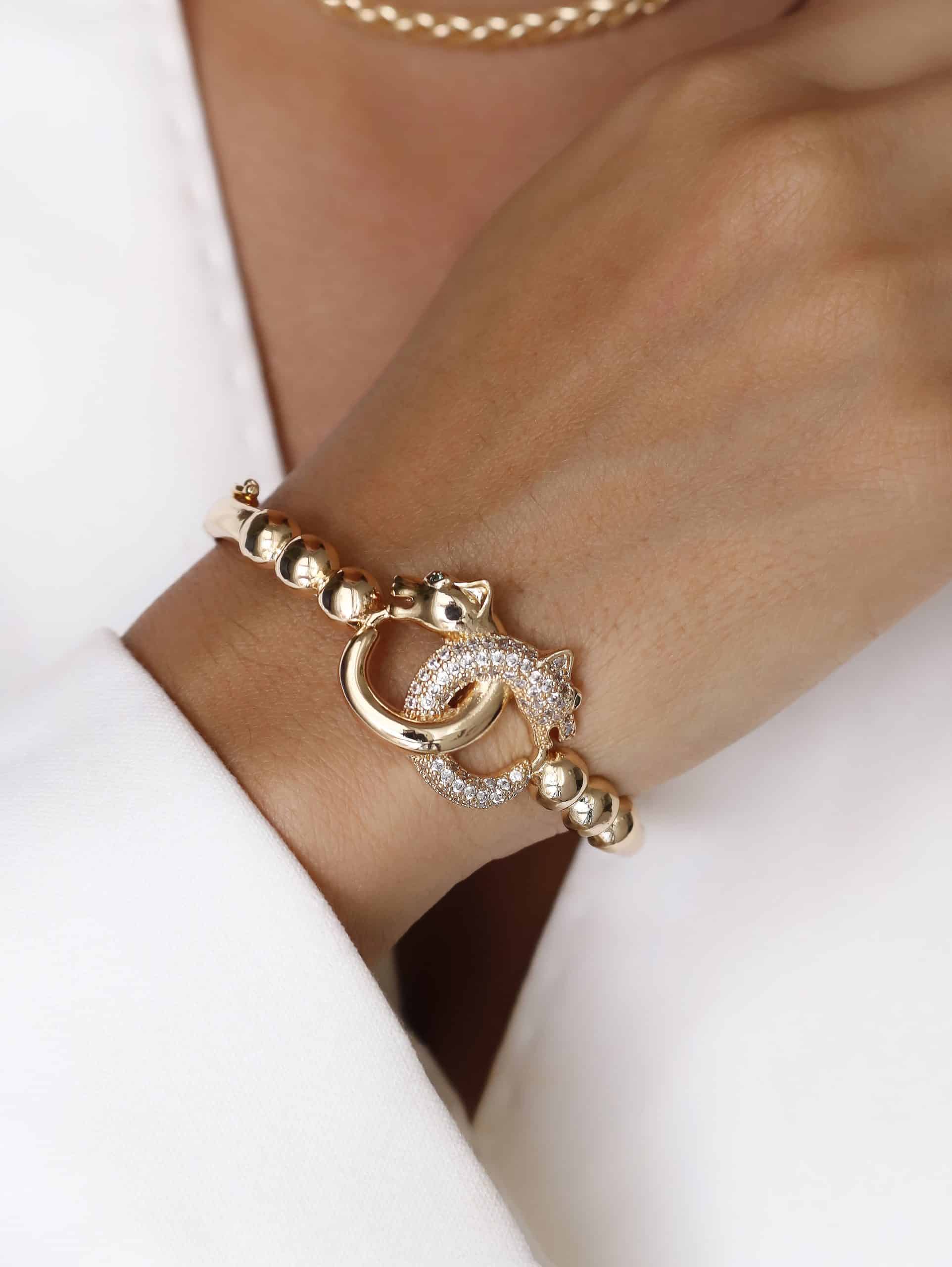 BRACELETE ZIRCONIA DUAS PANTERAS SENDO UMA CRAVEJADA E BOLAS LISAS