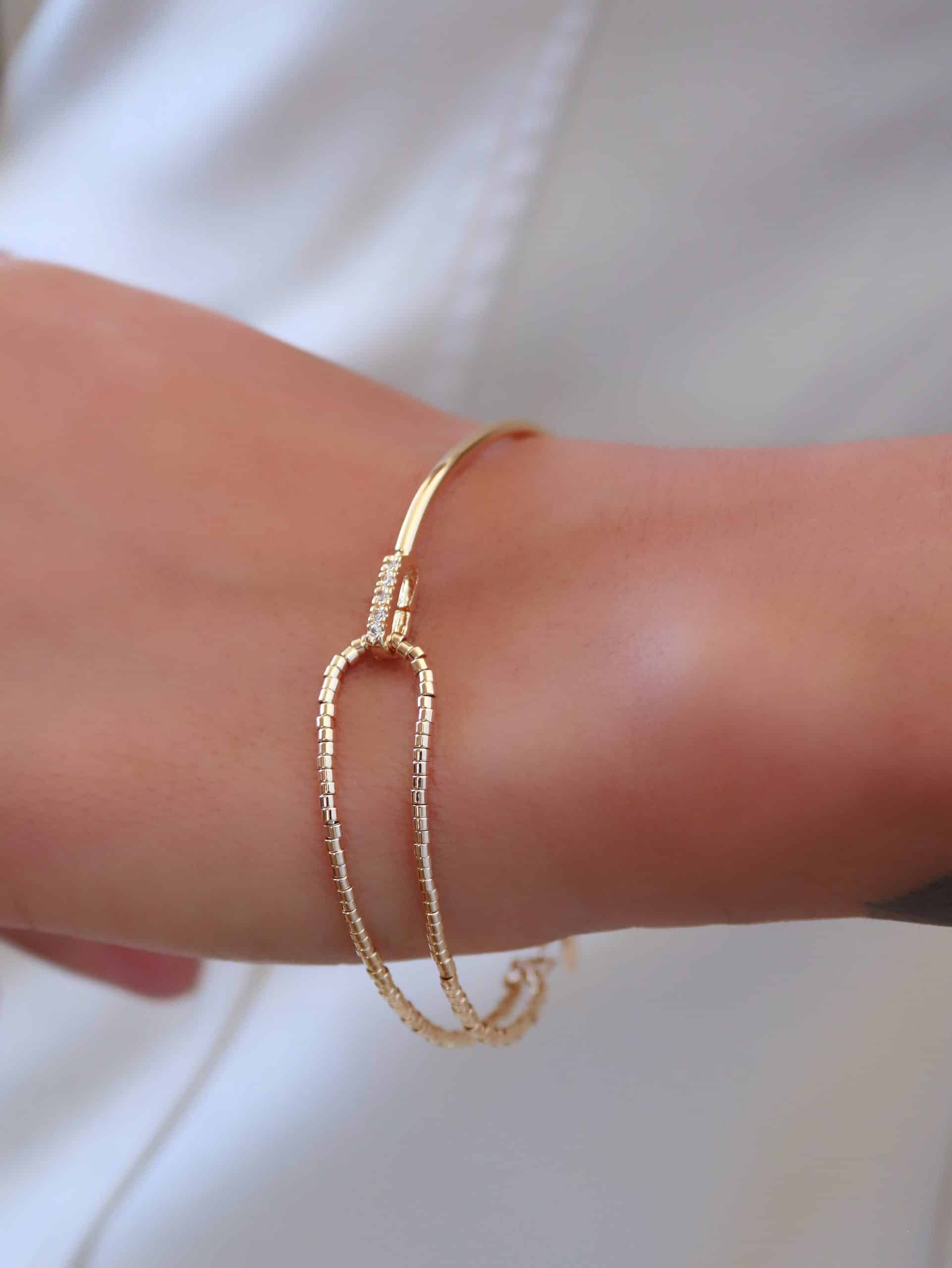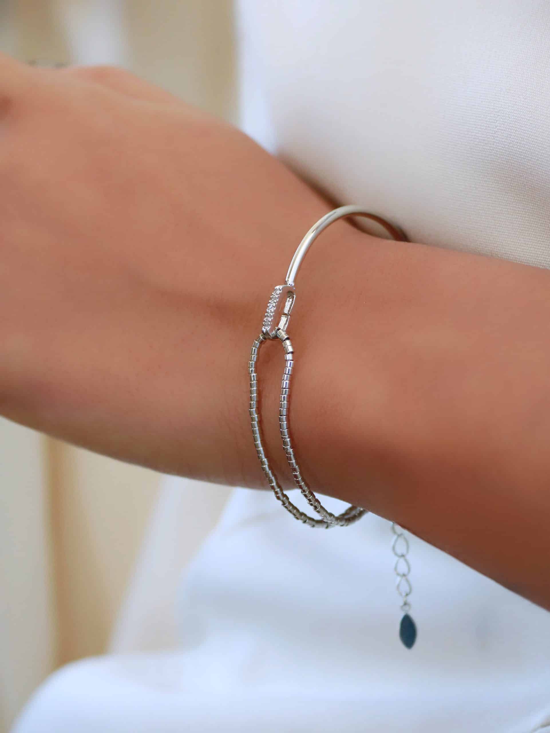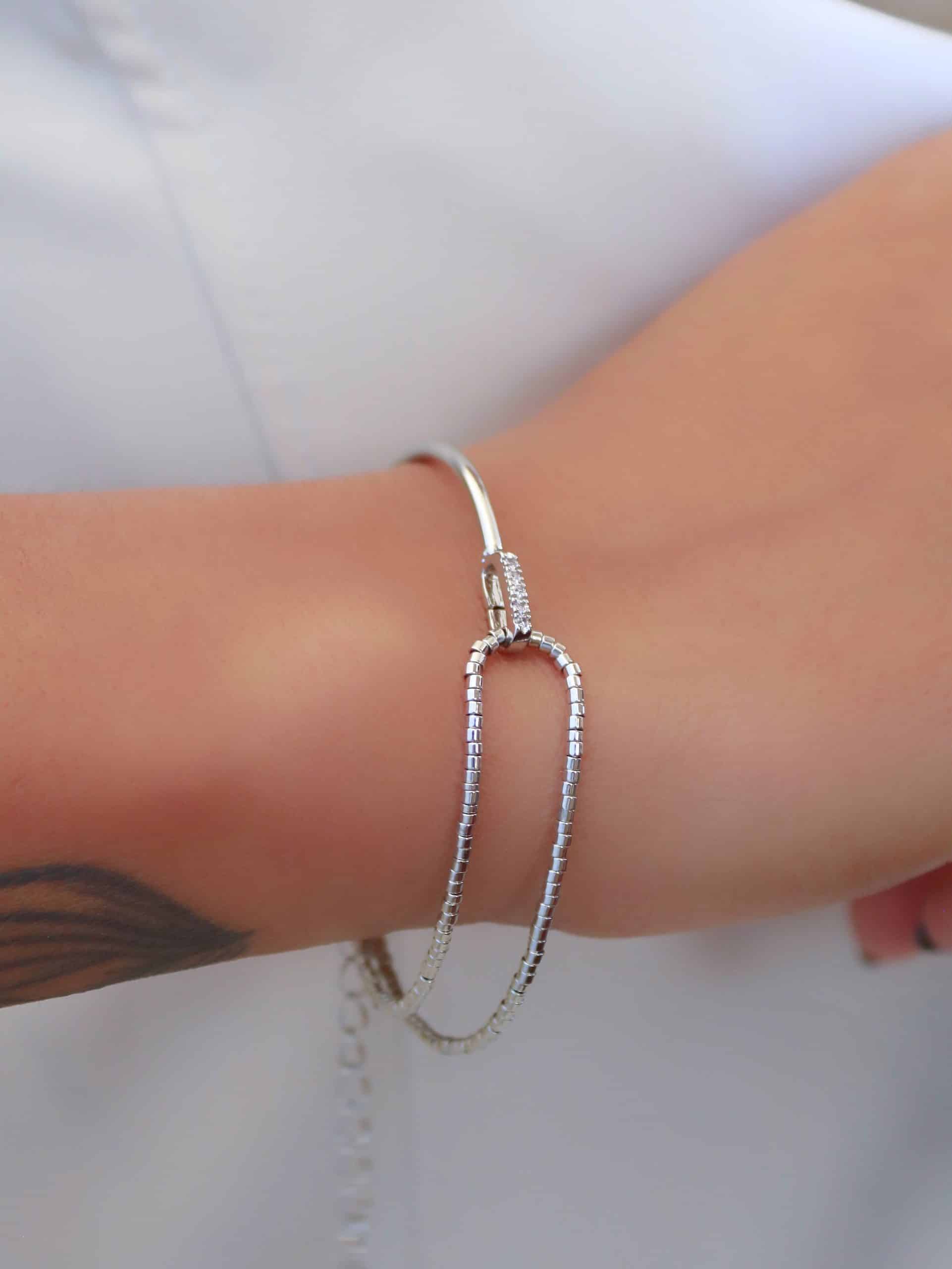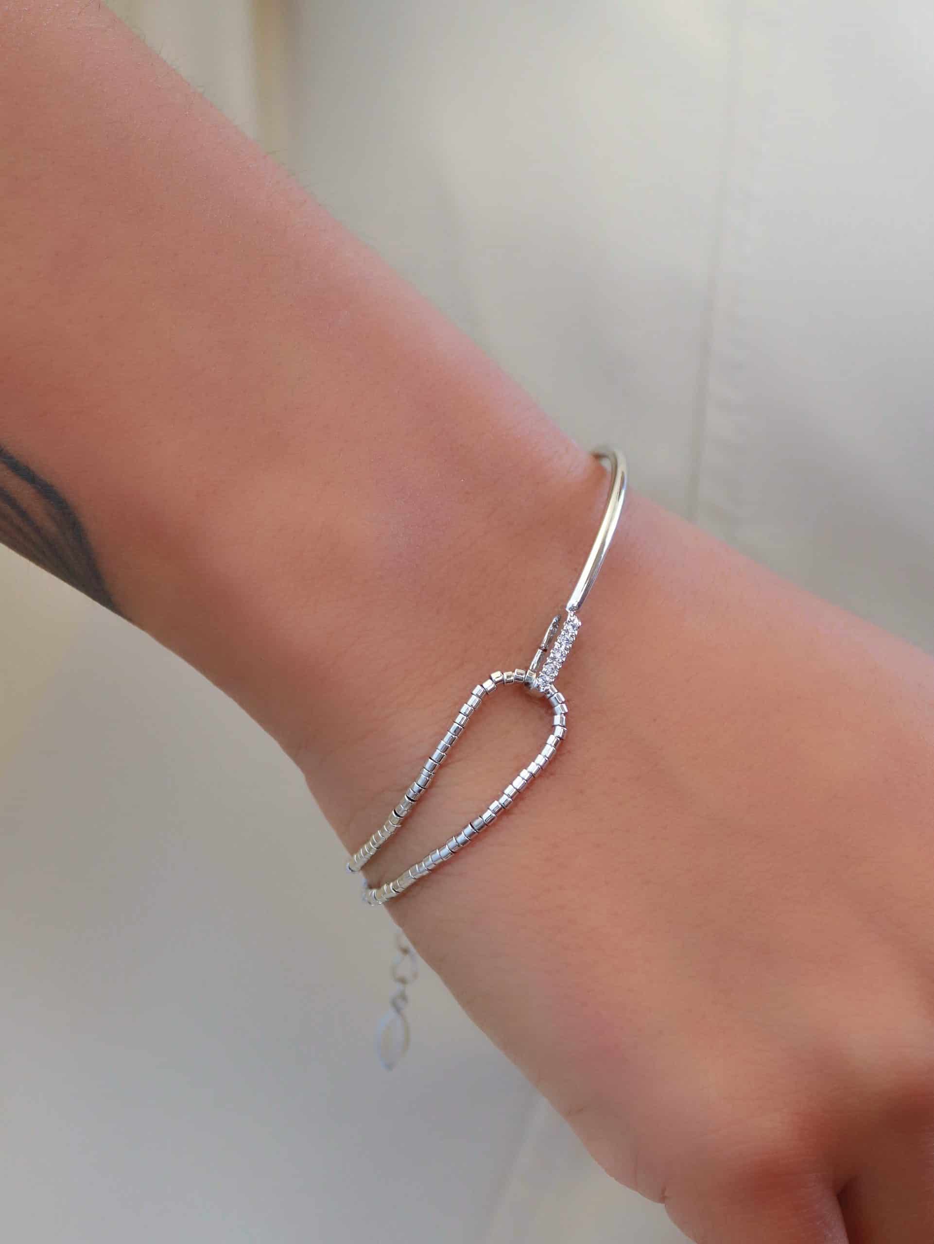 BRACELETE ZIRCONIA COM SIMBOLO V LISO E CRAVEJADO 4.0 MM