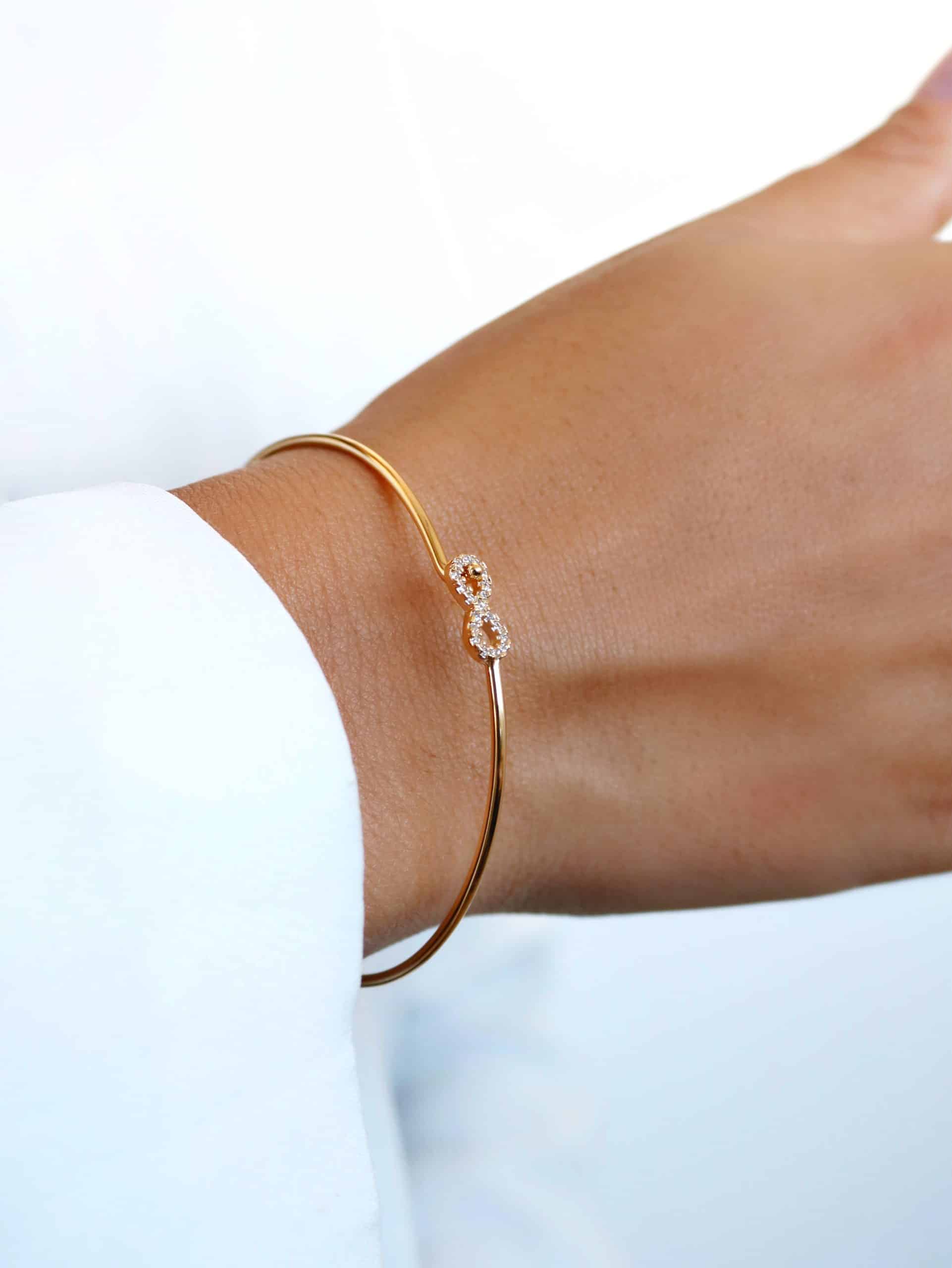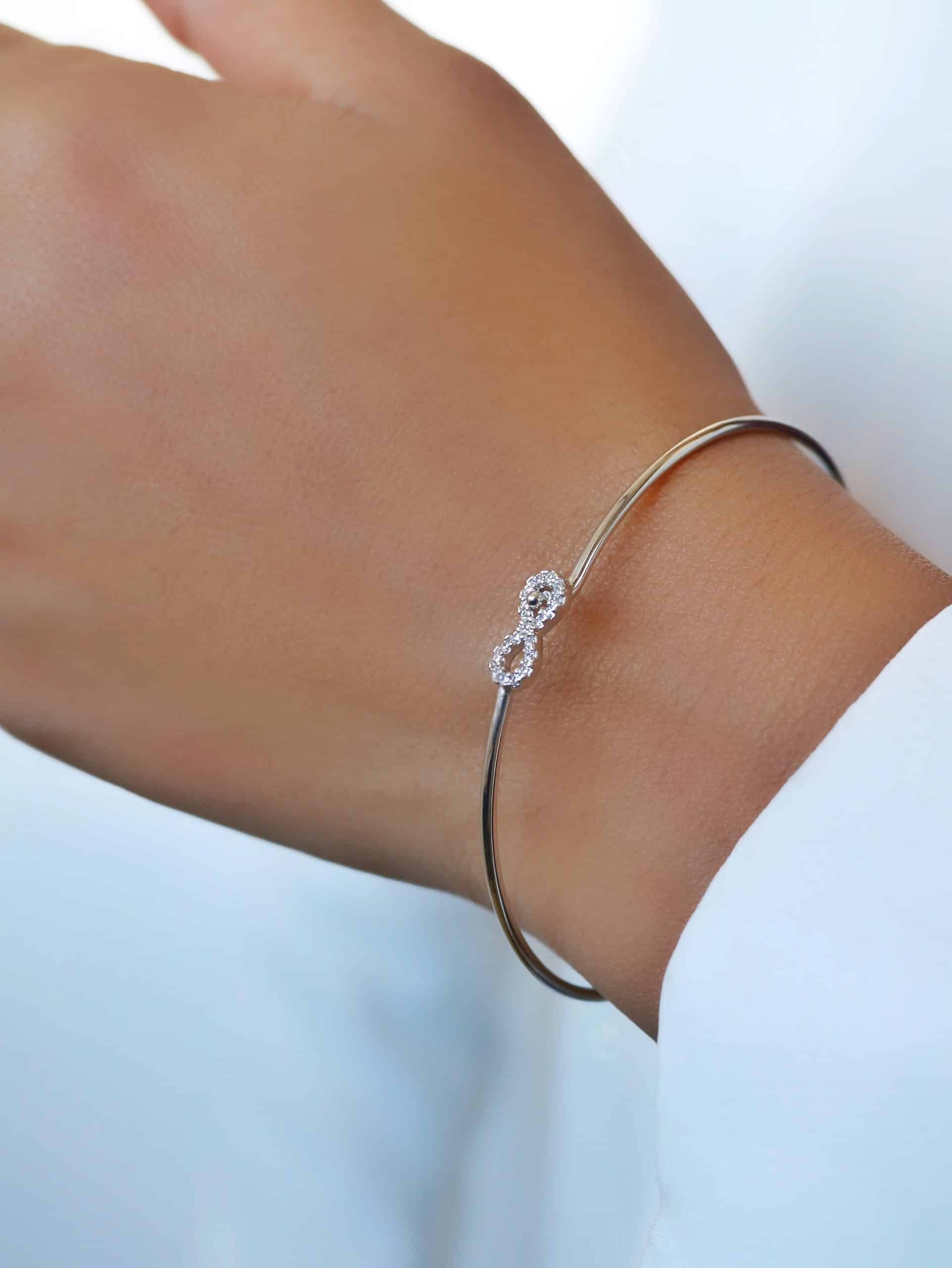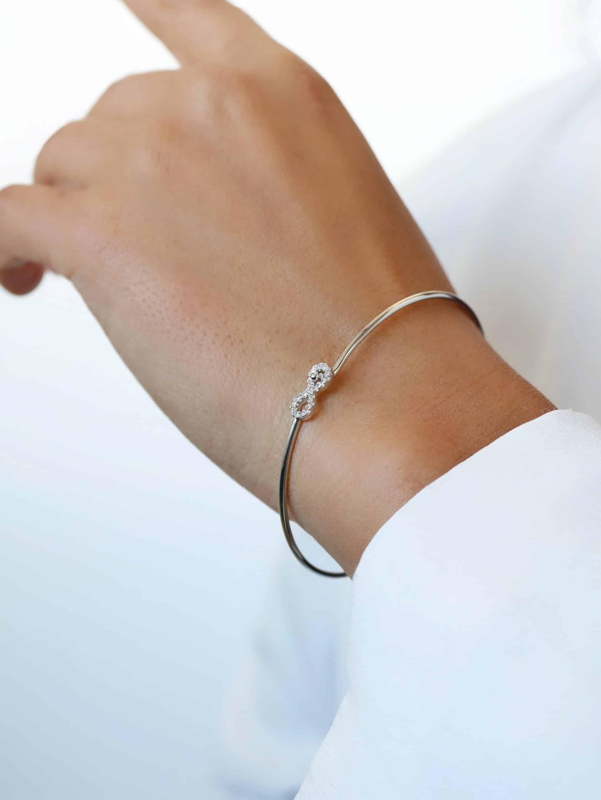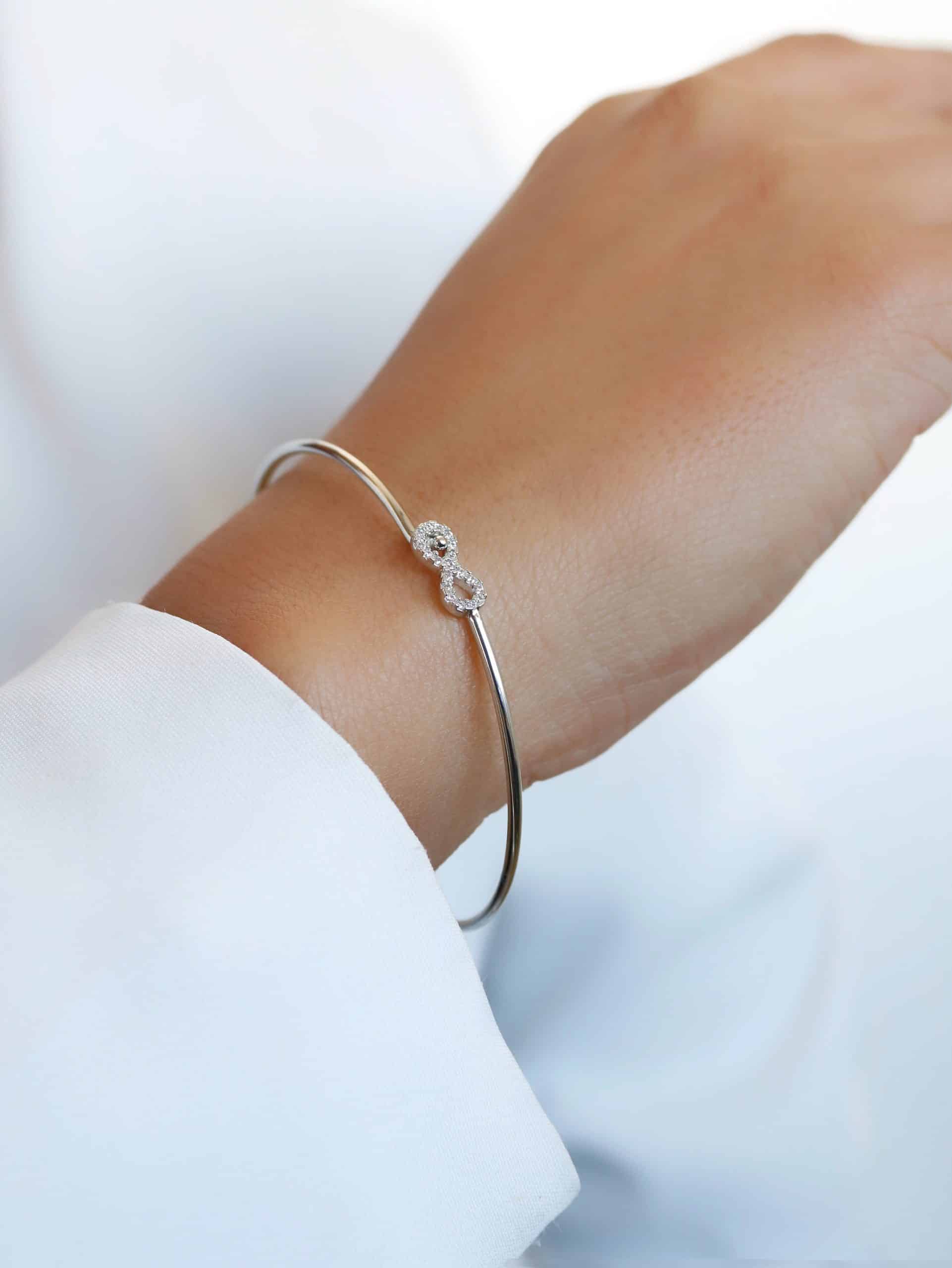 BRACELETE ZIRCONIA COM CINCO ELOS FORMATO OVAL CRAVEJADOS E O ARO LISO 8.4 MM