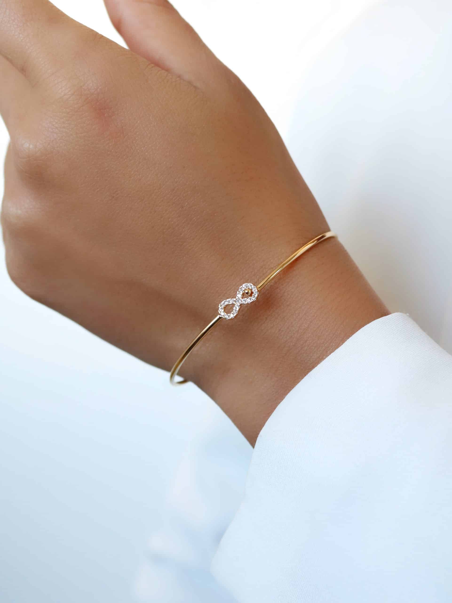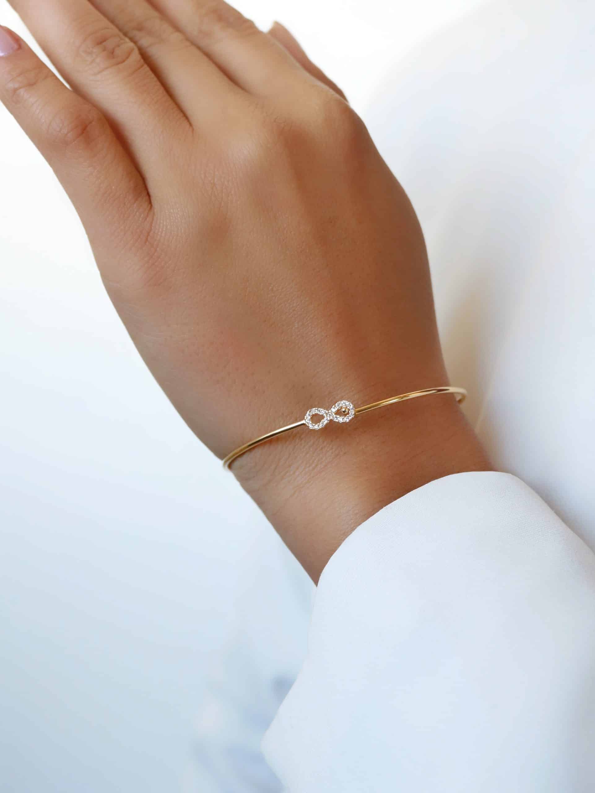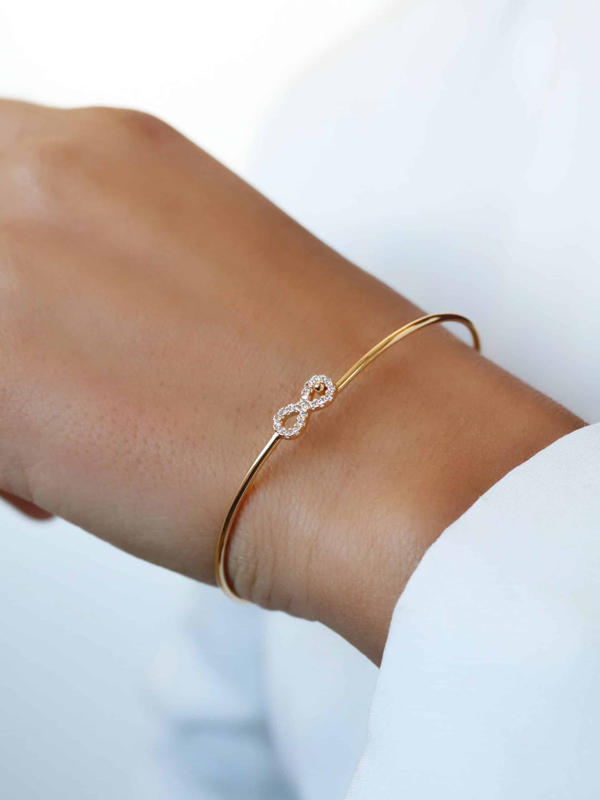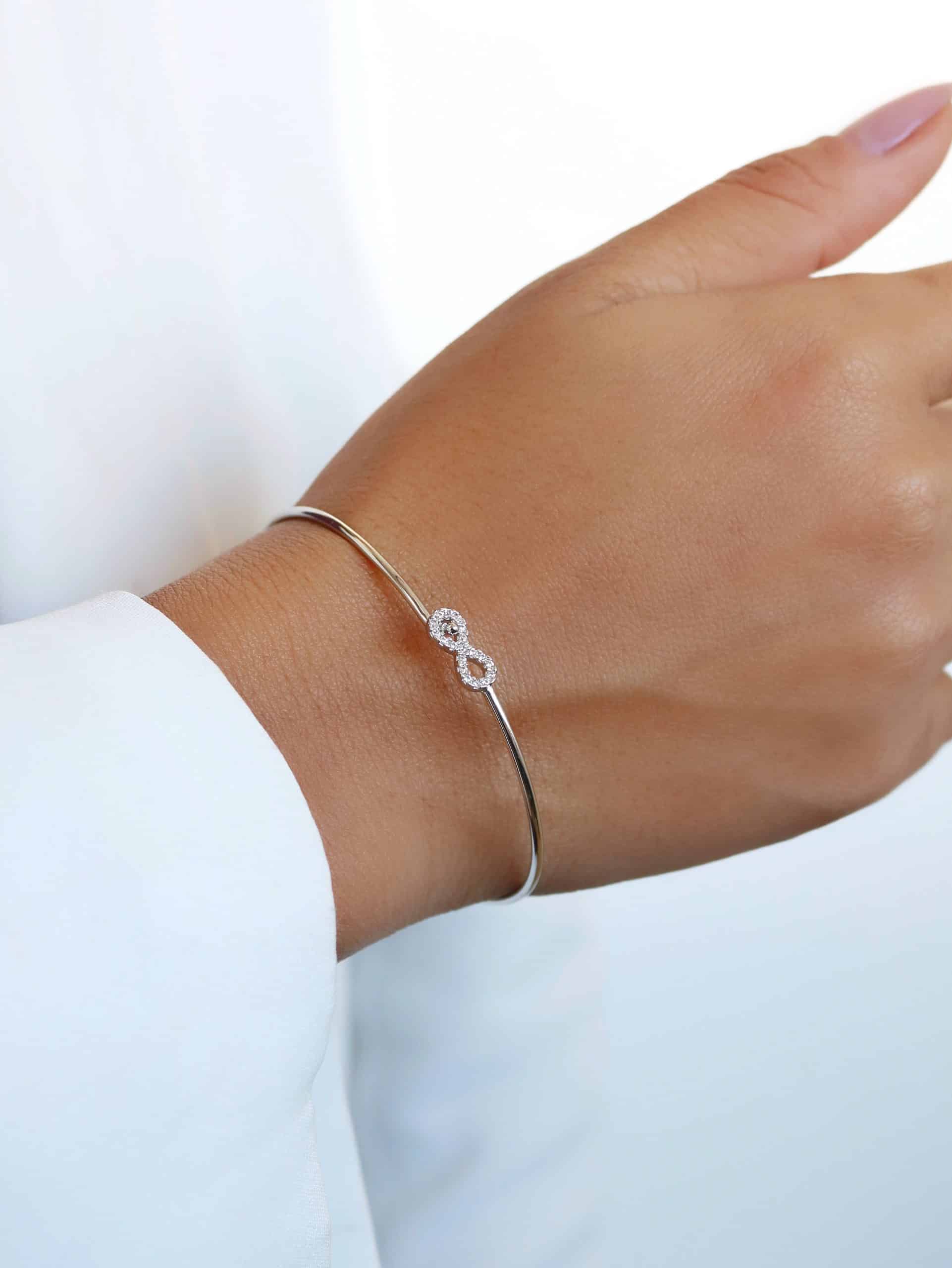 BRACELETE ZIRCONIA COM CINCO ELOS FORMATO OVAL CRAVEJADOS E O ARO LISO 8.4 MM