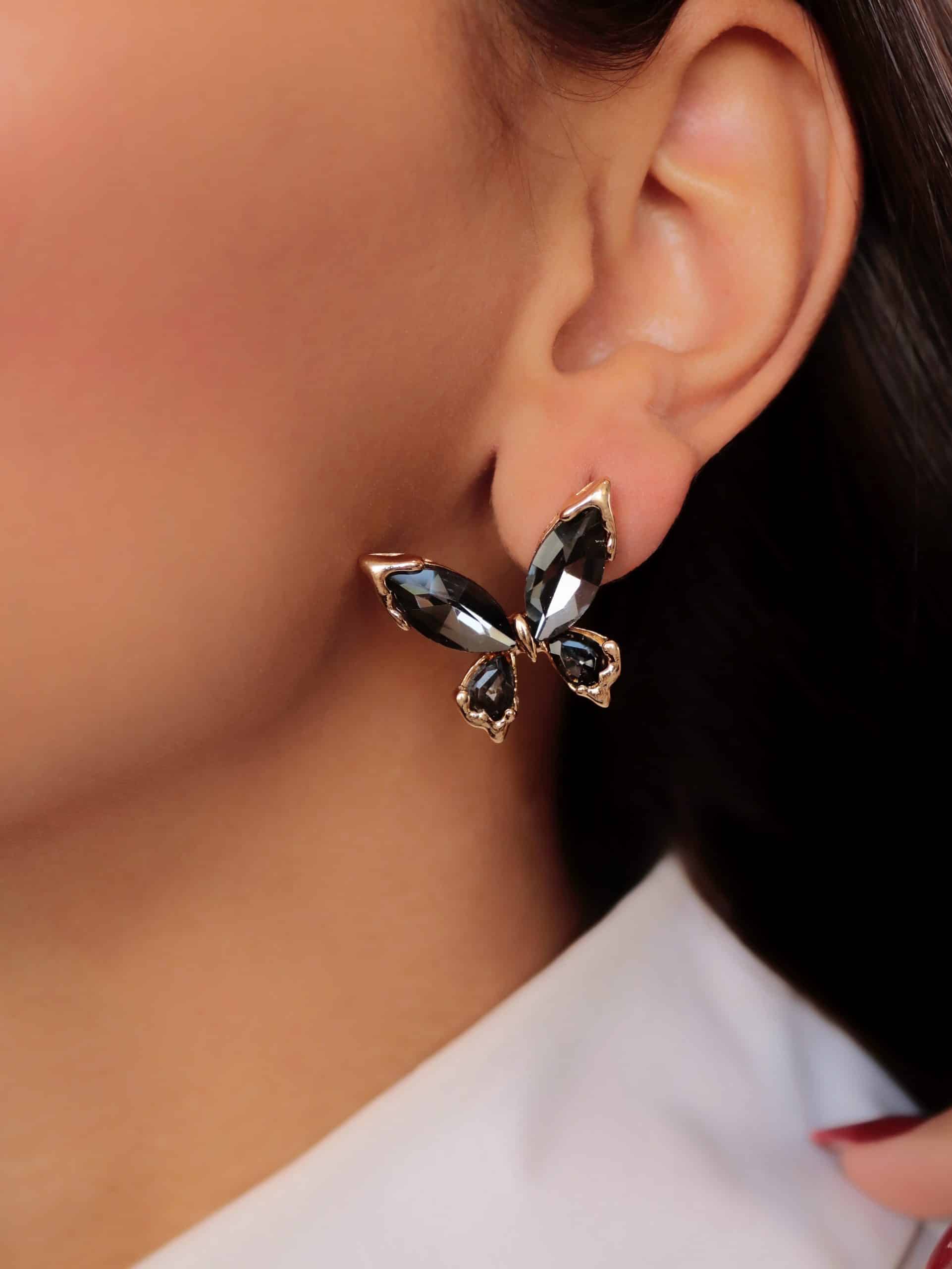 BRINCO ZIRCONIA BORBOLETA RESINA COM O MIOLO ENCAIXE