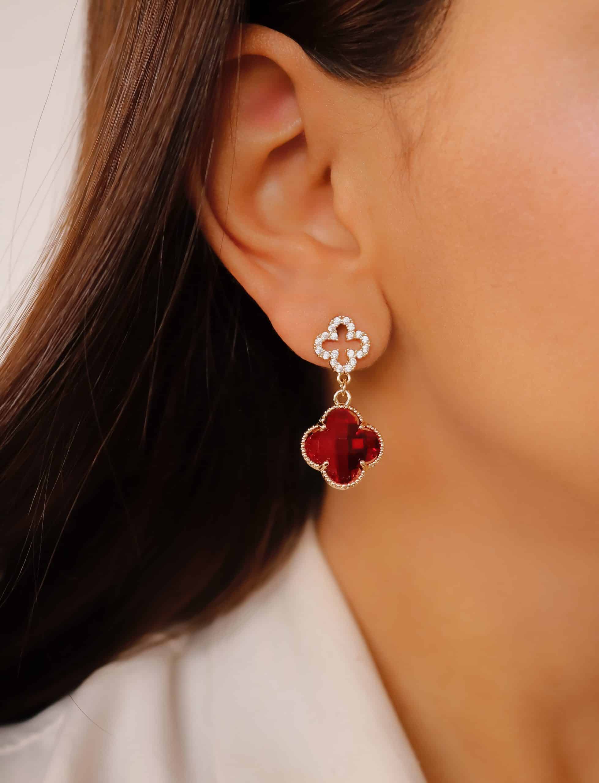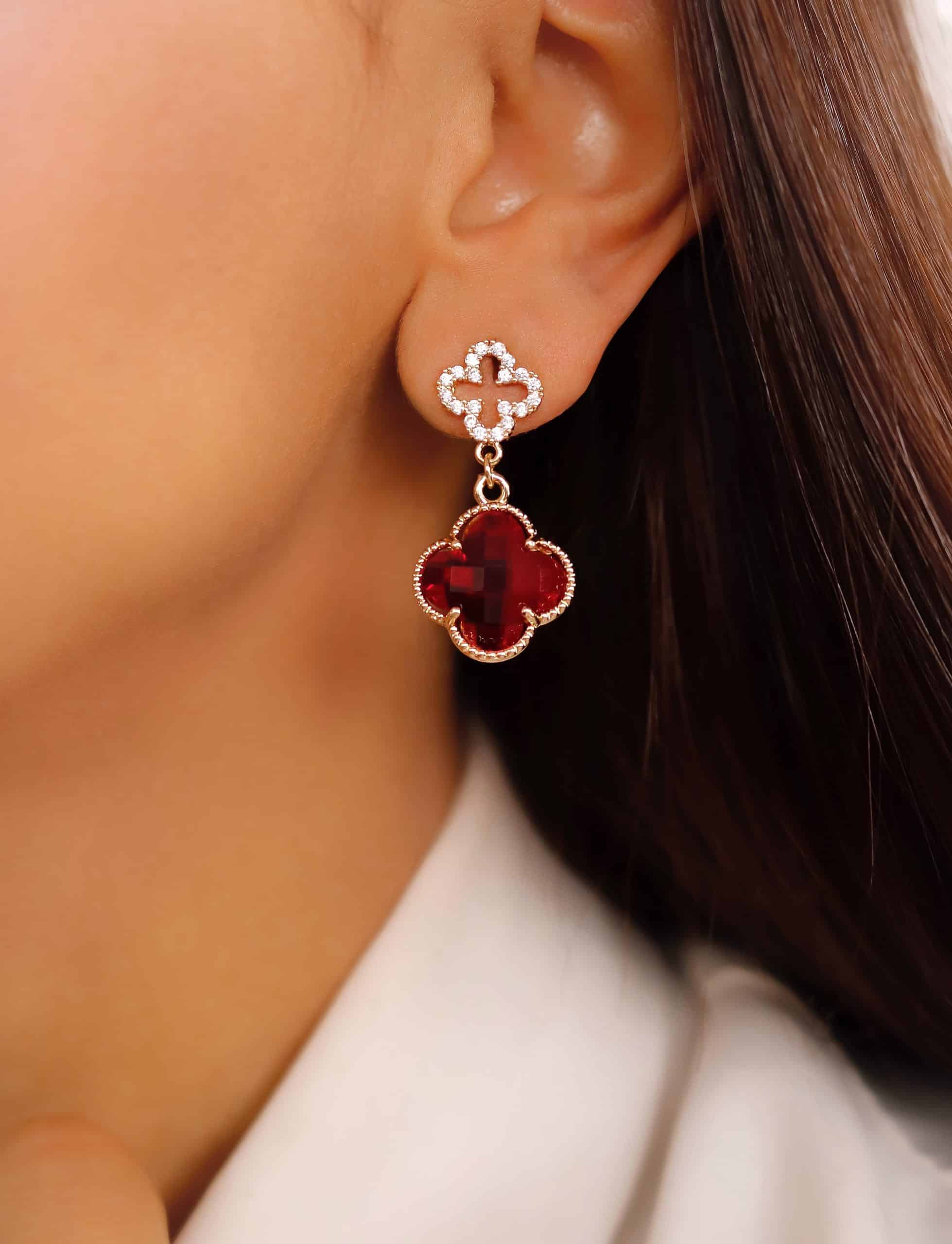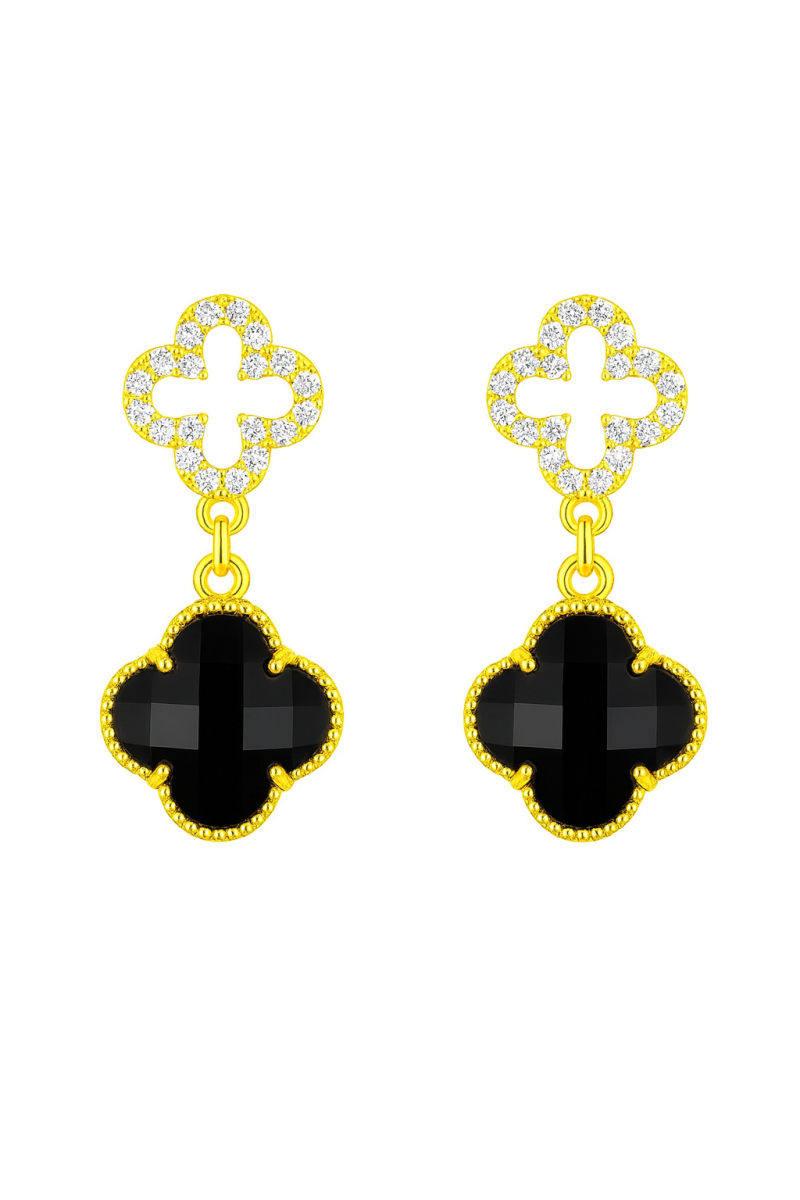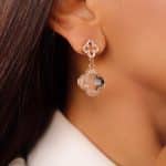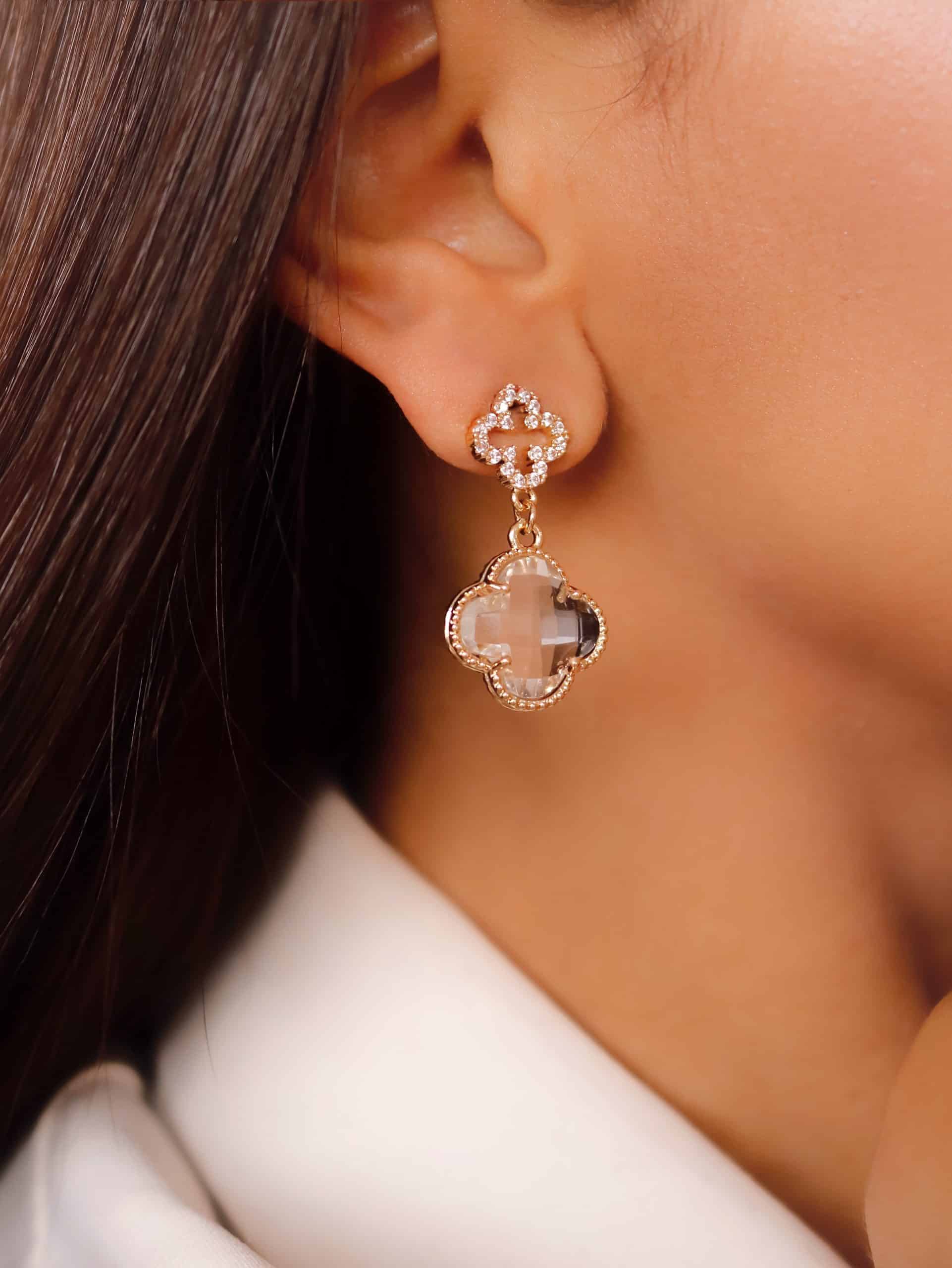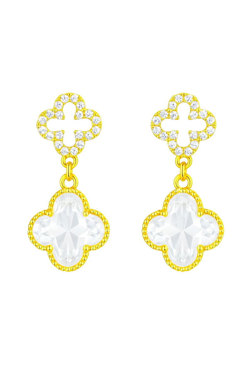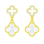 BRINCO PEROLA FLOR COM PETALAS CRAVEJADAS ENTRELACADAS 19.0 MM