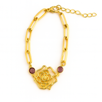 PULSEIRA CRISTAL COM ELOS E UMA FLOR VAZADA NO MEIO