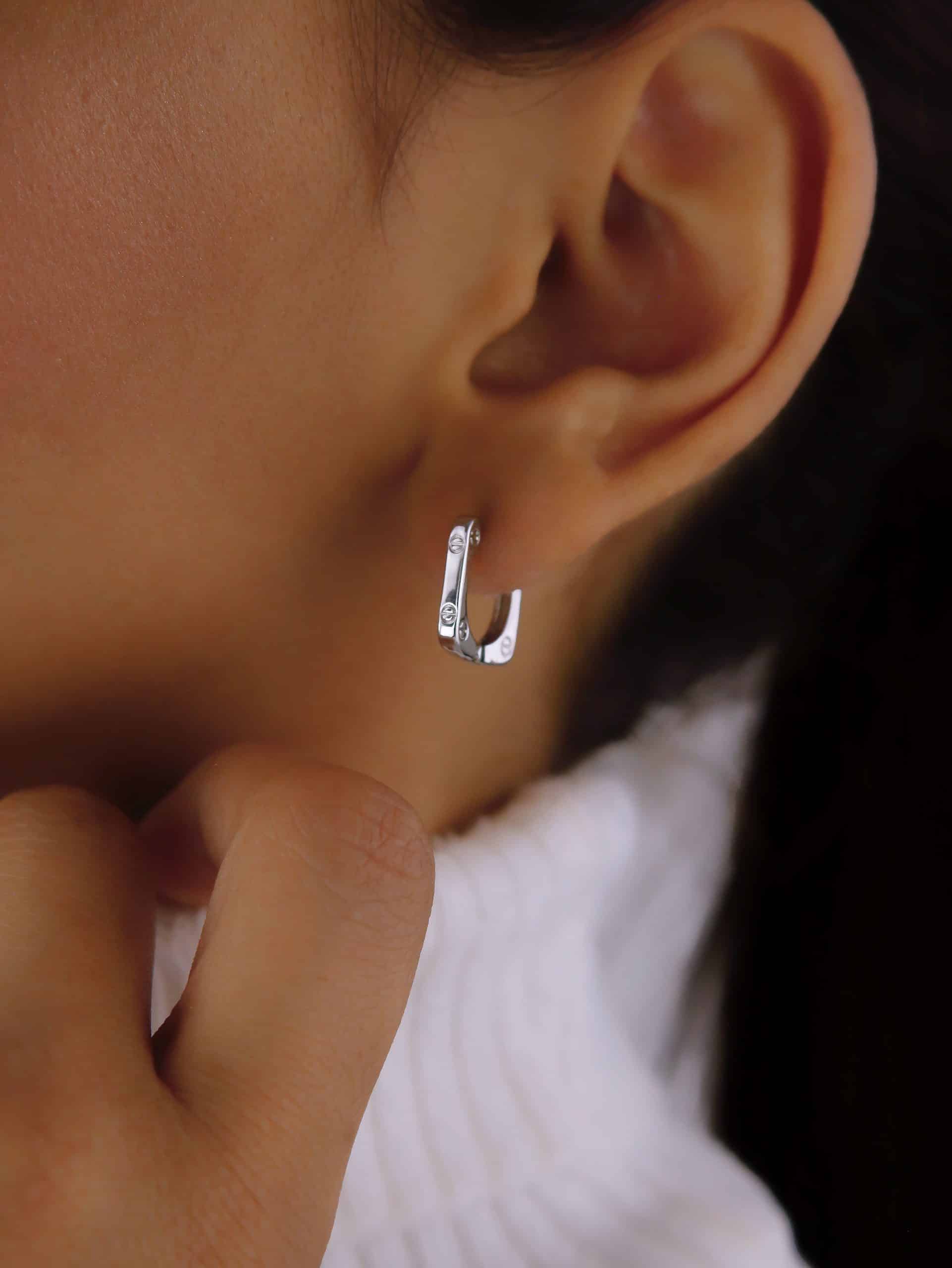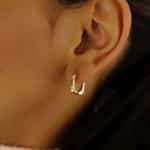 BRINCO ZIRCONIA TRIO COM GOTAS CURVADAS LISAS E UMA CRAVEJADA