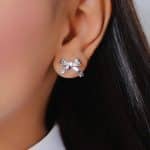 BRINCO ZIRCONIA TRIO FLOR VAZADA E CRAVEJADA MAIOR E PONTO DE LUZ