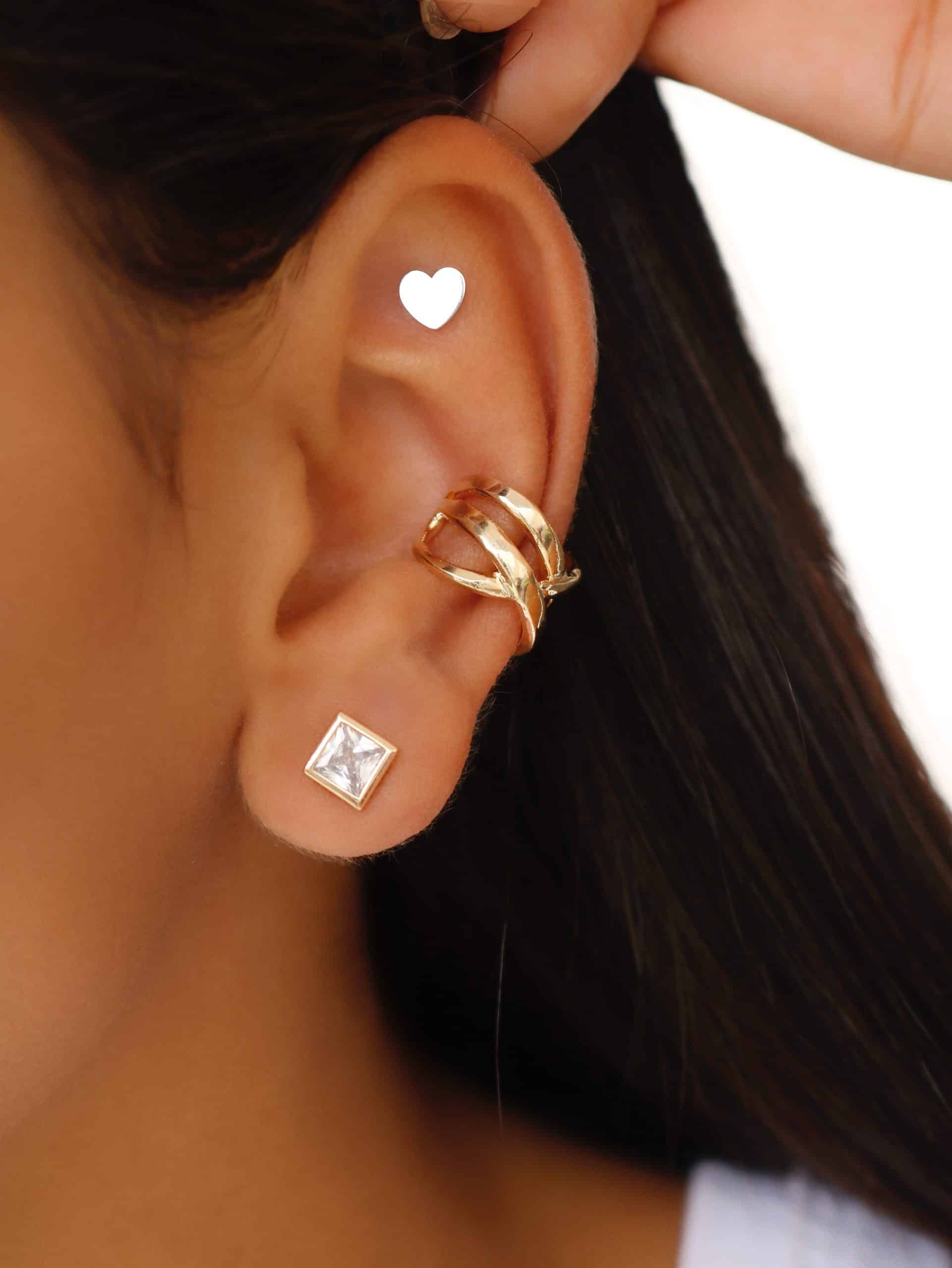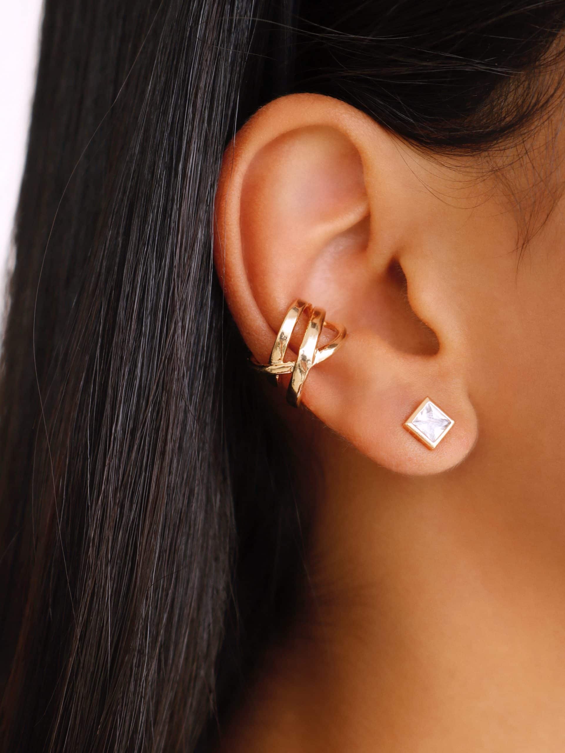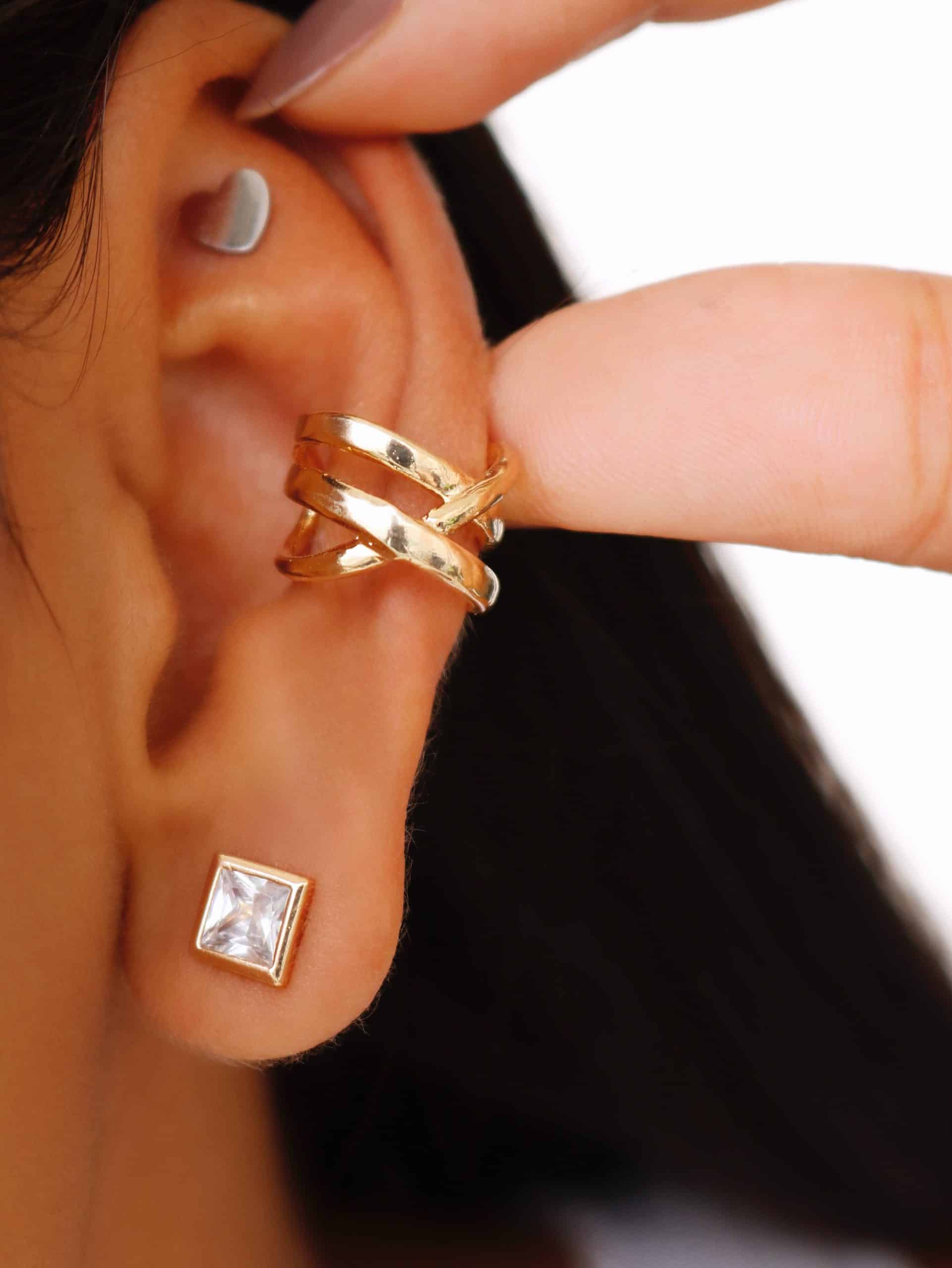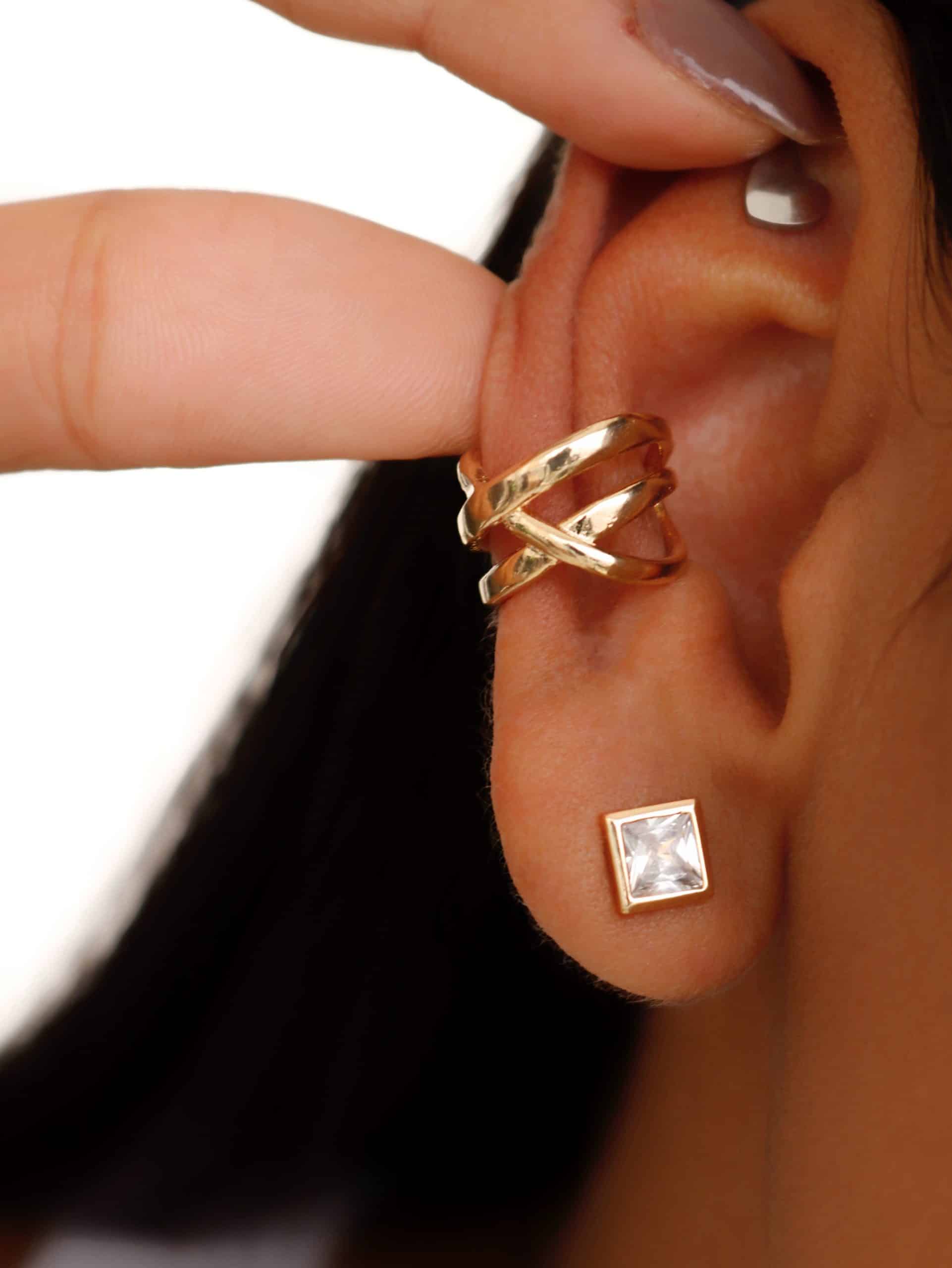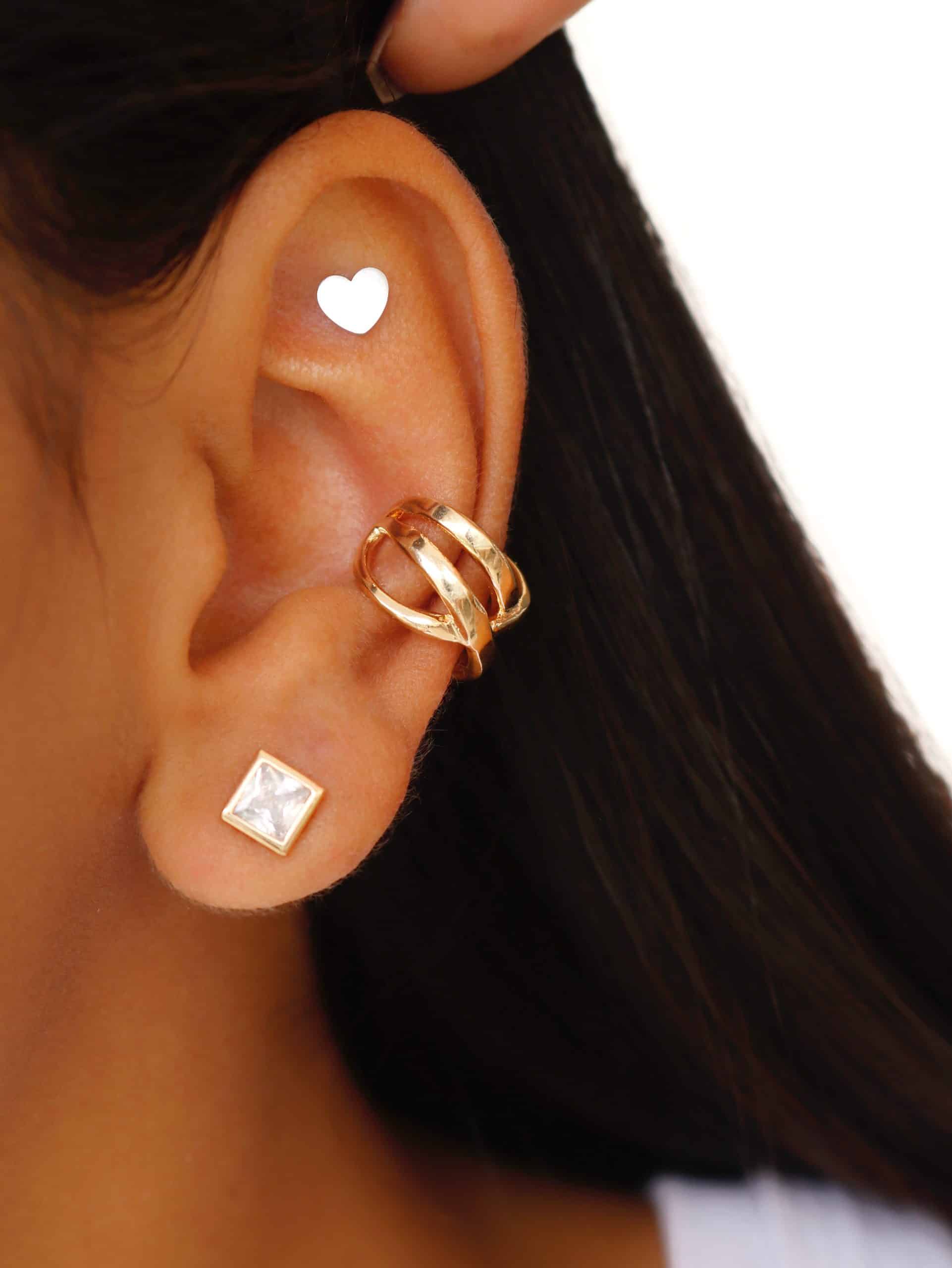 BRINCO LISO PIERCING FAKE ENTRELACADO COM UMA FAIXA MAIS GROSSA