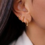BRINCO ZIRCONIA ARGOLA COM TRES FAIXAS LISAS E UMA CRAVEJADA 21.1 MM