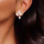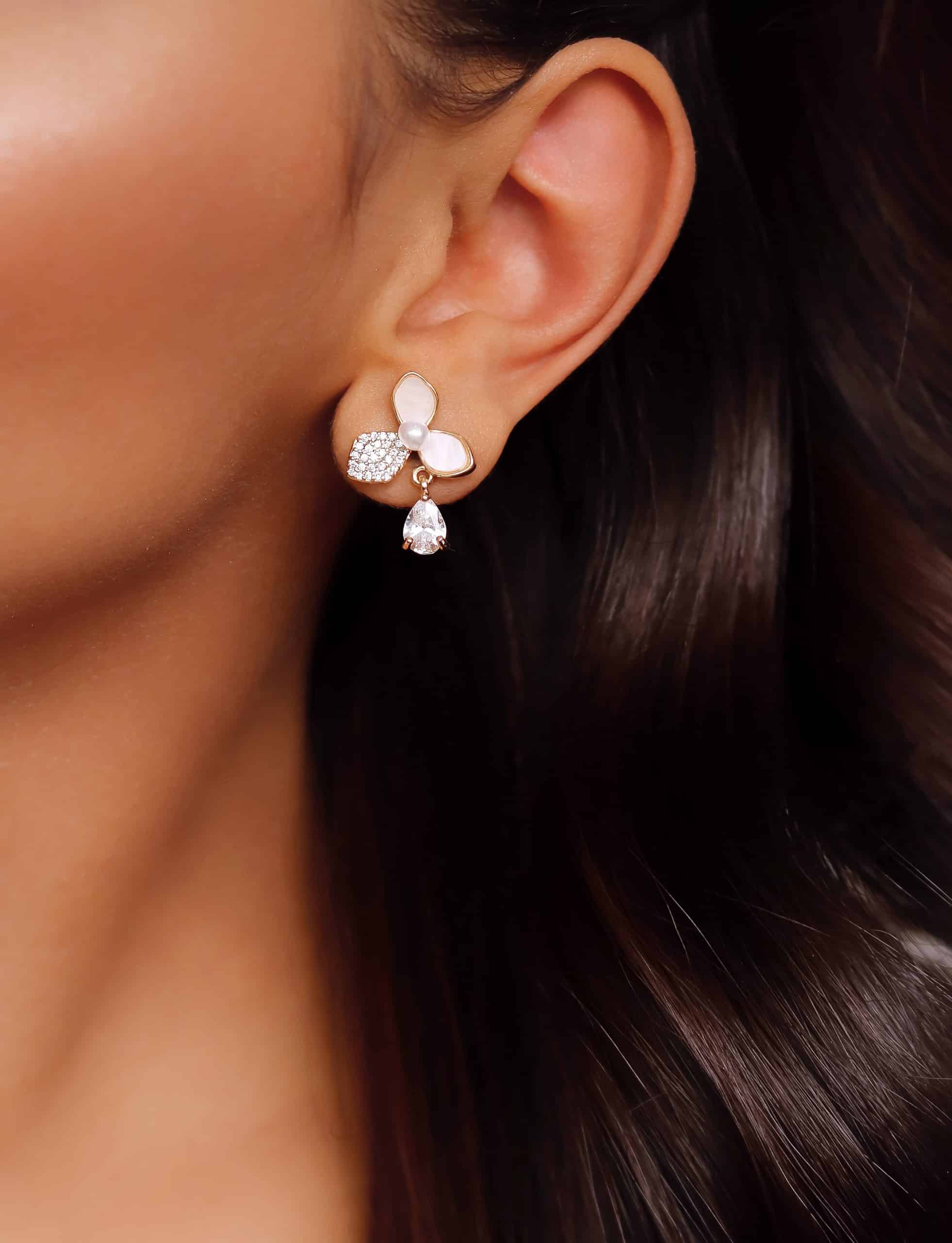 BRINCO ZIRCONIA ARGOLA COM UMA FAIXA CRAVEJADA E FLOR LISA PENDURADA 23.9 MM