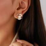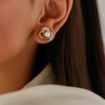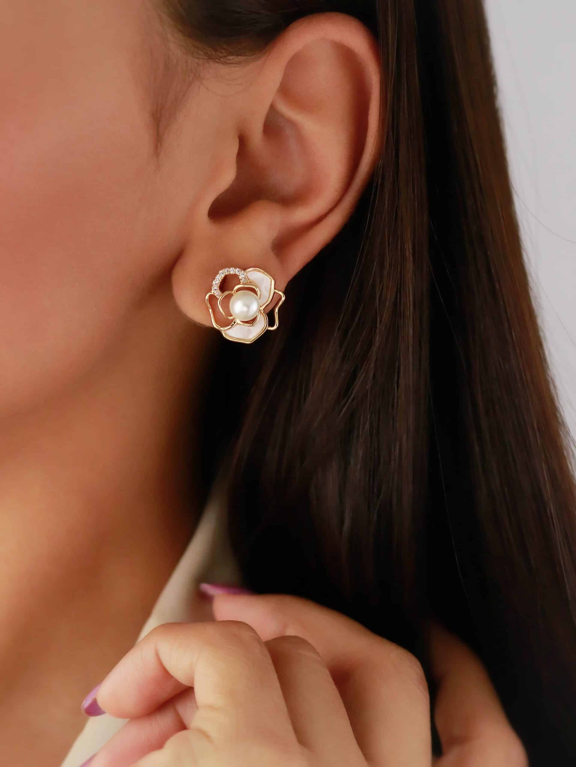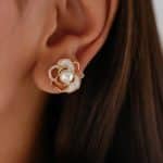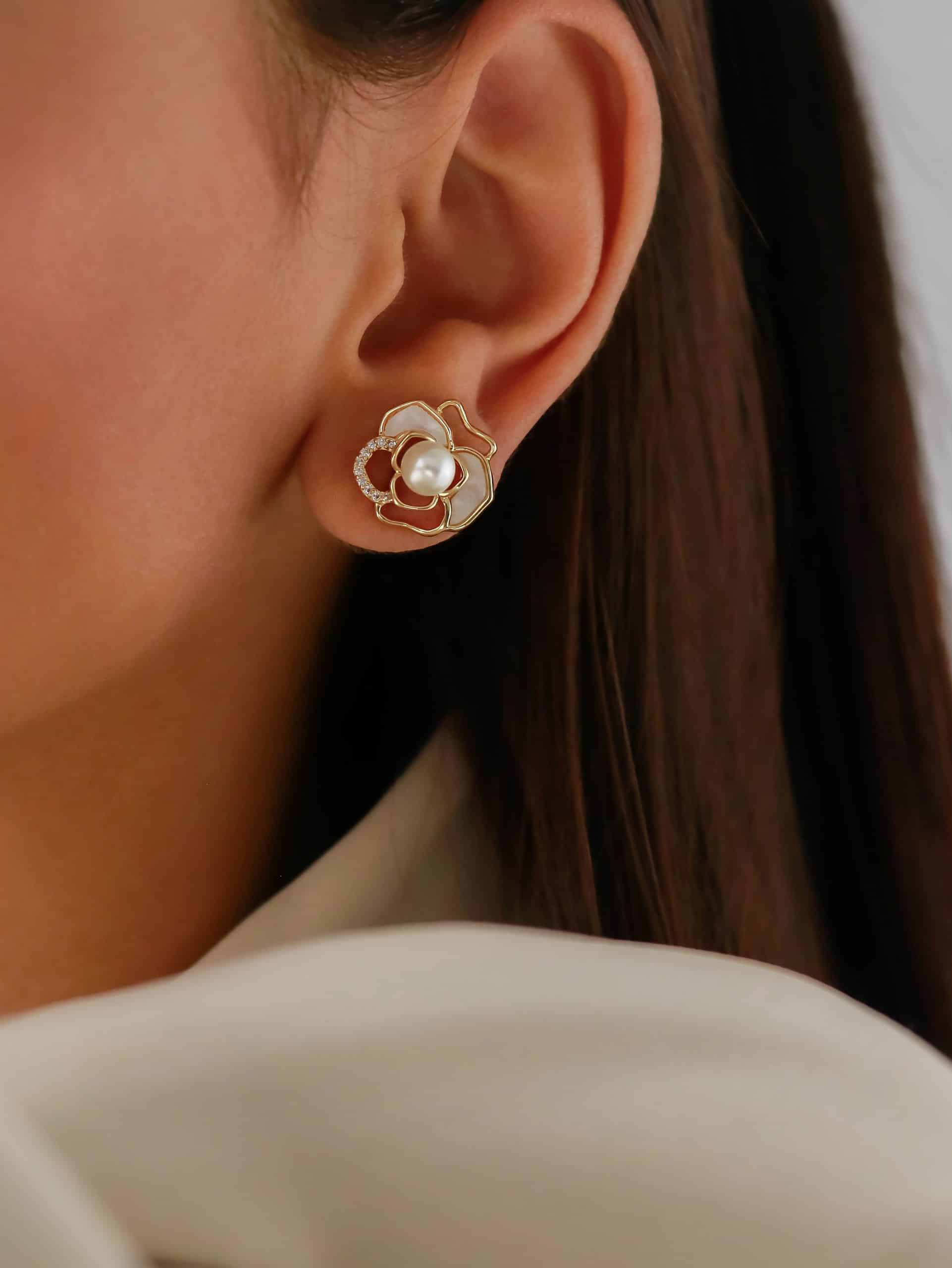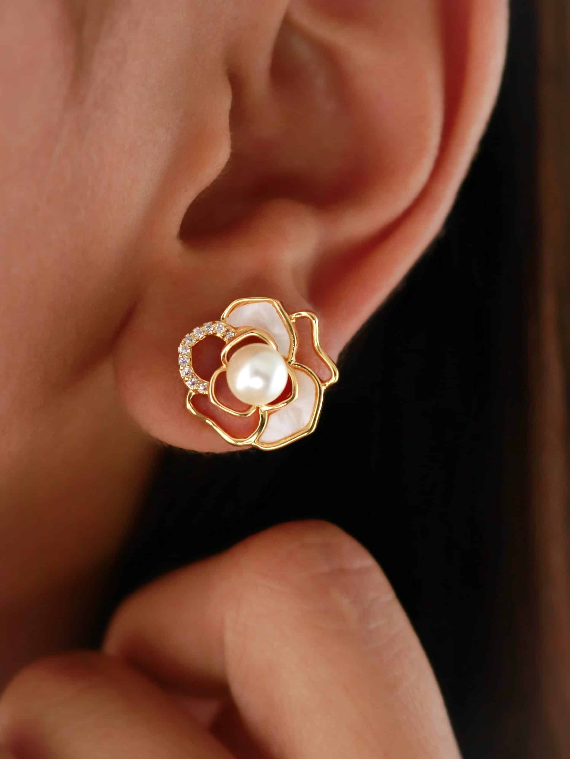 BRINCO MADRE PEROLA FLOR COM CINCO PETALAS E O MIOLO COM ZIRCONIA DE DOIS FORMATOS