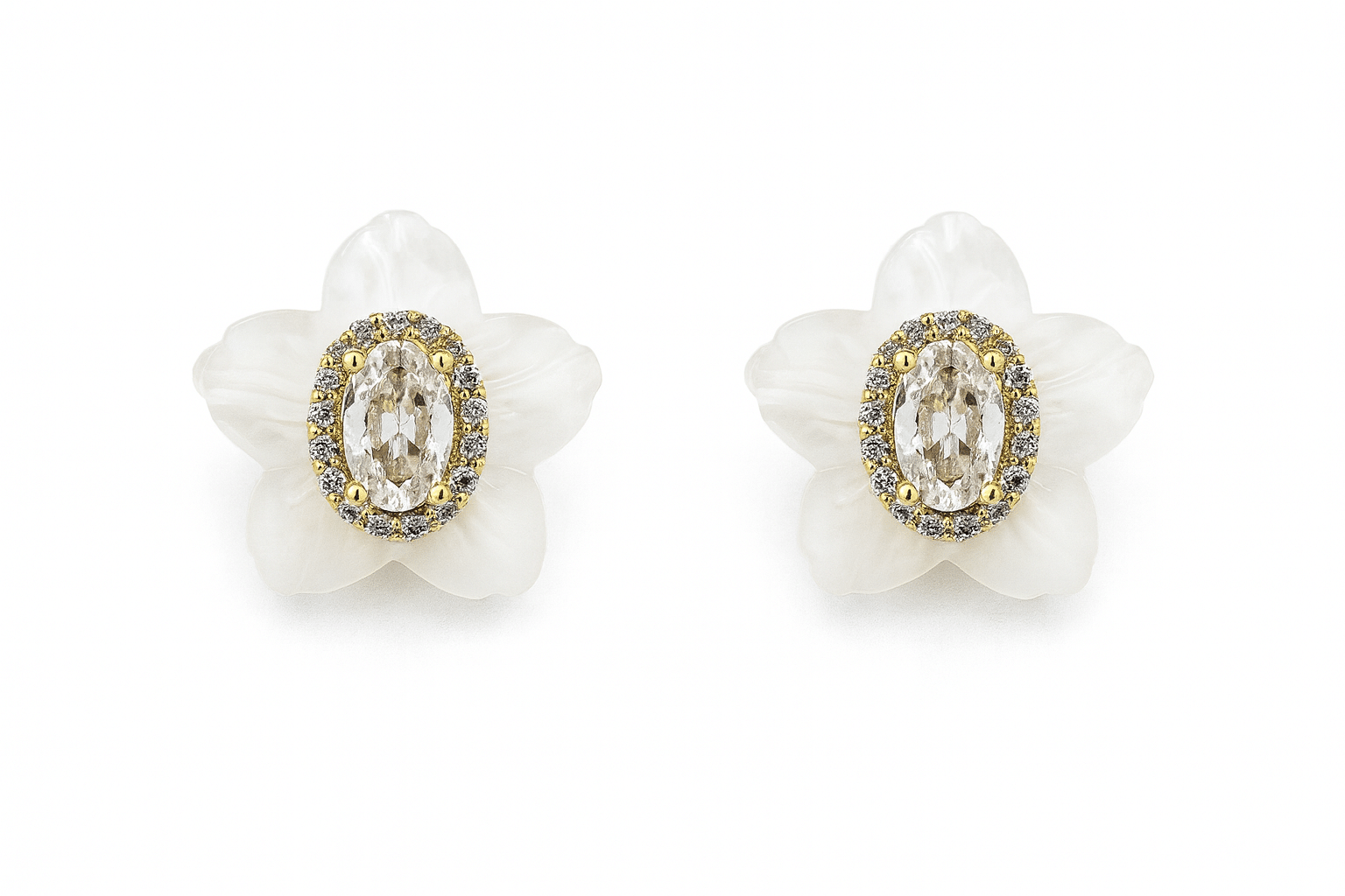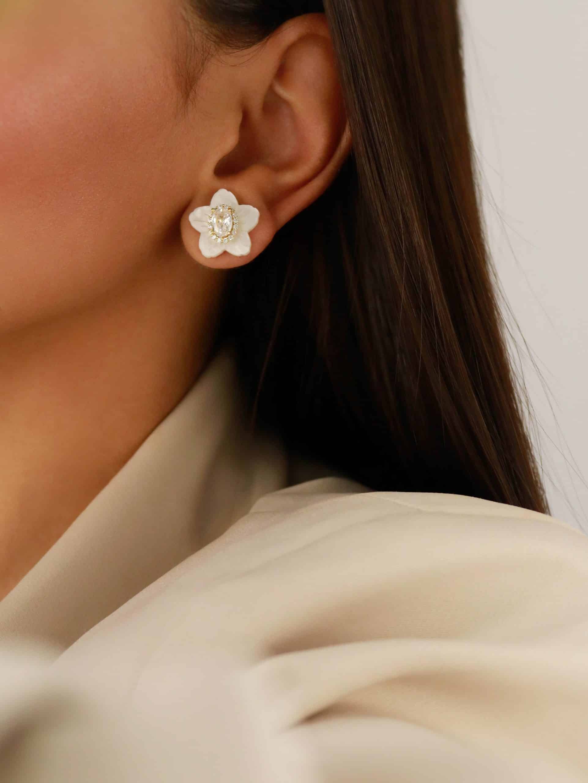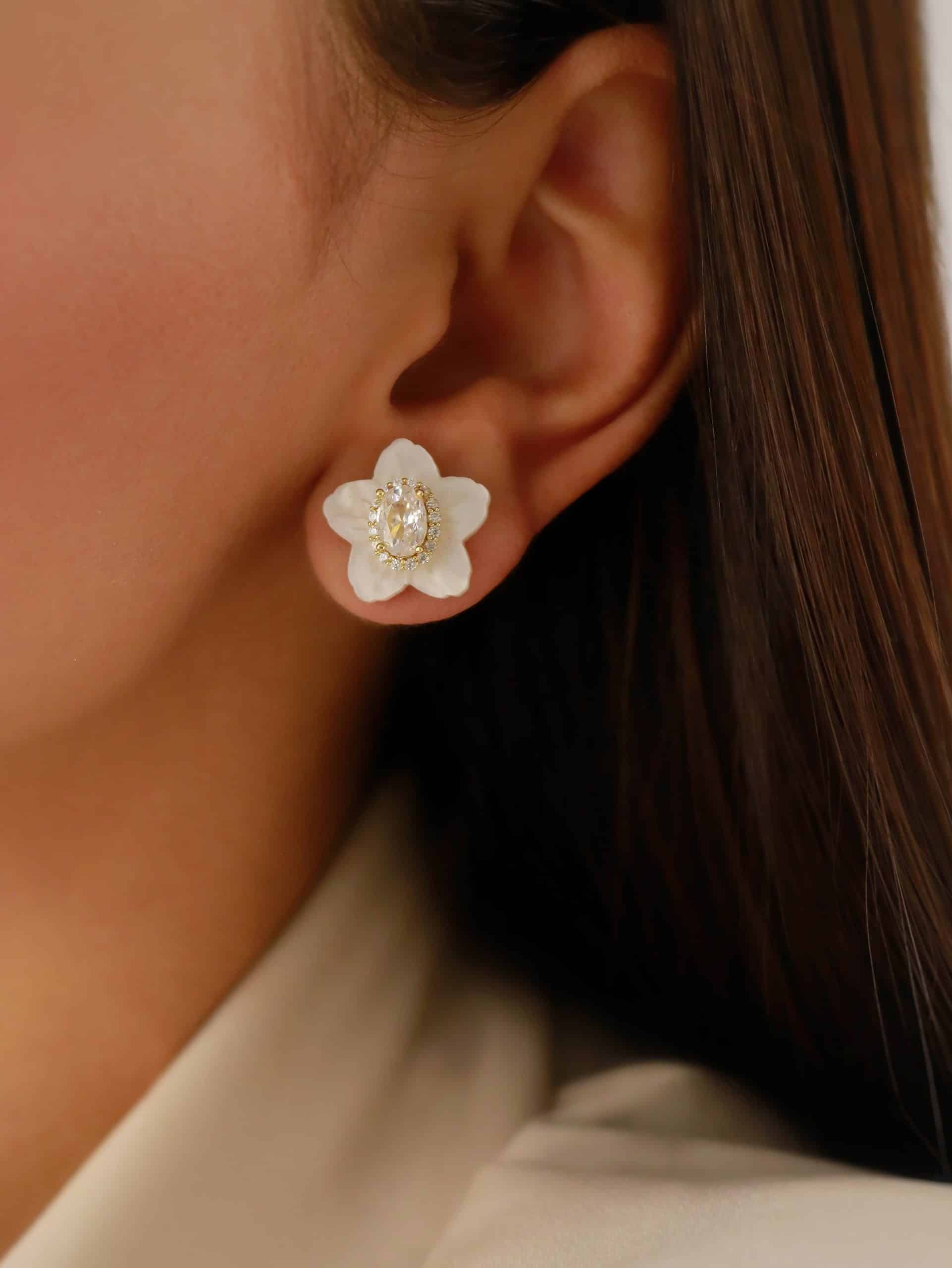 BRINCO MADRE PEROLA FLOR COM O MIOLO OVAL ZIRCONIA PEQUENA