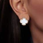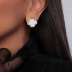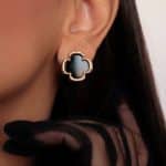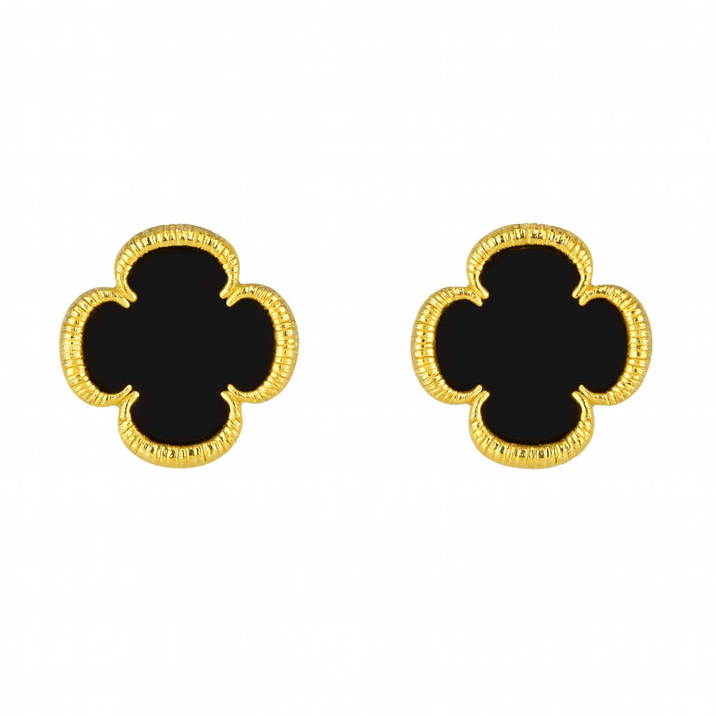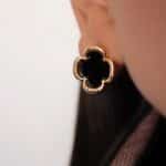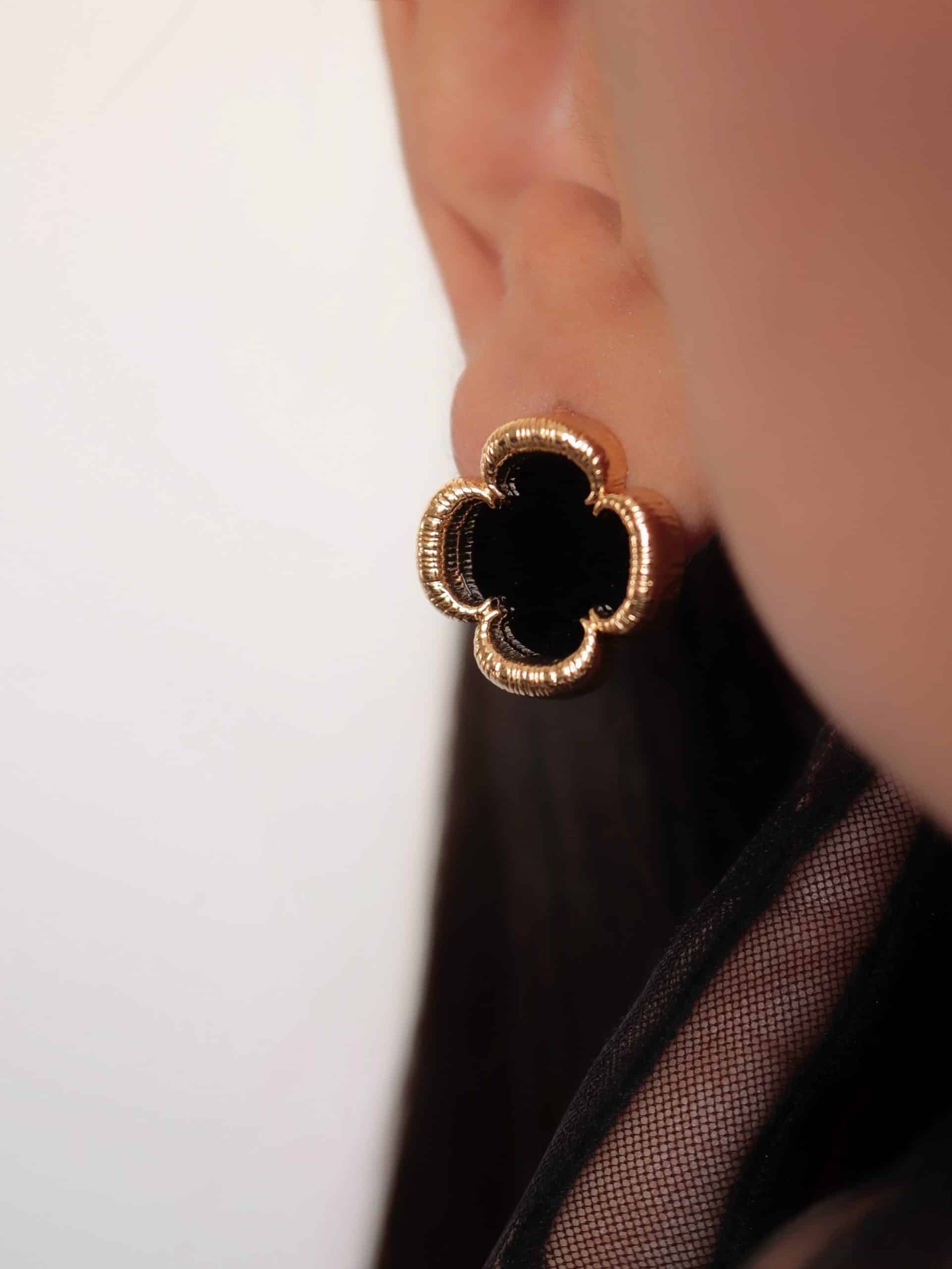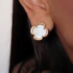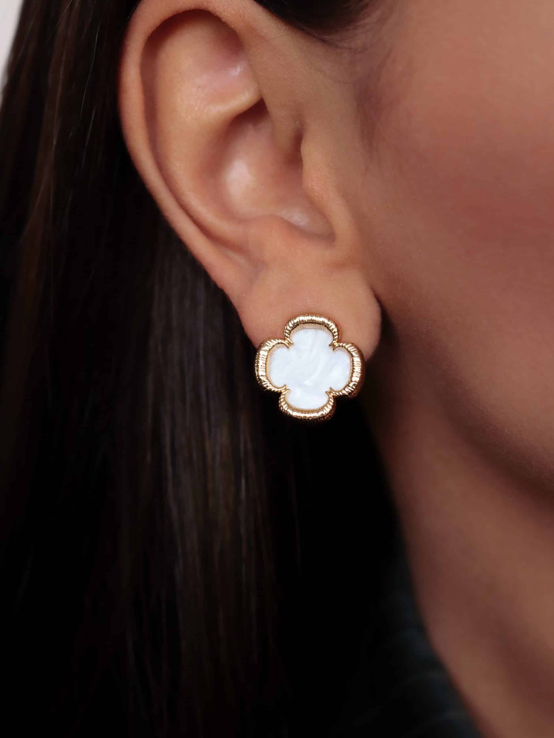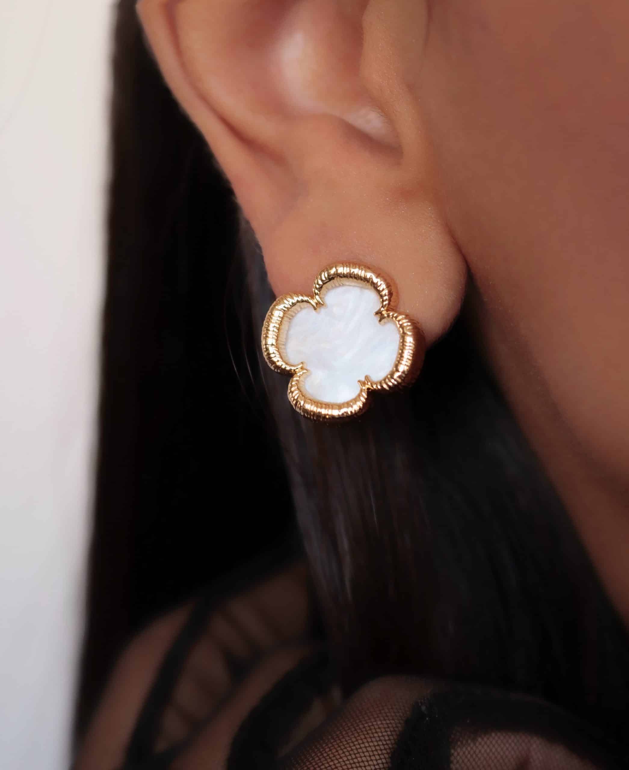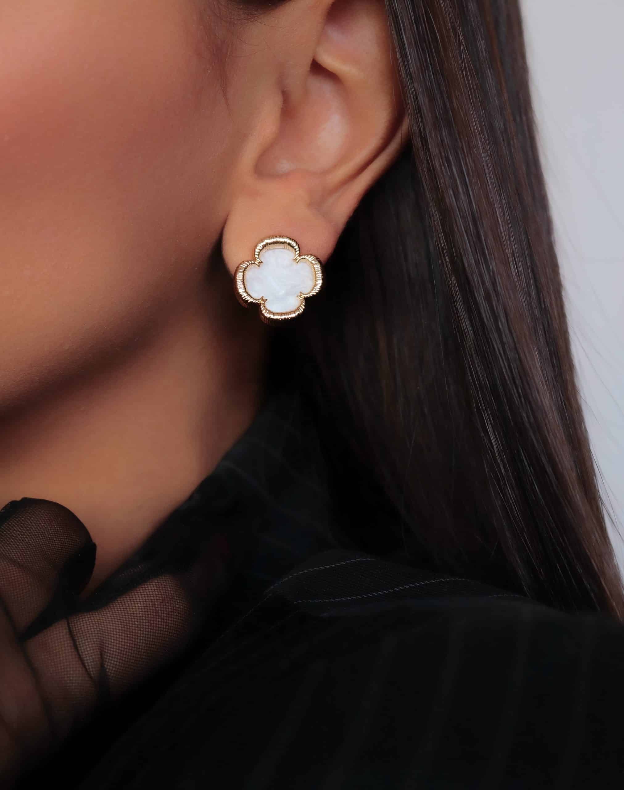 BRINCO ZIRCONIA FLOR COM TRES PETALAS RESINA E O MIOLO CRAVEJADO 17.3MM