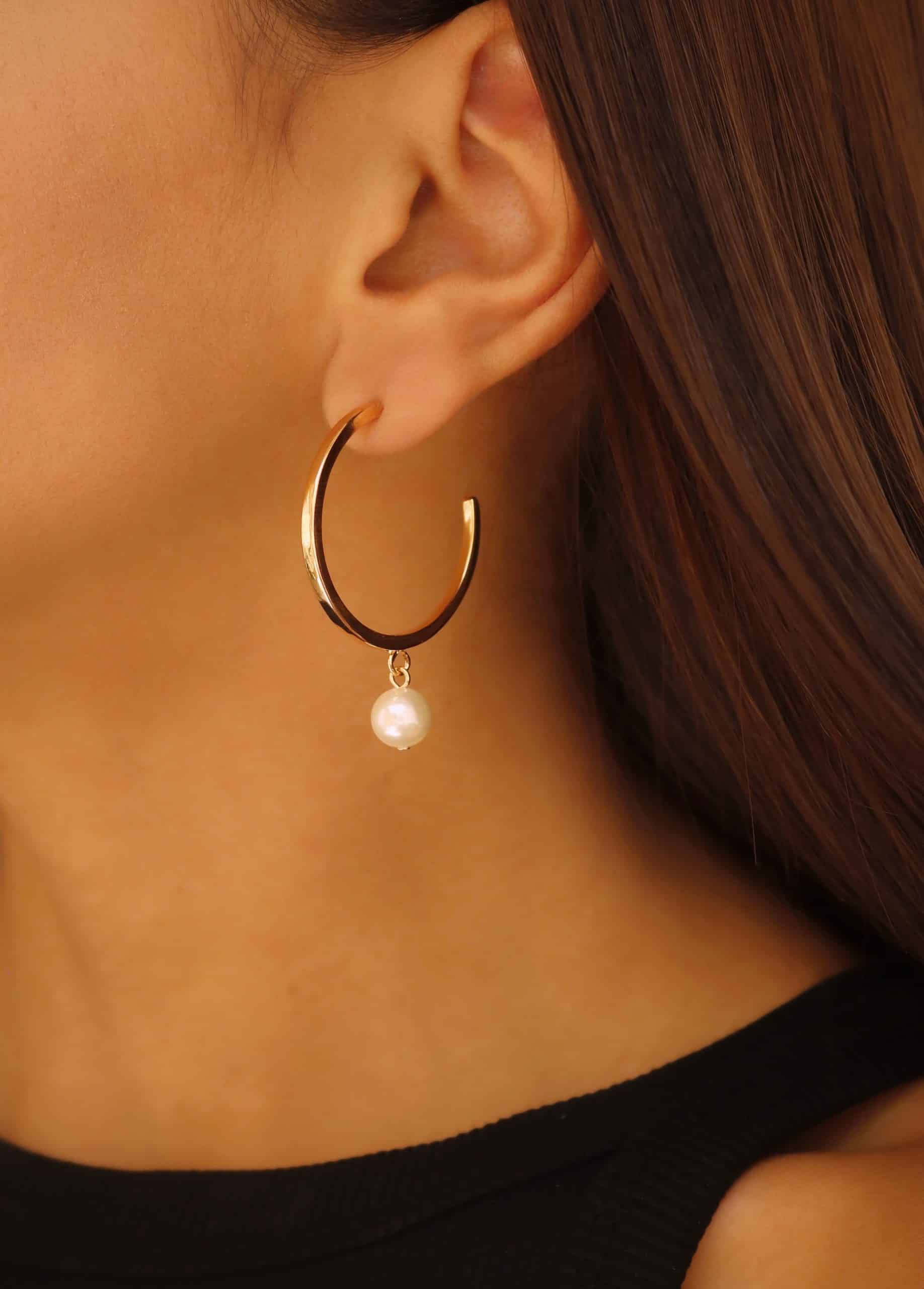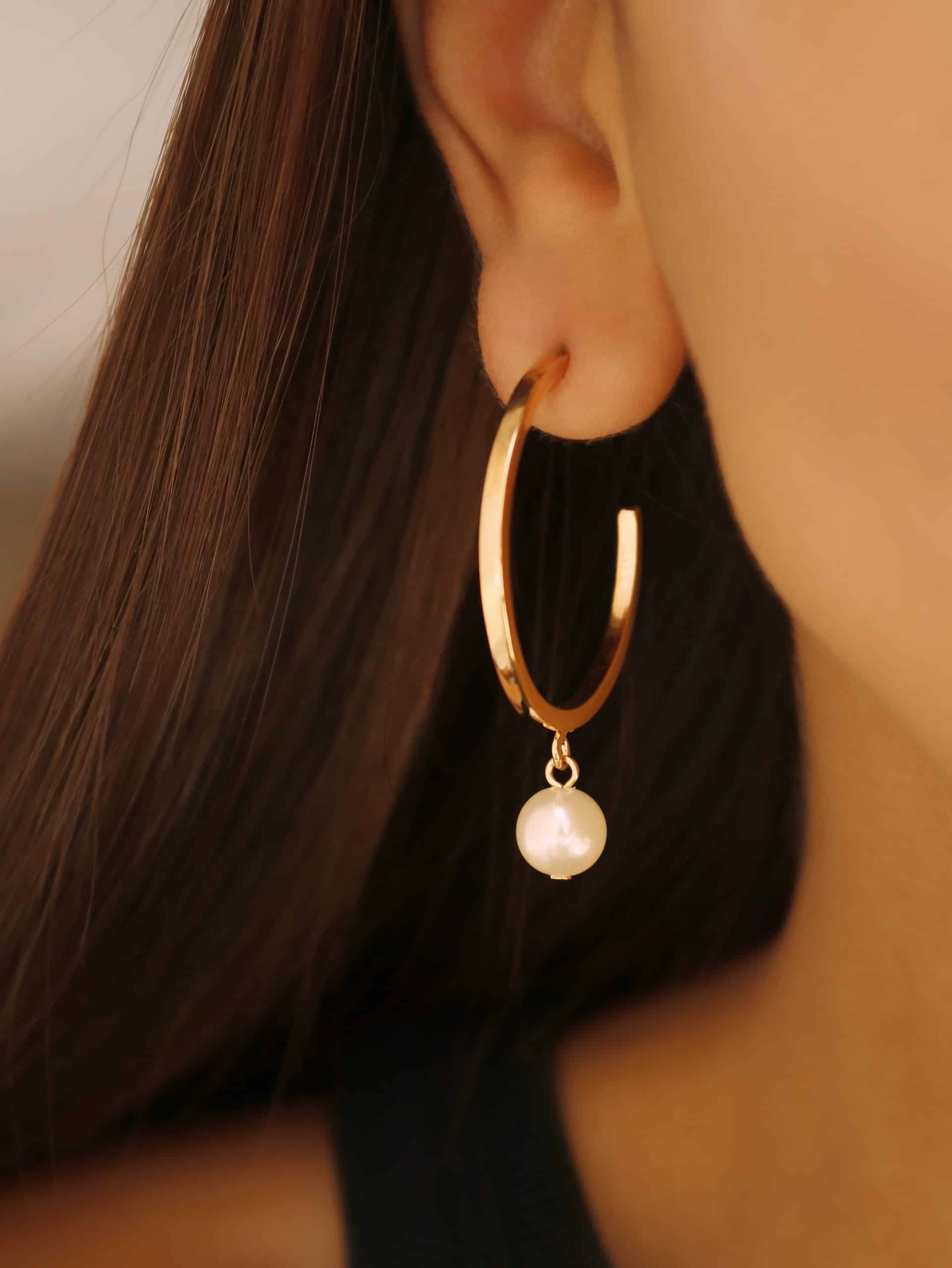 BRINCO PEROLA ARGOLA COM PEROLA PENDURADA