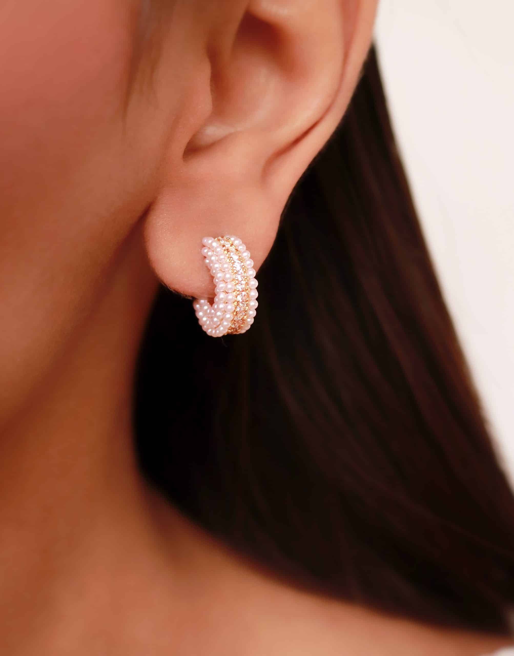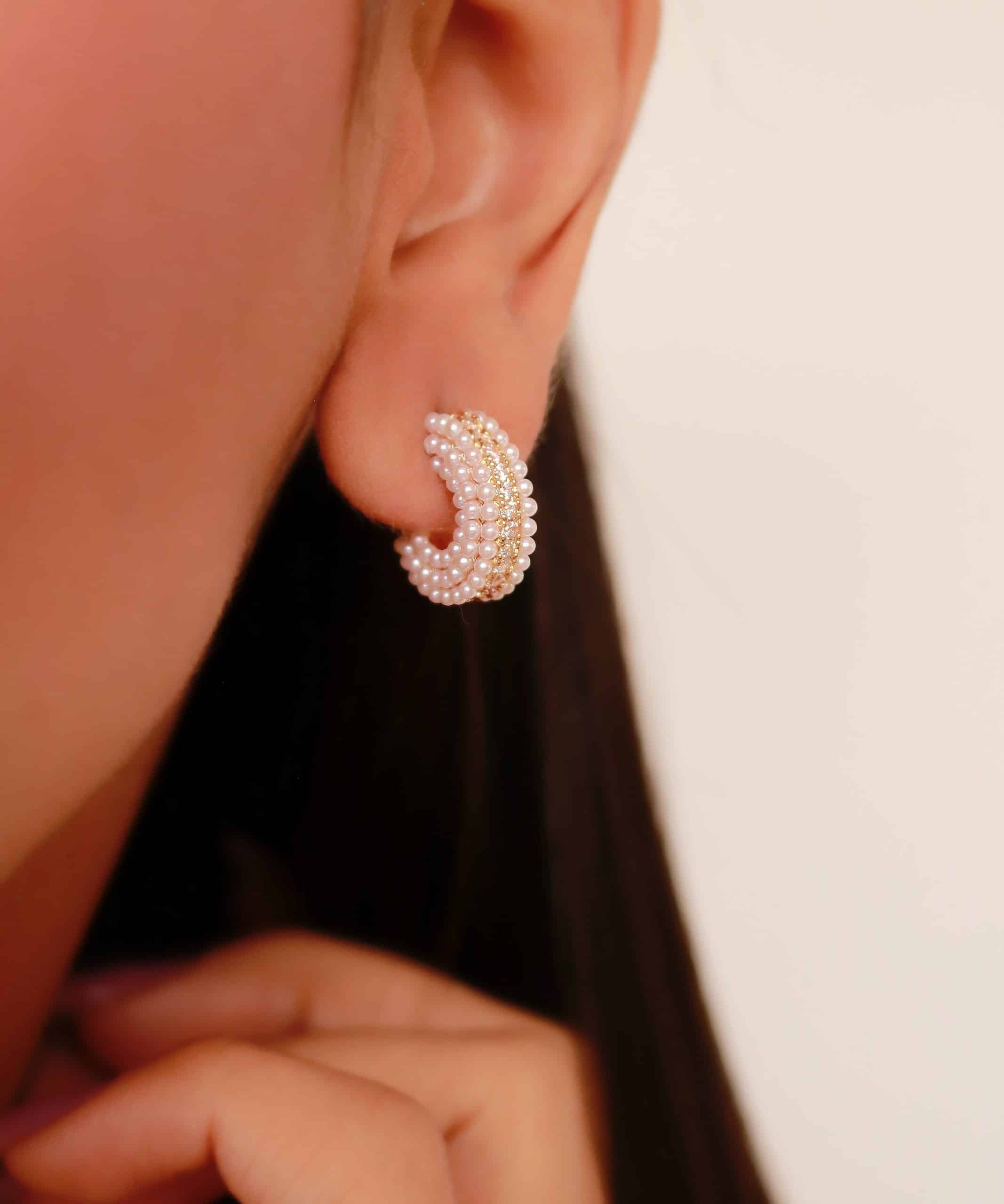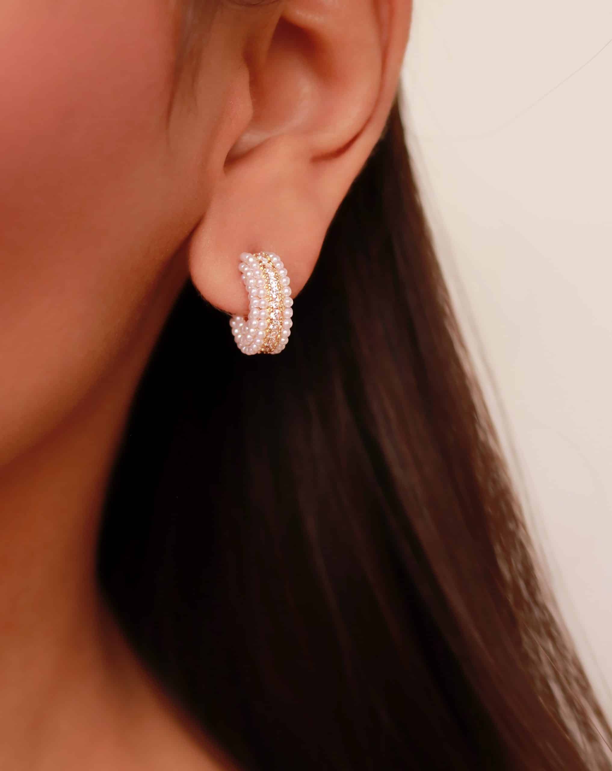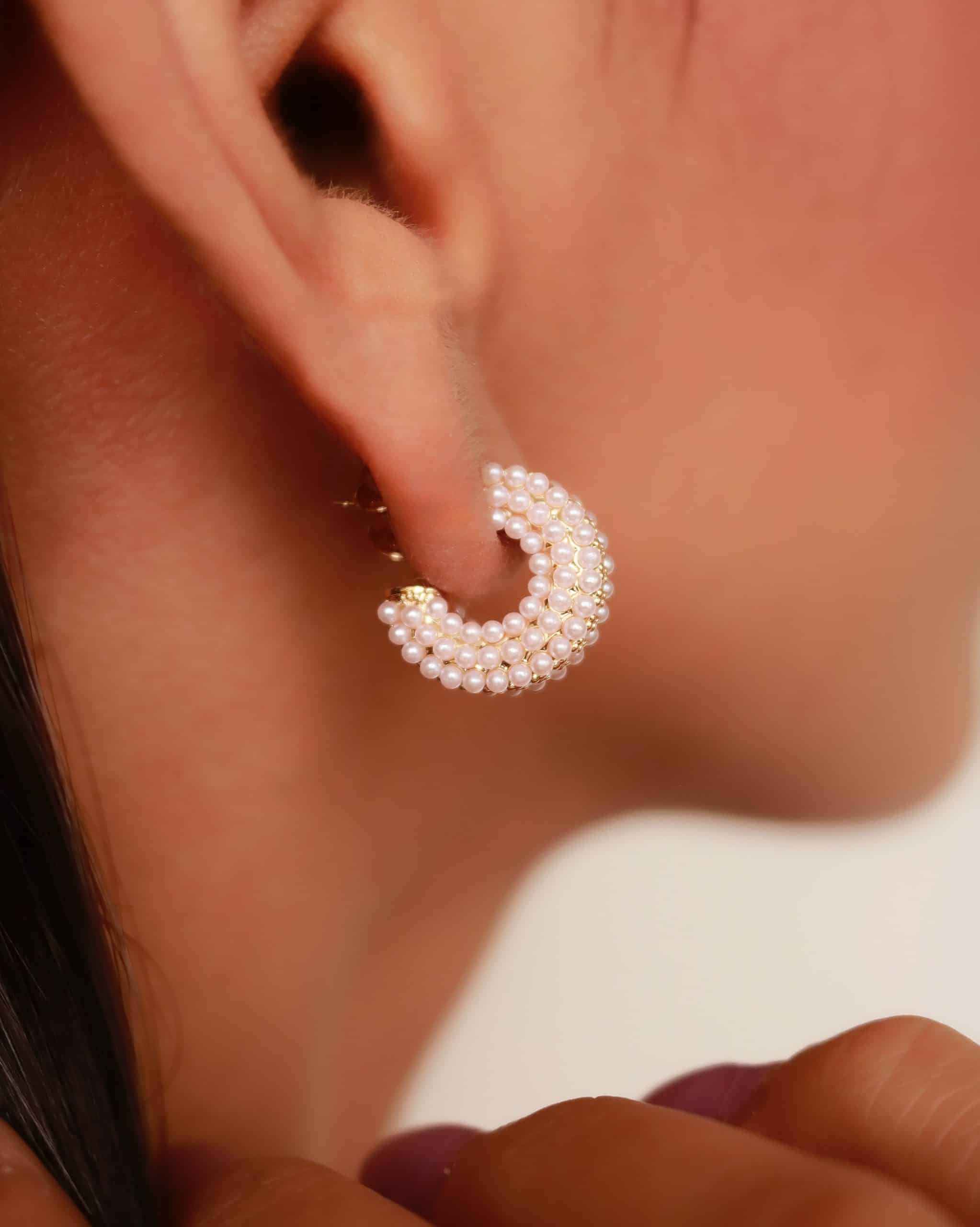 BRINCO PEROLA ARGOLA COM VARIAS PEROLAS PEQUENAS 15.1 MM