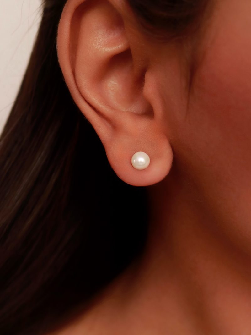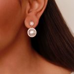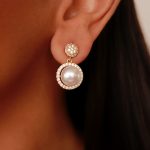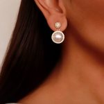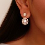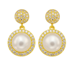 BRINCO PEROLA COM A BASE CRAVEJADA E PEROLA ACHATADA CRAVEJADA EM VOLTA PENDURADA
