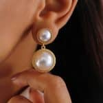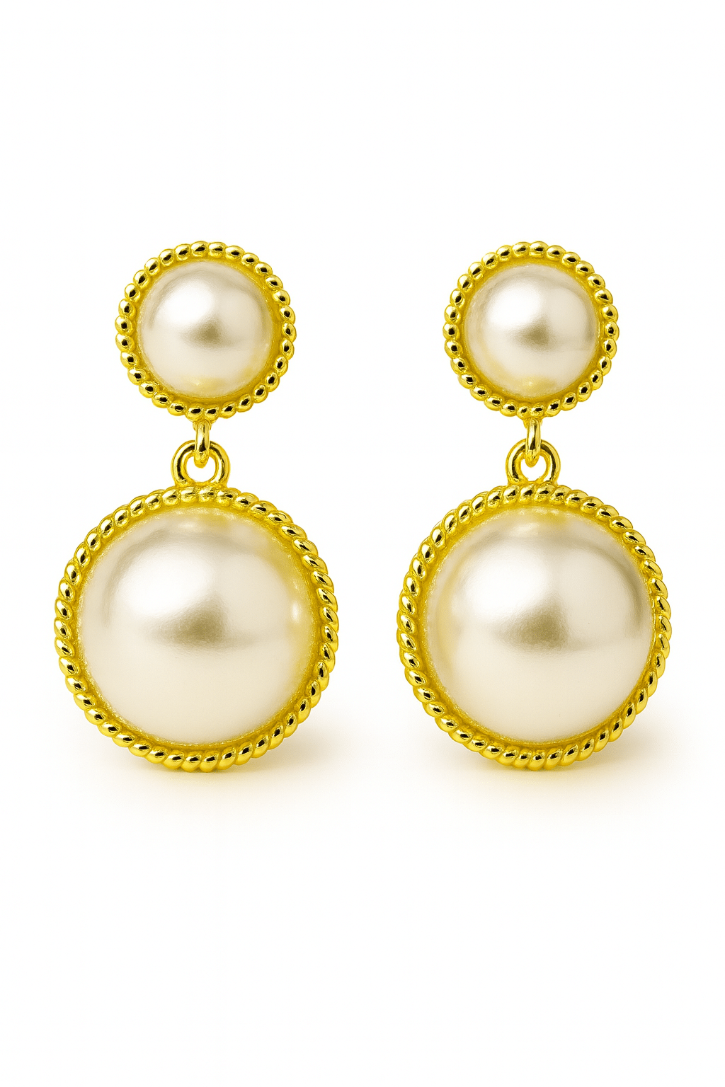 BRINCO PEROLA COM DUAS PEROLAS SENDO UMA MAIOR PENDURADA TAMANHOS DIFERENTES