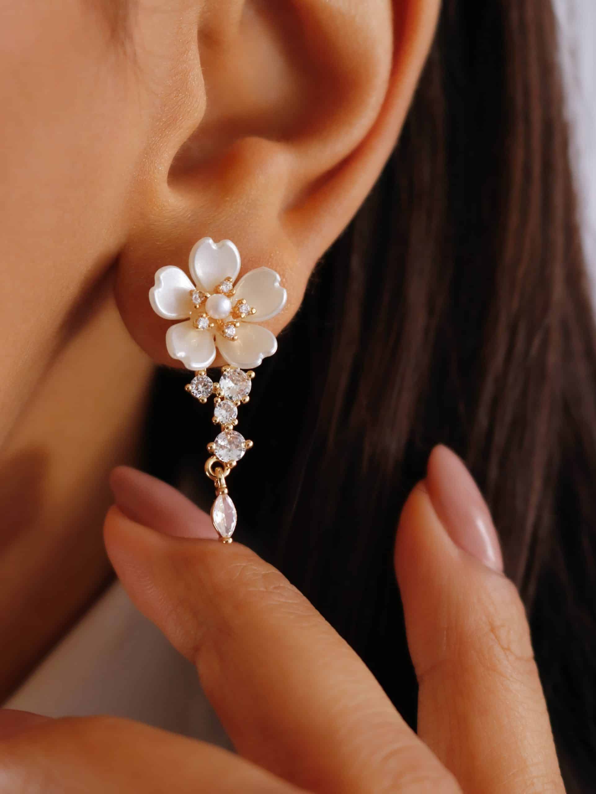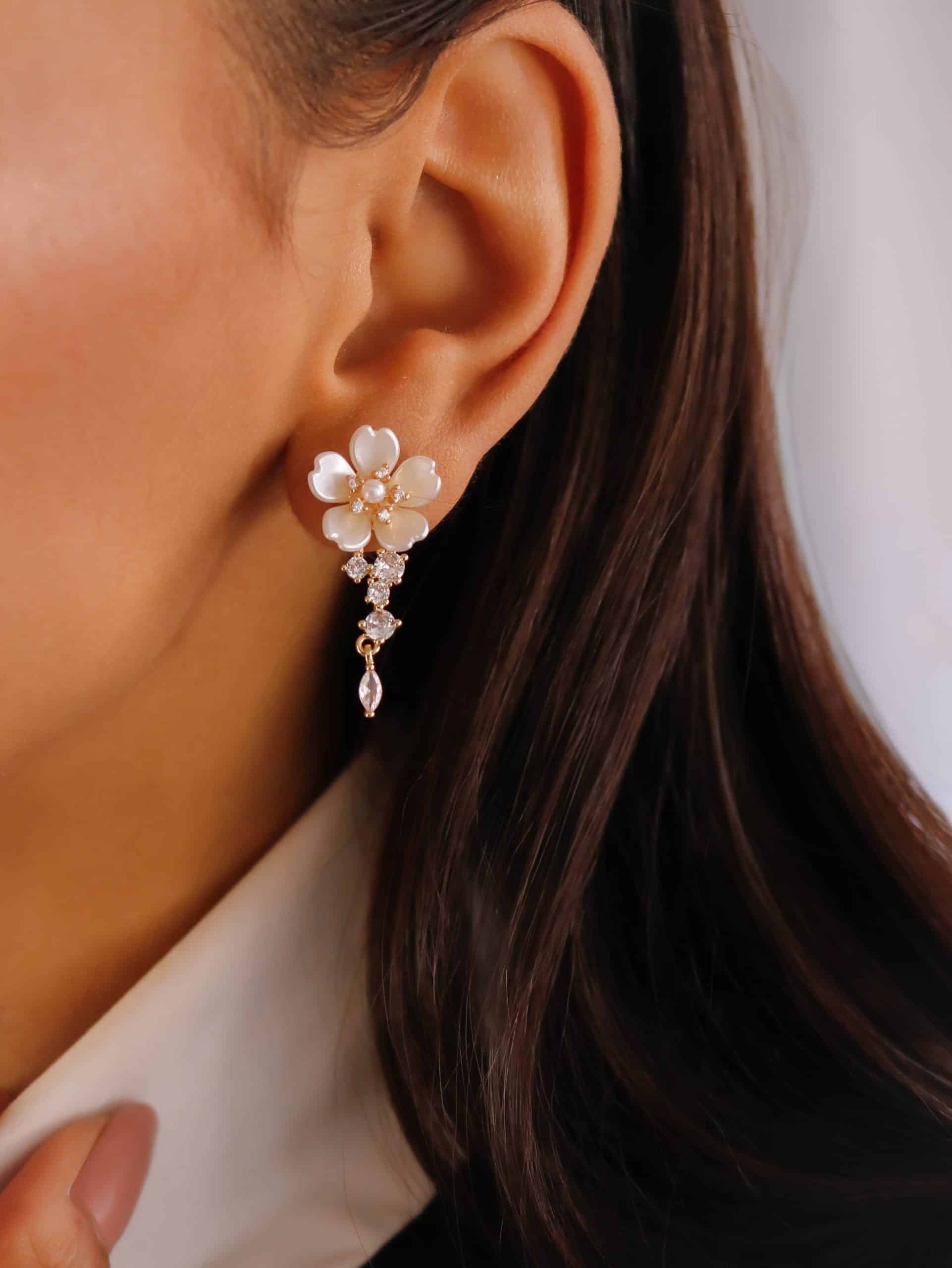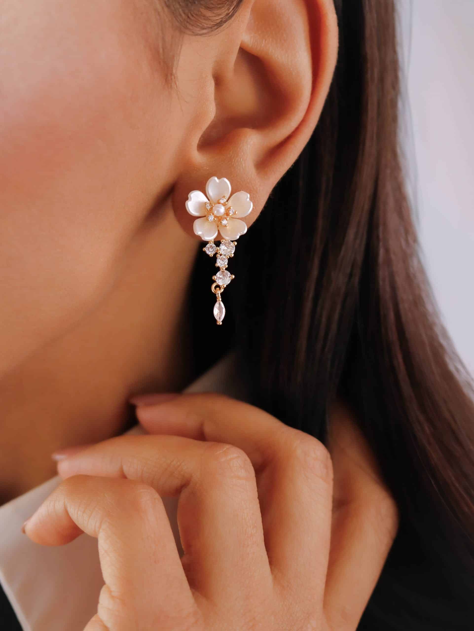 BRINCO PEROLA FLOR COM ZIRCONIAS